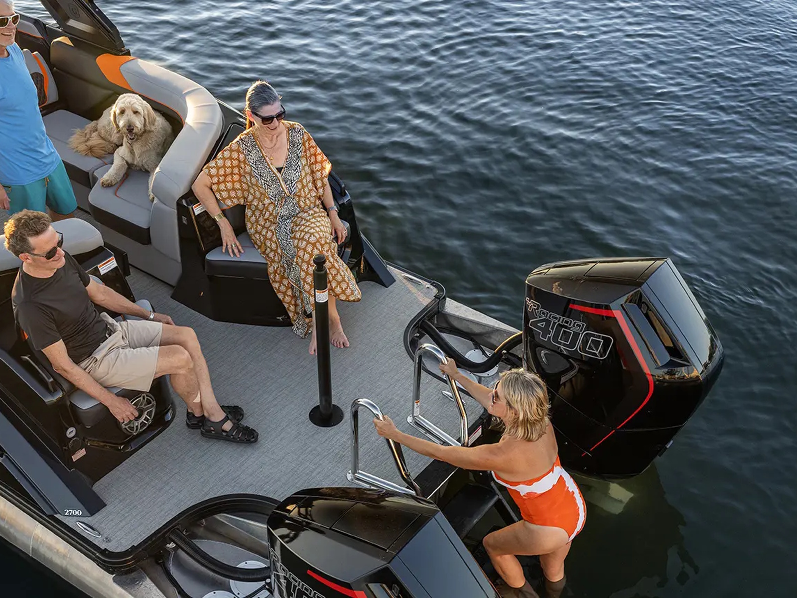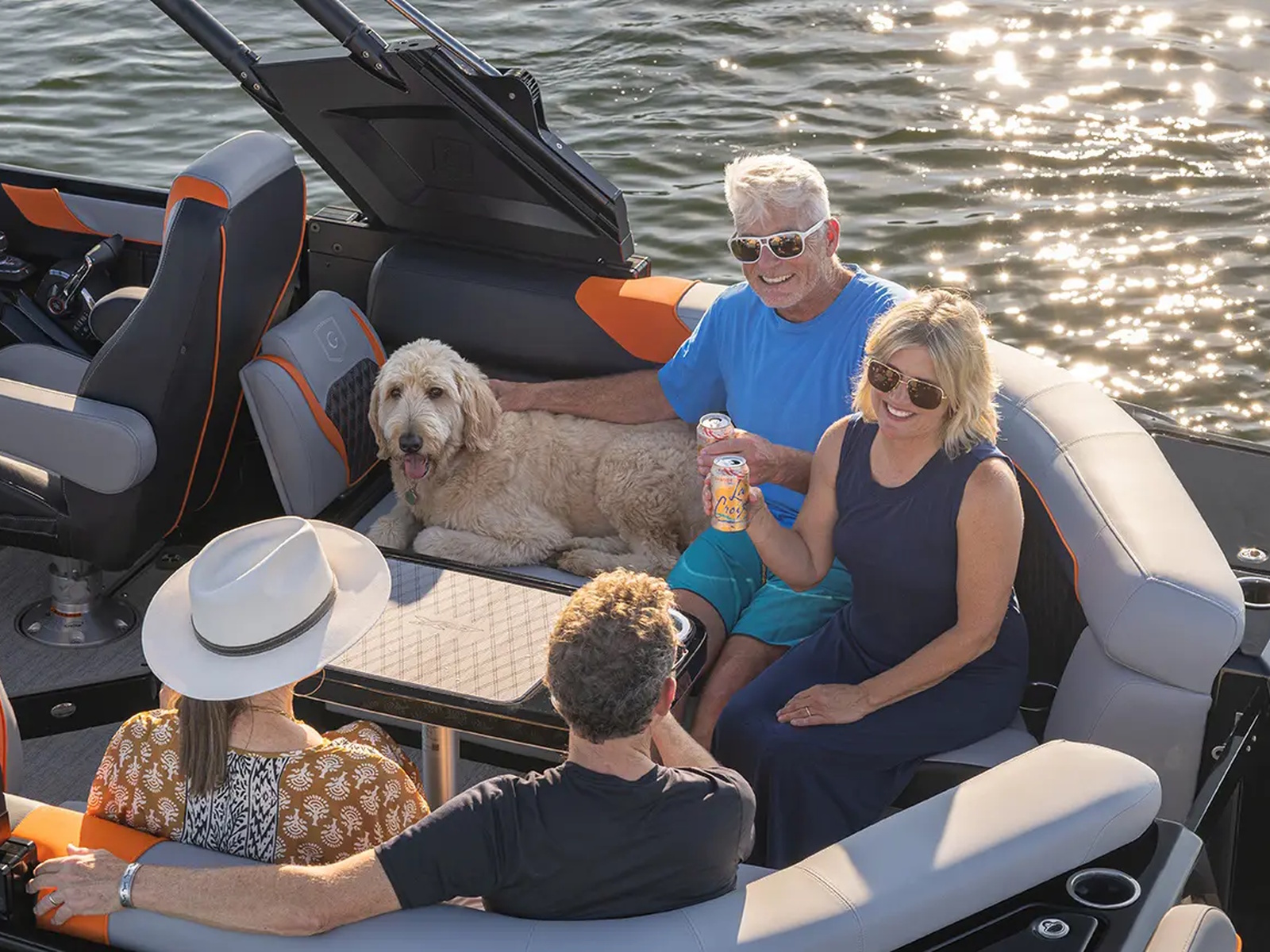 These compact stern seats are perfect for relaxing at anchor or helping skiers and tubers gear up before takeoff: comfortable, smart, and right where the action starts.