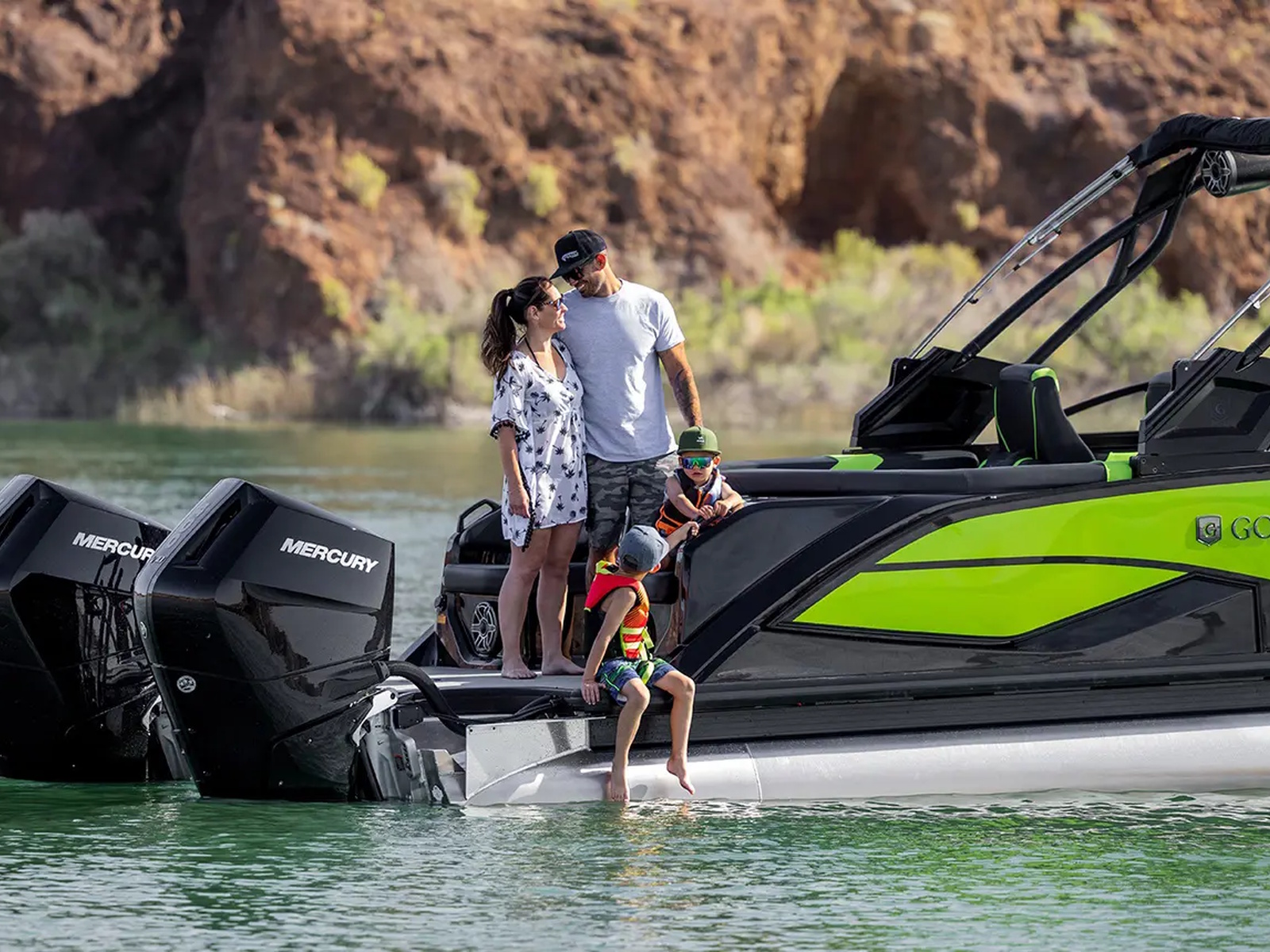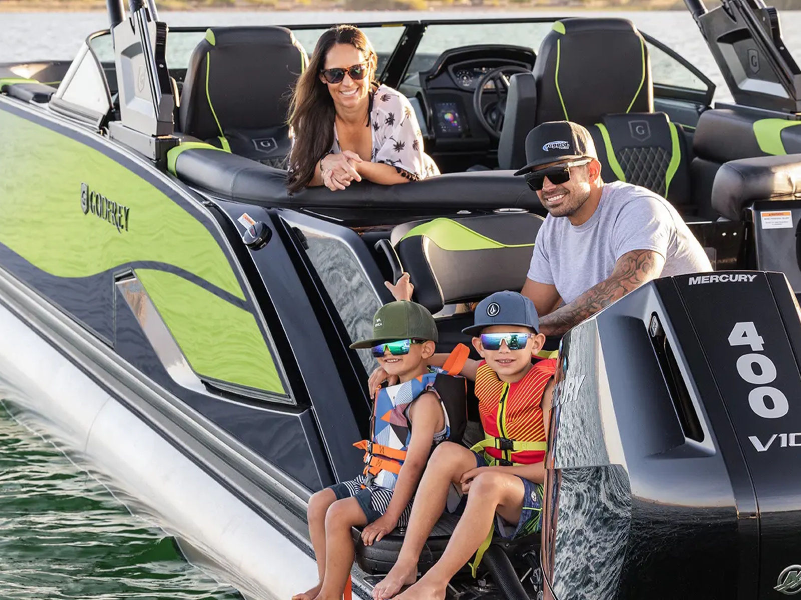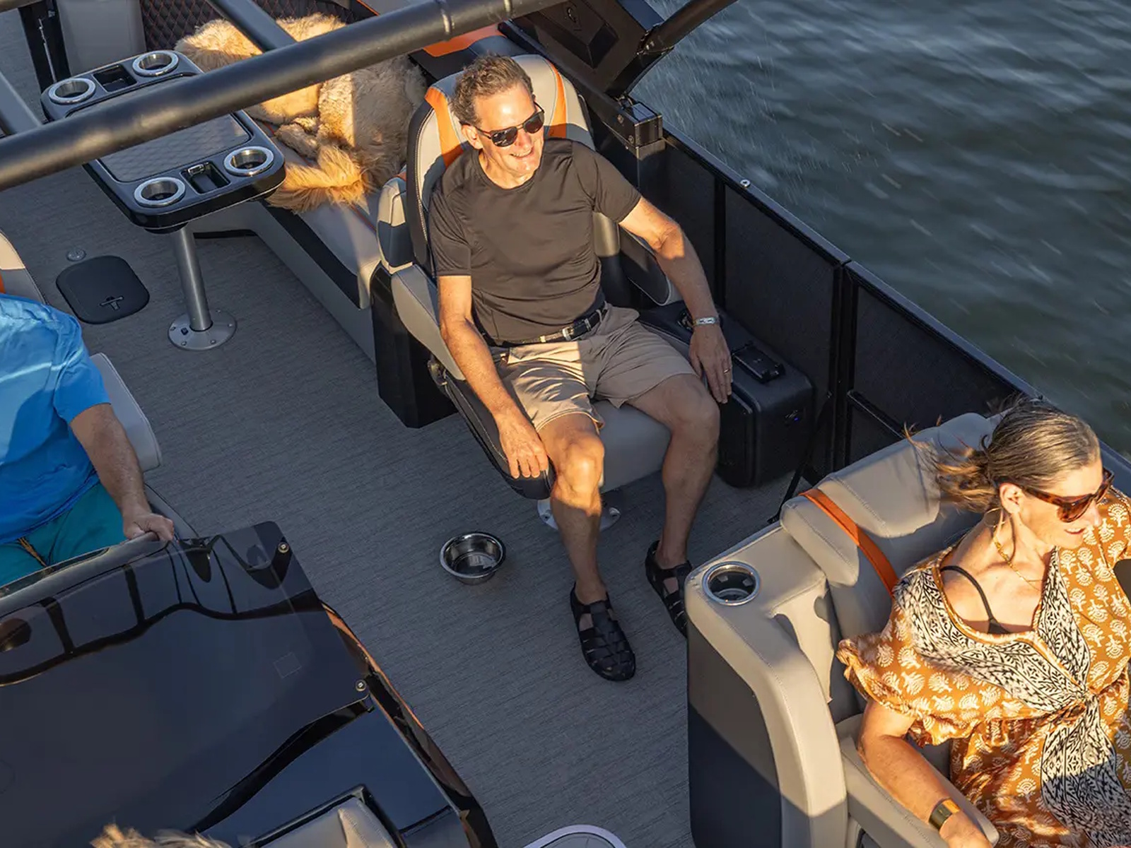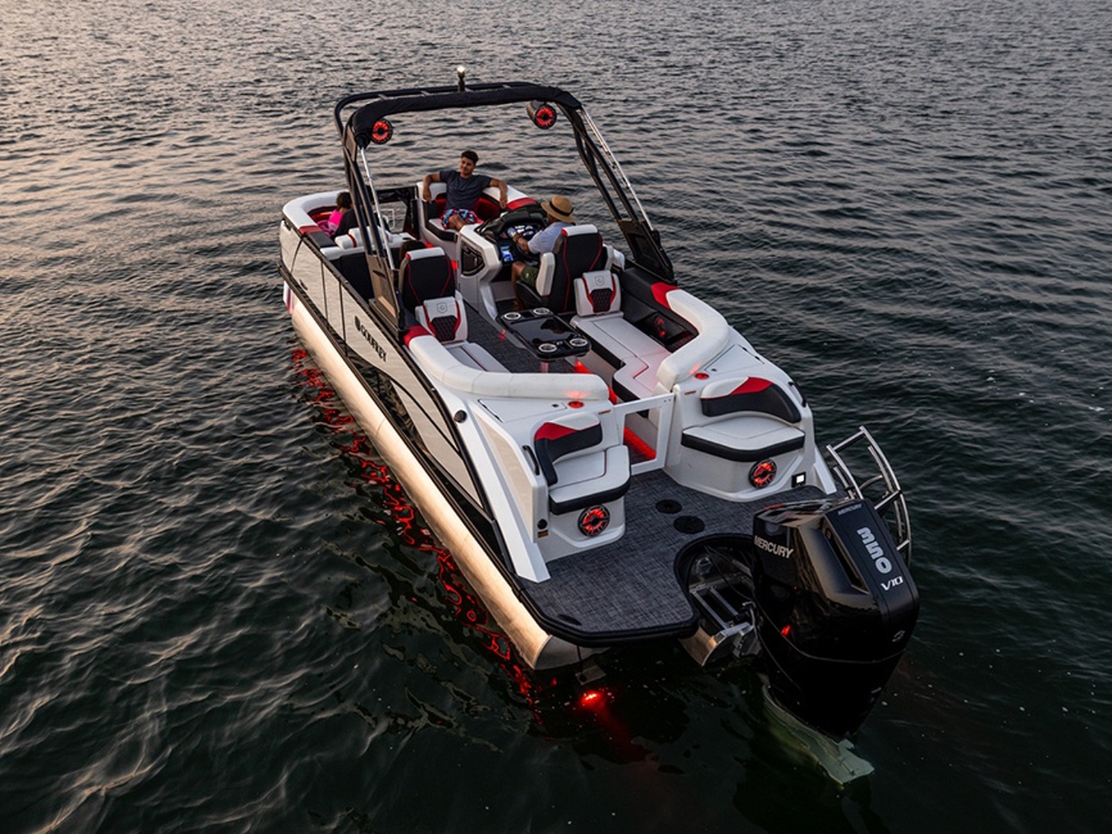 With digitally addressable RGB lighting throughout the boat, you’re in full control of the vibe. Pick your color, sync to your soundtrack, and let your pontoon light up the water.
