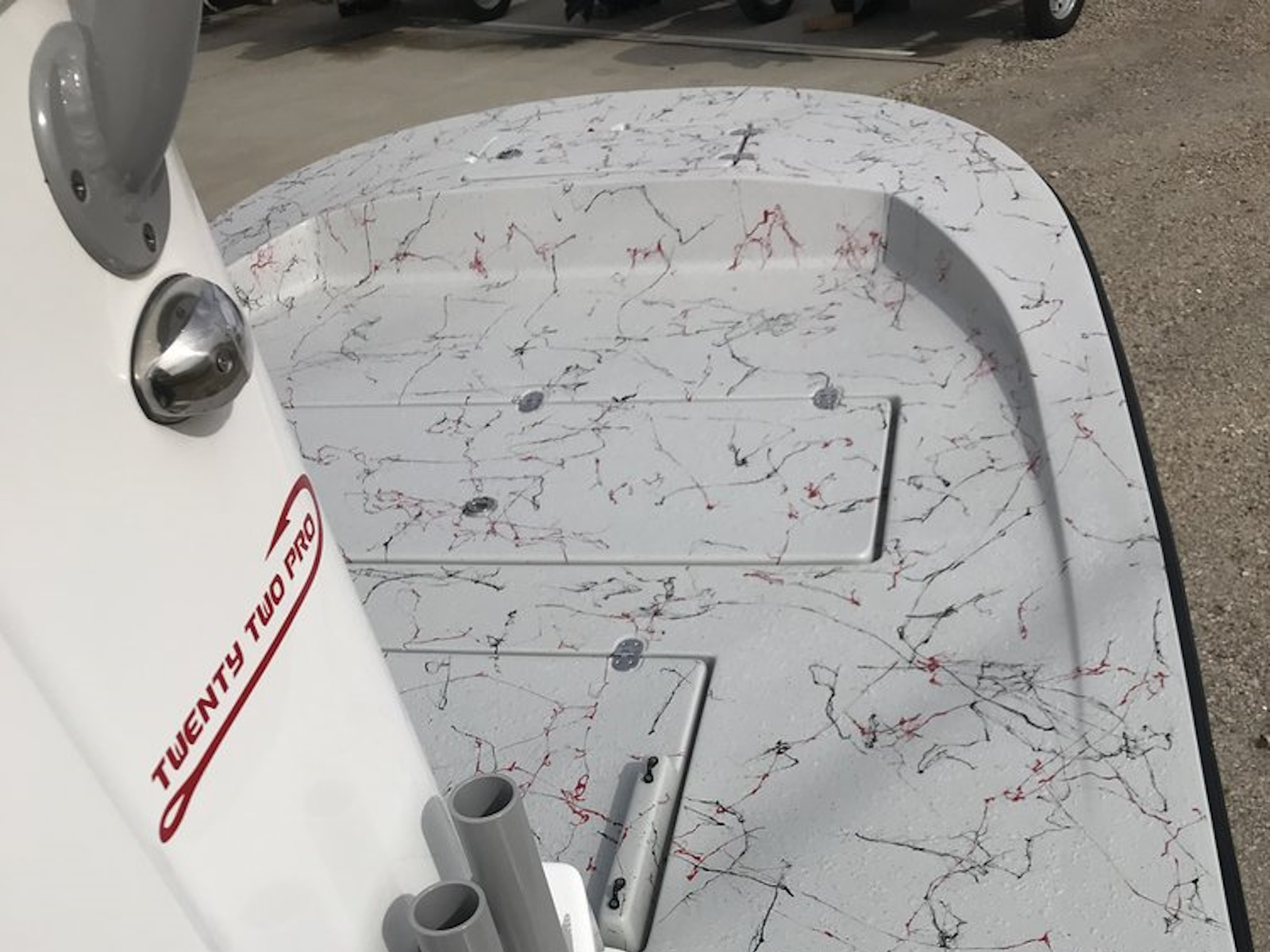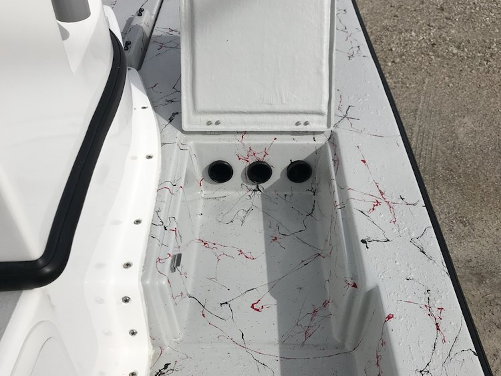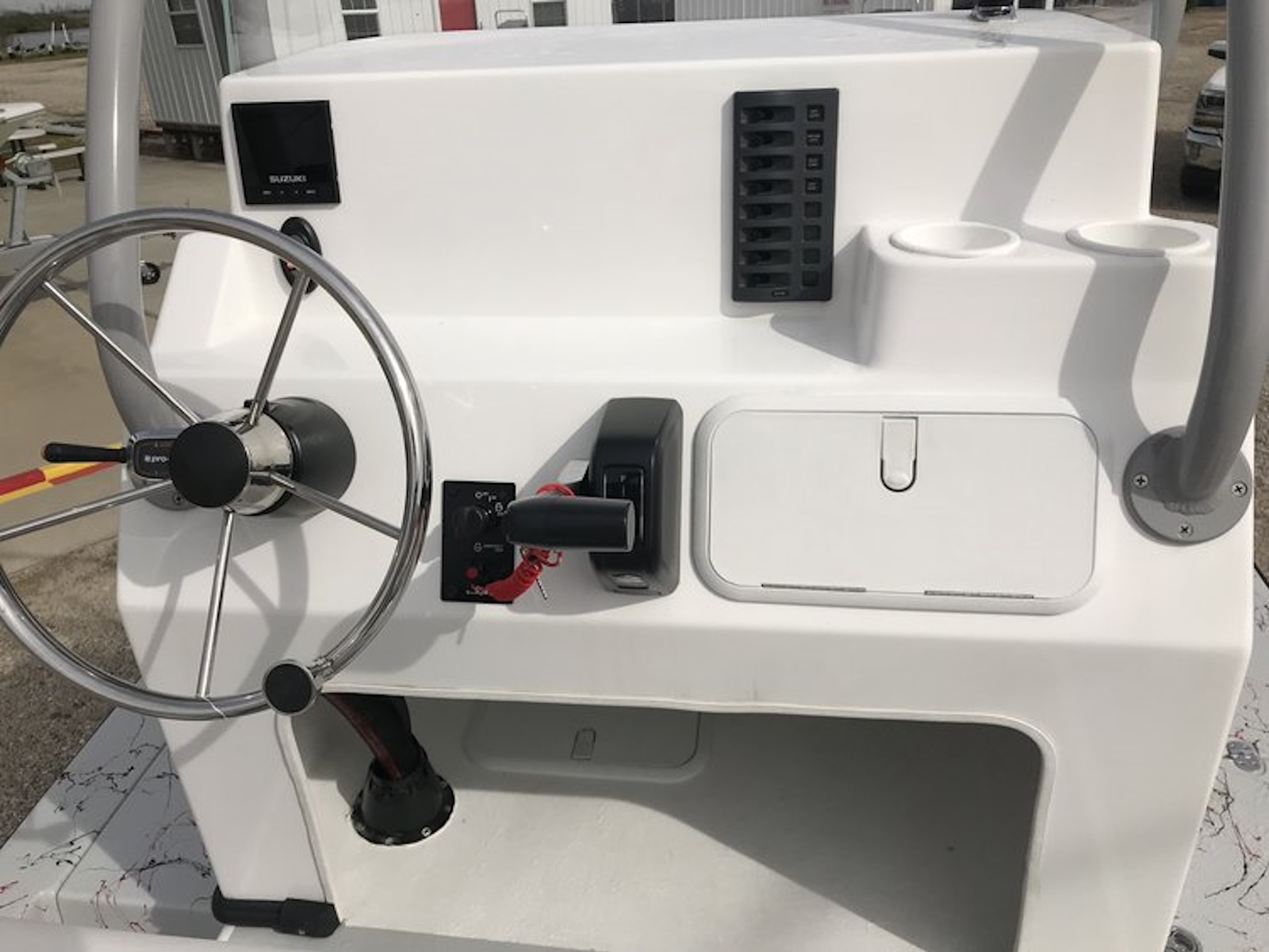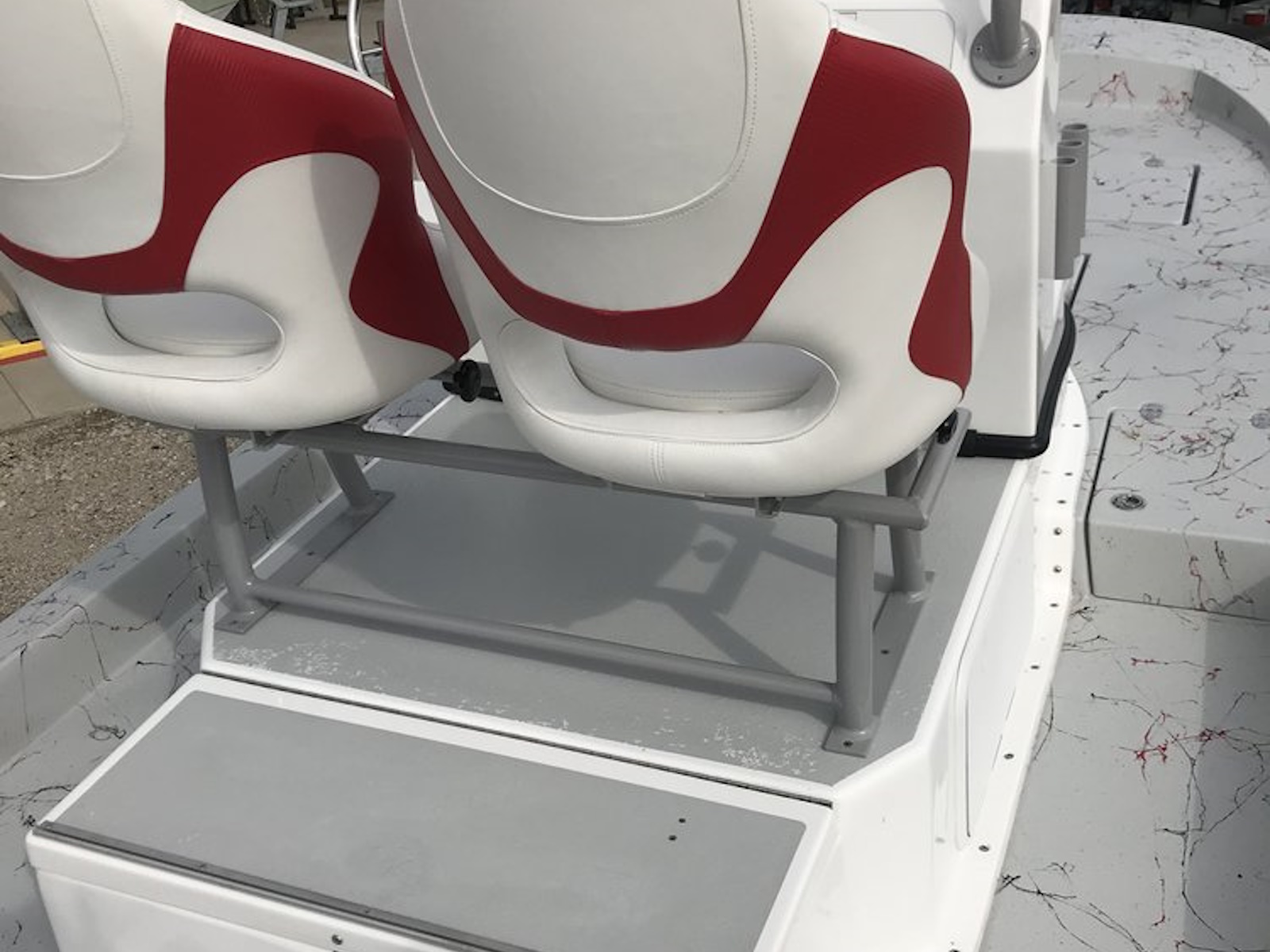 The Pro Model is a mono-tunnel V hull that is capable of running in less than a foot of water. This boat is designed to maximize your fishing opportunities from shallow water bays to gliding through the surf the mono-tunnel V hull can do it all. The cockpit layout includes built in rod lockers that will hold six additional rods, multiple large storage compartments, and two live wells to fit any angler’s needs. Whether you are tournament fishing and need to win a live weigh in or a novice angler with live bait, this design will fit any opportunity on the water. The Pro model comes with a raised center console which allows for additional storage below. The Gulf Coast Pro was designed for you.