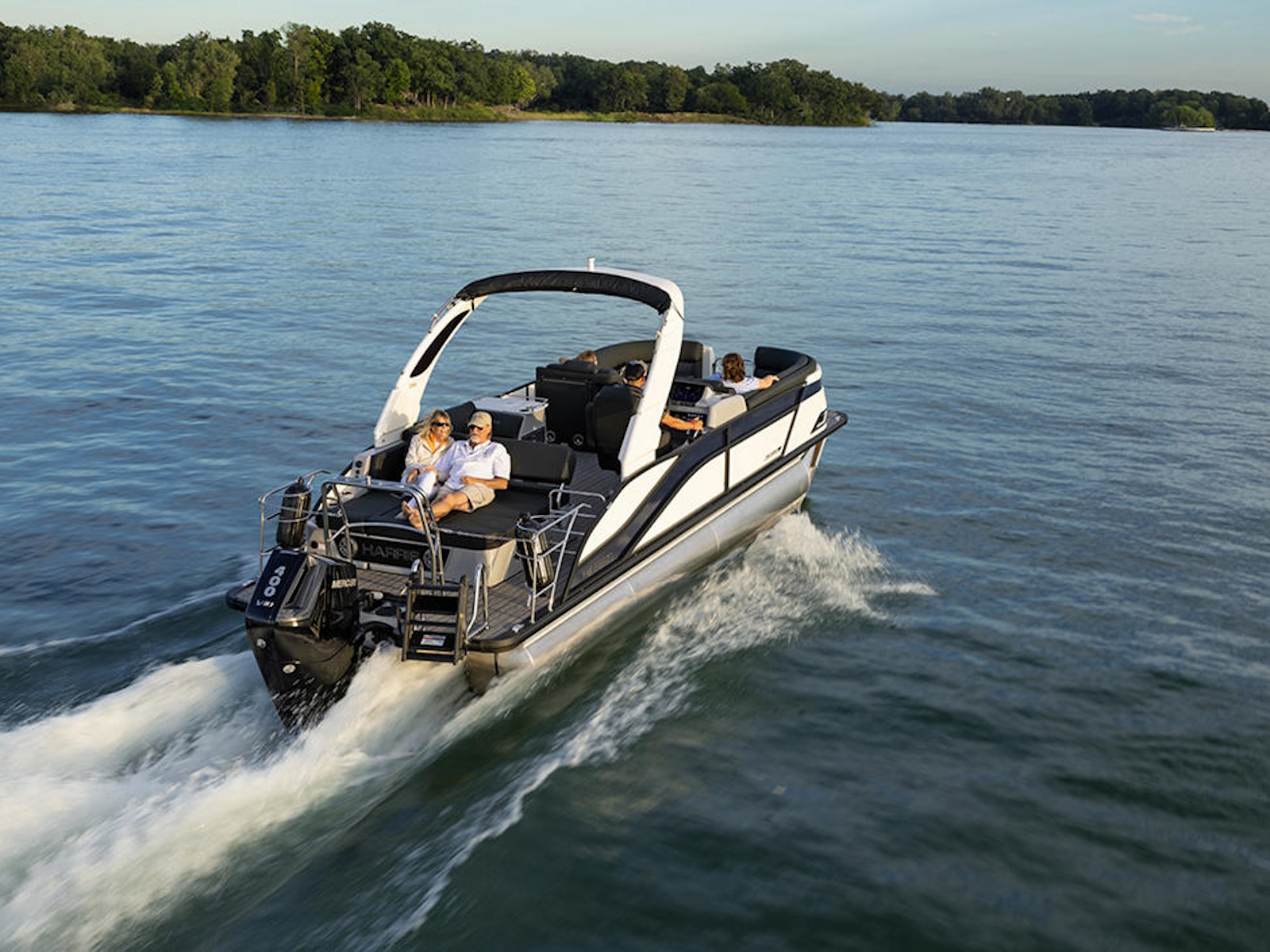With a totally redesigned look, the Grand Mariner stuns everyone on the lake with it's sweeping lines and sloped silhouette. Our soft-touch vinyl and luxurious furniture keep your family comfortable, while the Mercury engine puts plenty of power for watersports at your fingertips.