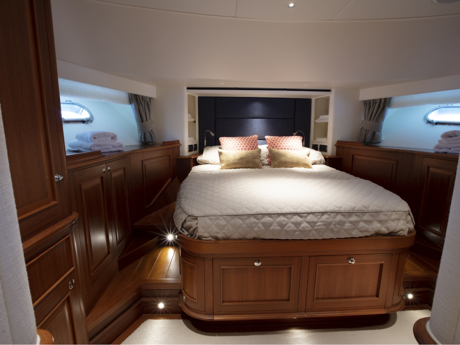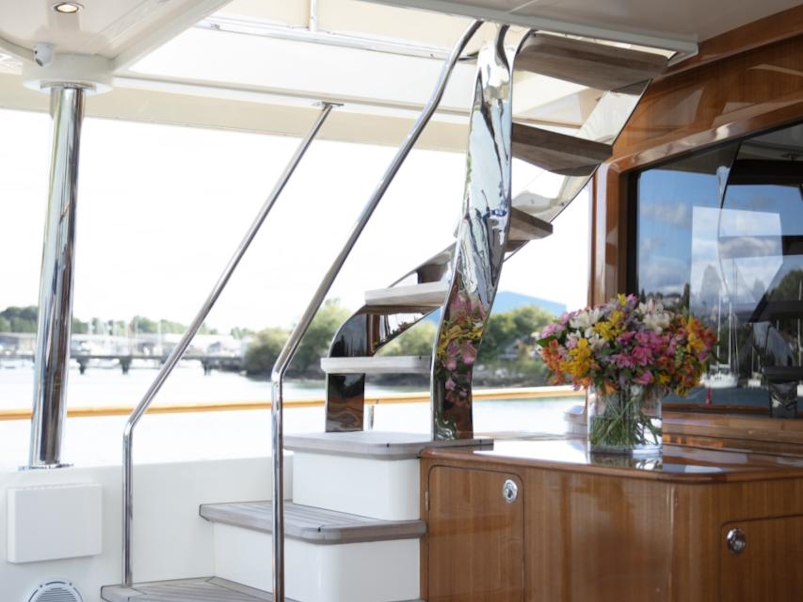 The Hunt 76 is a yacht of refined speed and space. Featuring the legendary performance of the authentic Hunt Deep-V, the ride is smooth, stable and dry even when conditions grow challenging. Exceptional design delivers an easy 31 knot speed. The luxurious layout features three spacious ensuite staterooms, expansive varnished salon, gourmet galley and an extended flybridge with dinghy storage and lift.