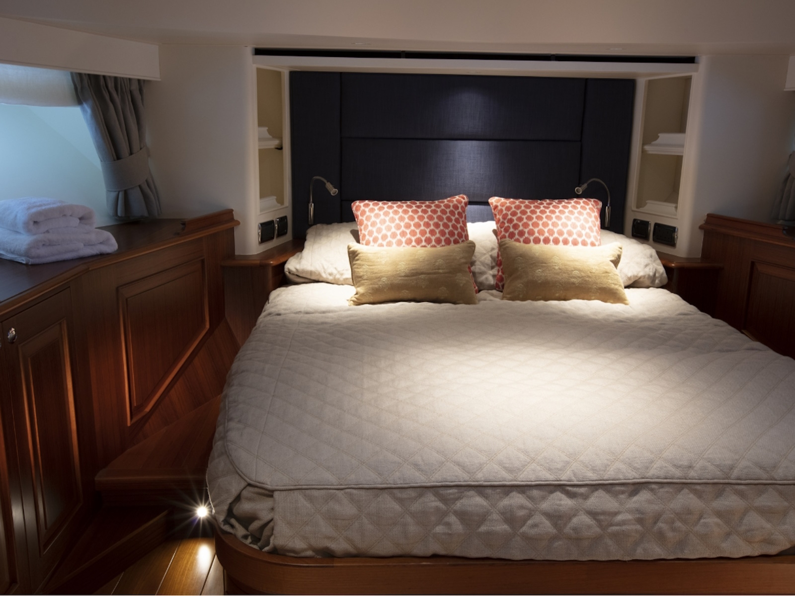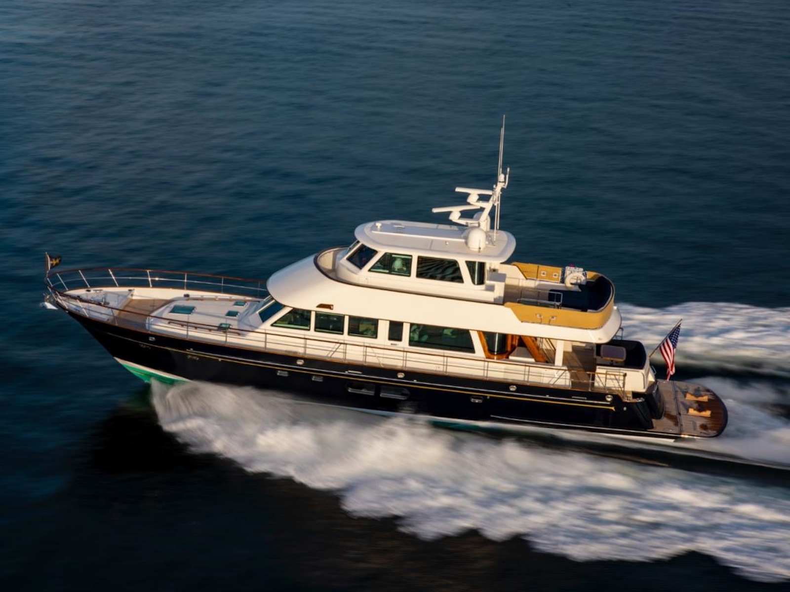 The Hunt 76 is a yacht of refined speed and space. Featuring the legendary performance of the authentic Hunt Deep-V, the ride is smooth, stable and dry even when conditions grow challenging. Exceptional design delivers an easy 31 knot speed. The luxurious layout features three spacious ensuite staterooms, expansive varnished salon, gourmet galley and an extended flybridge with dinghy storage and lift.