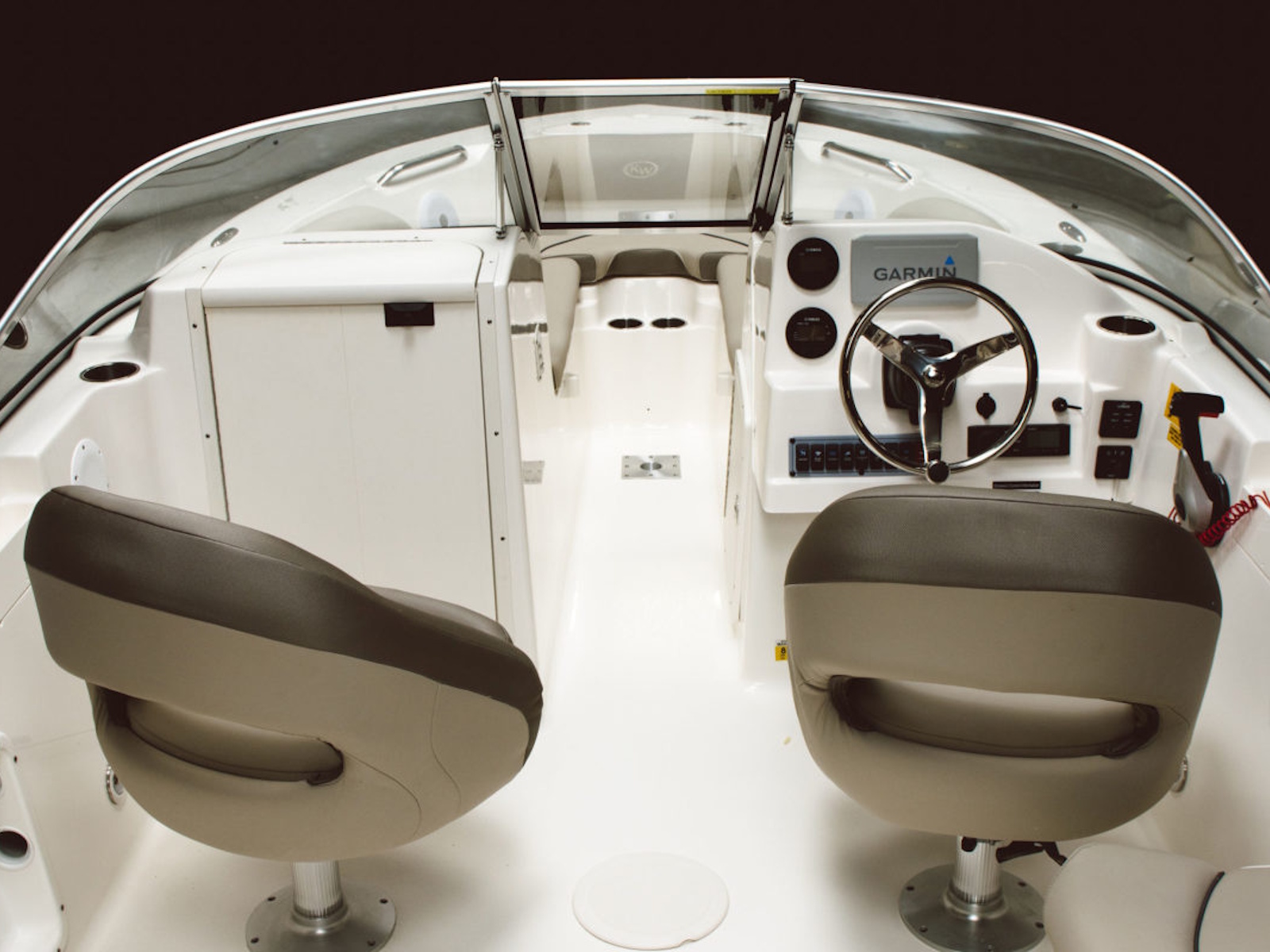 Both of our Dual Family Sportsmans feature rod racks, rod holders, and live wells, which allow for the occasional fishing day combined with the utility of a wrap around windshield and extensive seating. These saltwater friendly runabouts feature comfortable seating up front with a sporty wraparound bench in the cockpit. Watersports enthusiasts will enjoy the built in swim ladder combined with a swinging entry door for easy boarding, and for the occasional fishing trip will find convenient rod holders and even a live well.