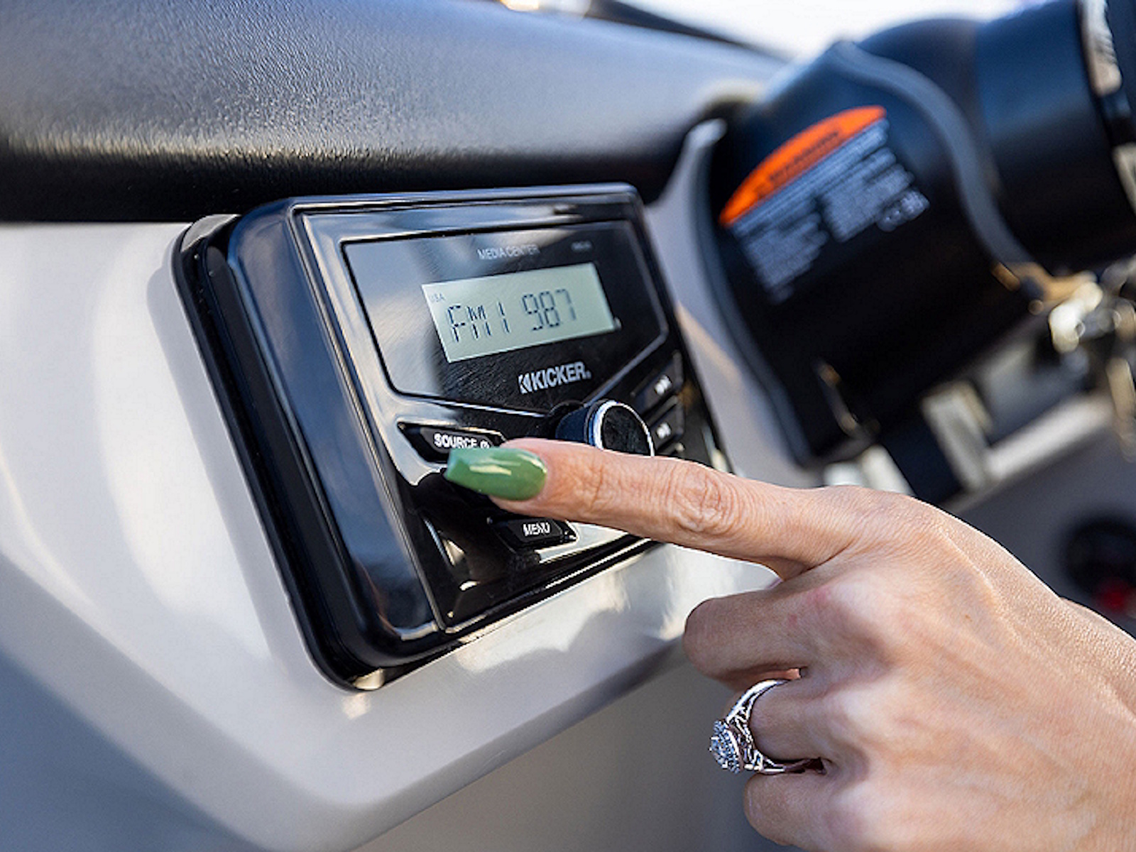 Crank up the tunes with the standard Kicker KMC45 Stereo. . Connect your Bluetooth® compatible device and listen through two 50-watt marine grade speakers.