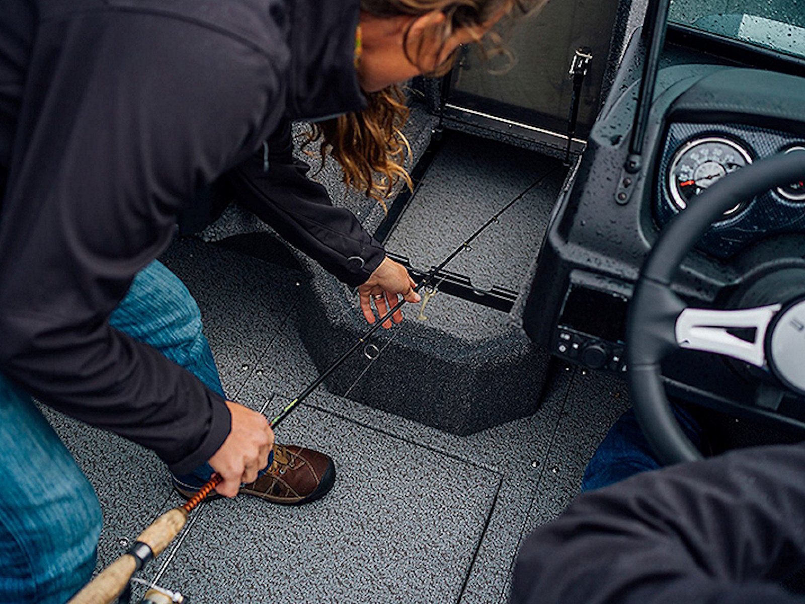 Lowe keeps your rod and reel collection safely secured in the locking center rod locker.