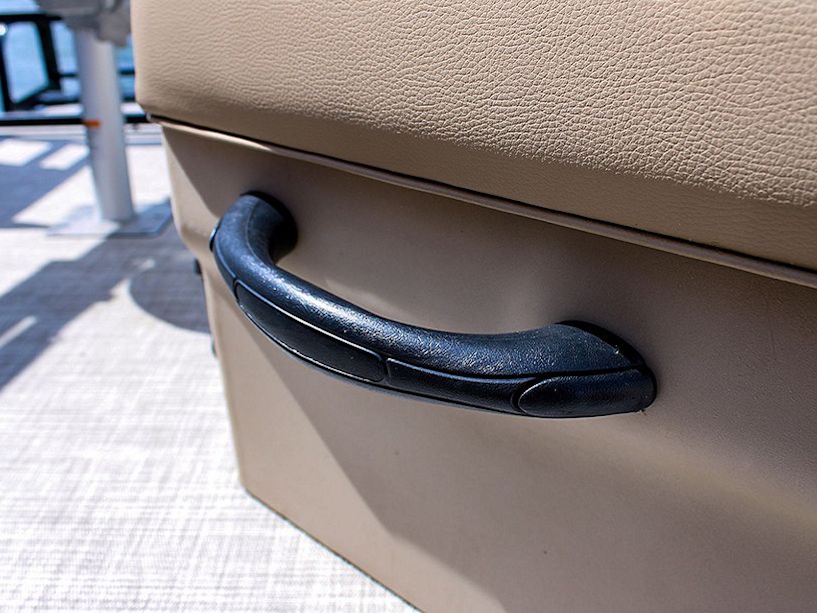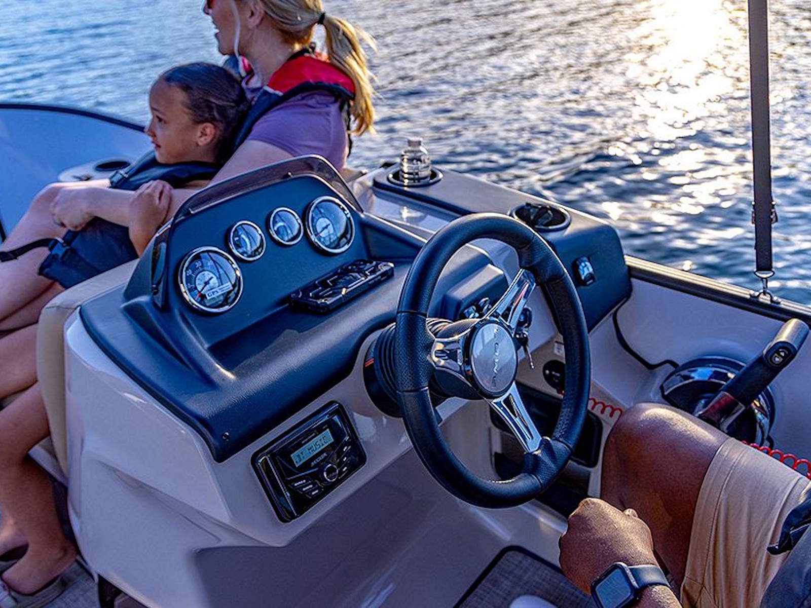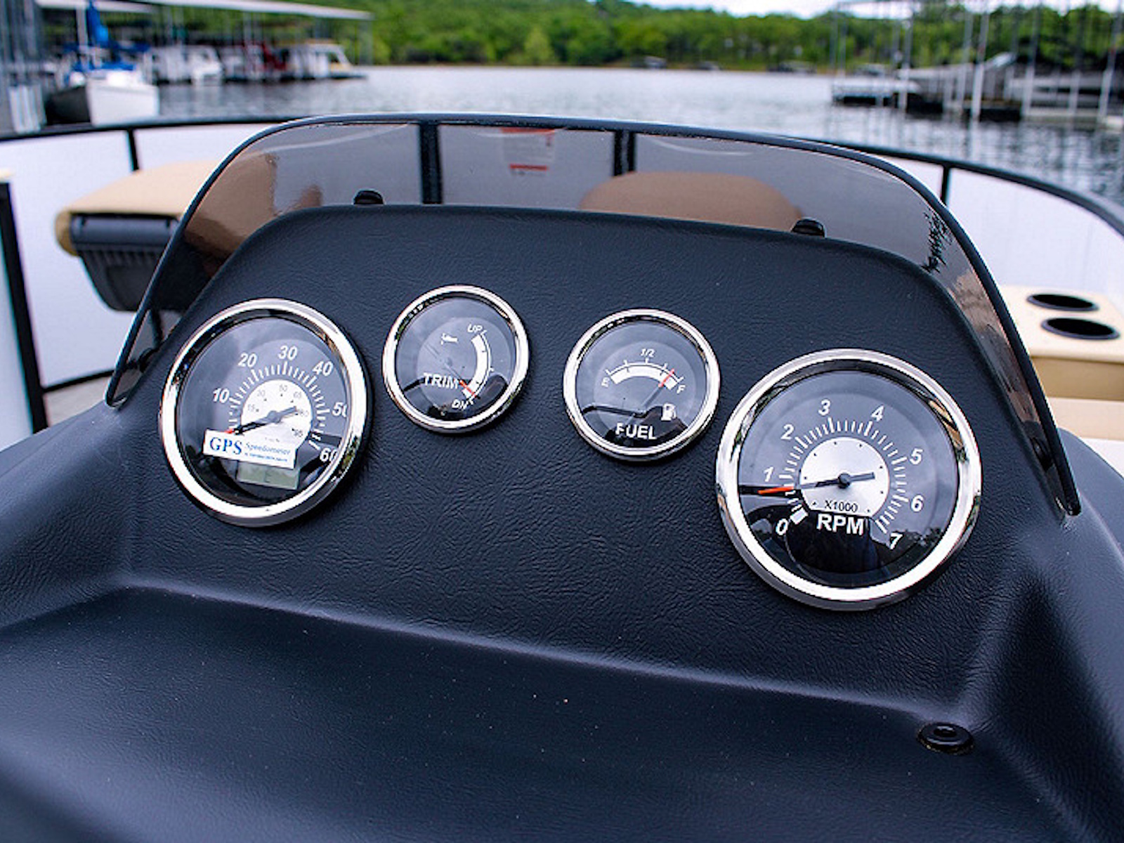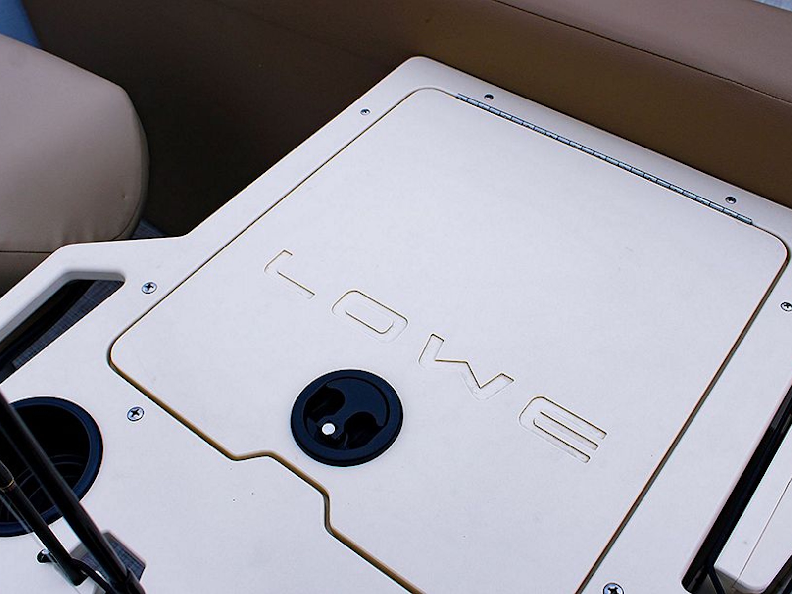 The ergonomically designed fiberglass console boasts a Kicker® KMC45 stereo system, adjustable phone mount, USB port, and a padded chuck tray with two cupholders. Two built-in storage areas offer additional space to stow it all away.