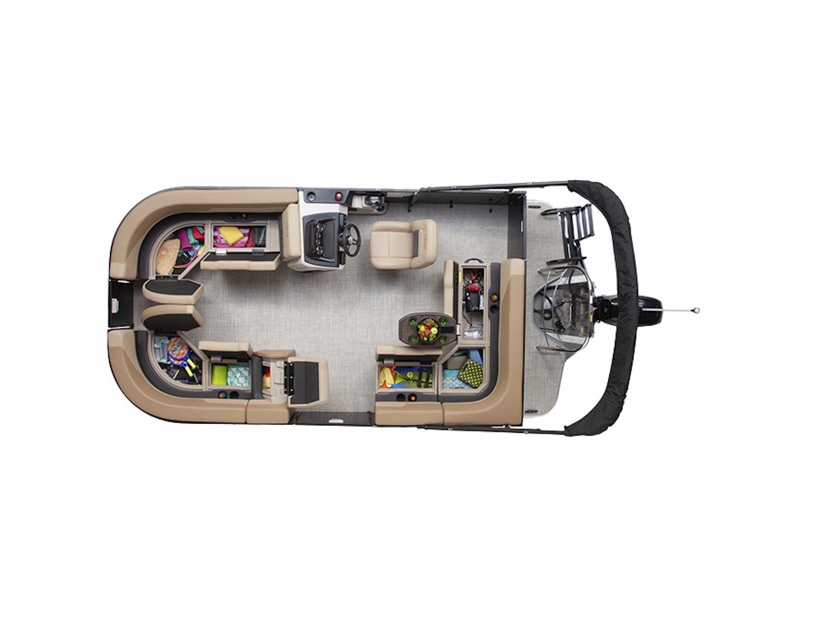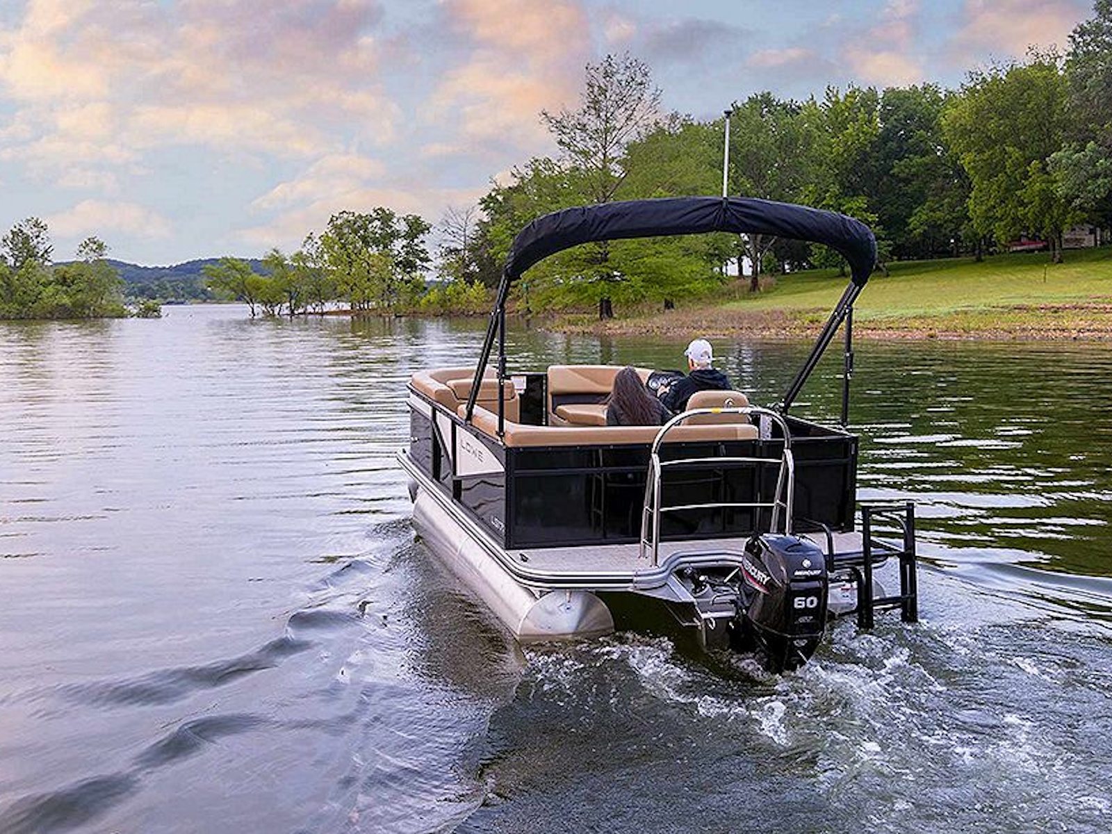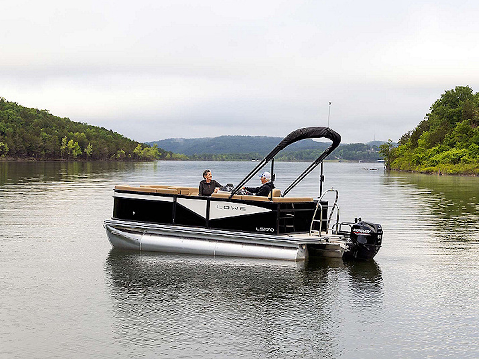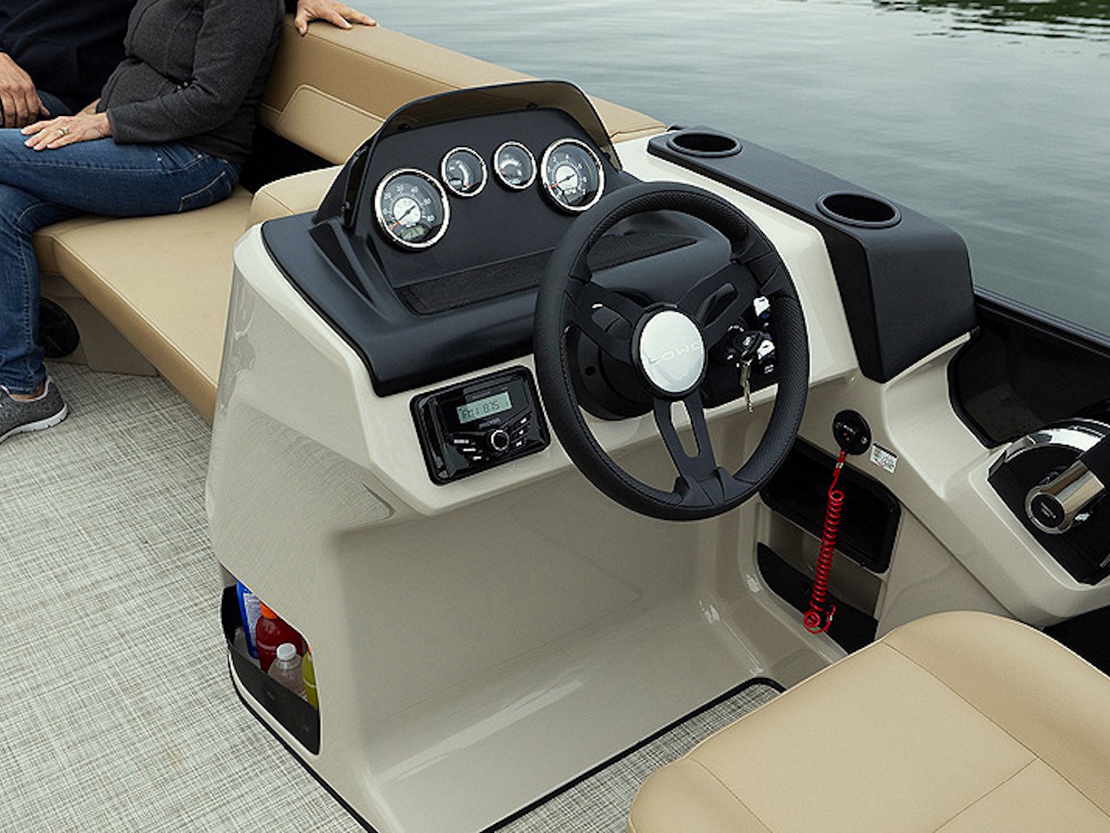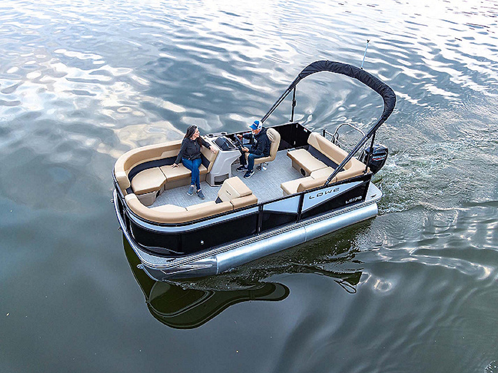 Step aboard the LS 170 and get ready for limitless smiles. The comfortable L-shaped setup accommodates up to eight passengers, while built-in storage within the furniture keeps all the essentials—and fun stuff—within reach. Plus, a dual-helm layout option on this 17-ft. pontoon boat allows your favorite people to cruise right beside you to share the captaining experience. The safe full-height fence is sleekly styled with modern black rails, while an array of standard amenities like a playpen cover, bimini and Kicker audio system ensure you and your crew fully enjoy your time on the water. With its compact size, the LS 170 stores and handles with ease for an effortlessly legendary summer.