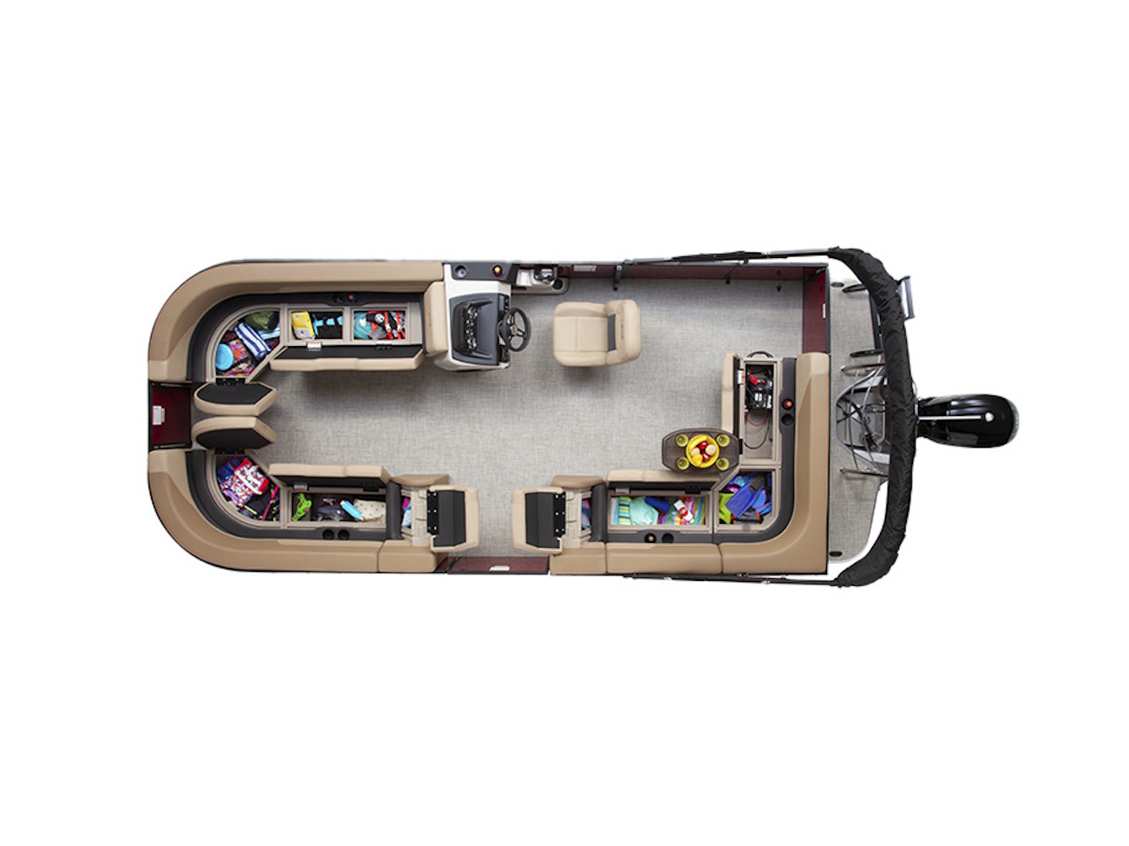 Step aboard the LS 210 and get ready for limitless smiles. The comfortable L-shaped setup accommodates up to 12 (with the TL package) passengers, while ample built-in storage within the furniture keeps all the essentials—and fun stuff—within reach. Plus, a dual-helm layout option on this 21-ft. pontoon boat allows your favorite people to cruise right beside you to share the captaining experience. The safe full-height fence is sleekly styled with modern black rails, while an array of standard amenities like a playpen cover, bimini, and Kicker audio system supply endless opportunities for fun with your crew. All this value and beauty at a budget-friendly price point? YEP. Get ready for legendary summers on your all-new LS 210.