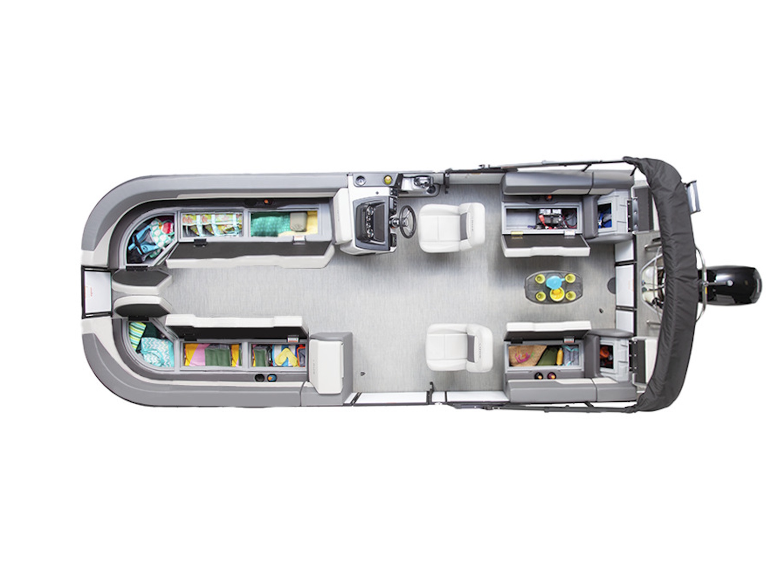 Step aboard the LS 230 WT and cruise straight into your most legendary summer yet. This 23-ft. pontoon’s spacious setup is perfect to fit your entire crew, while ample built-in storage within the comfortable furniture keeps all the essentials—and fun stuff—within reach. . The safe full-height fence is sleekly styled with modern black rails, while an array of standard amenities like a playpen cover, bimini, and Kicker audio system supply endless opportunities for fun with your crew. All this value and beauty at a budget-friendly price point? YEP. Get ready for legendary summers on your all-new LS 230 WT.