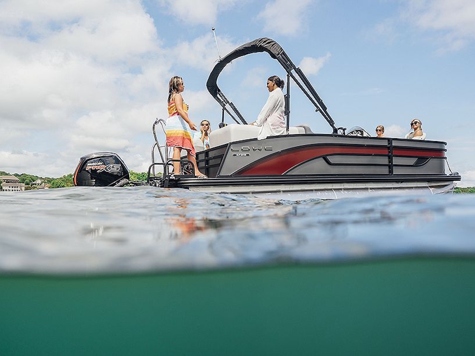 Our SF pontoons feature handsome fiberglass consoles with GPS gauges, a premium chrome steering wheel with a comfortable and confident rubber wheel, and ready access to all the captain's electronics.