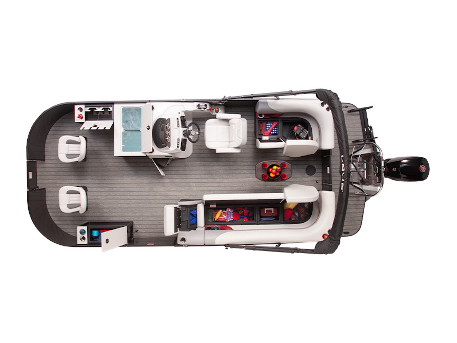 Keep your belongings tucked safely in optimal storage throughout the entire pontoon.