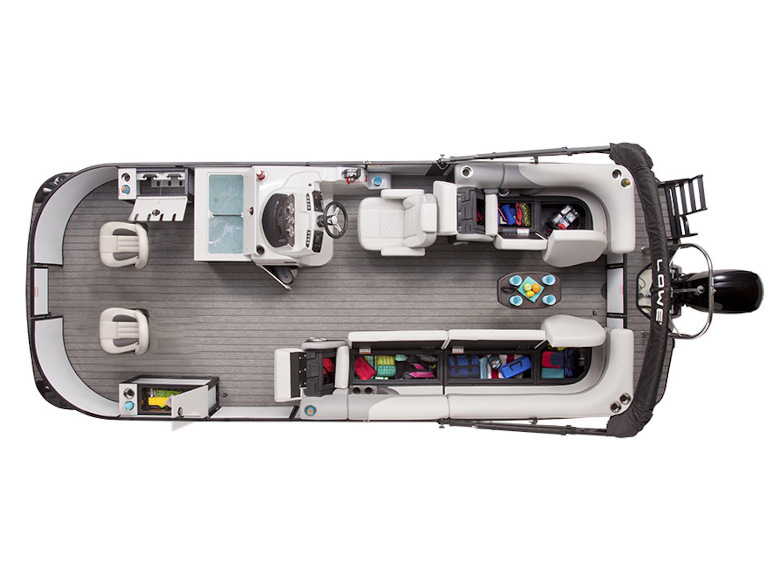 Keep your belongings tucked safely in optimal storage throughout the entire pontoon.