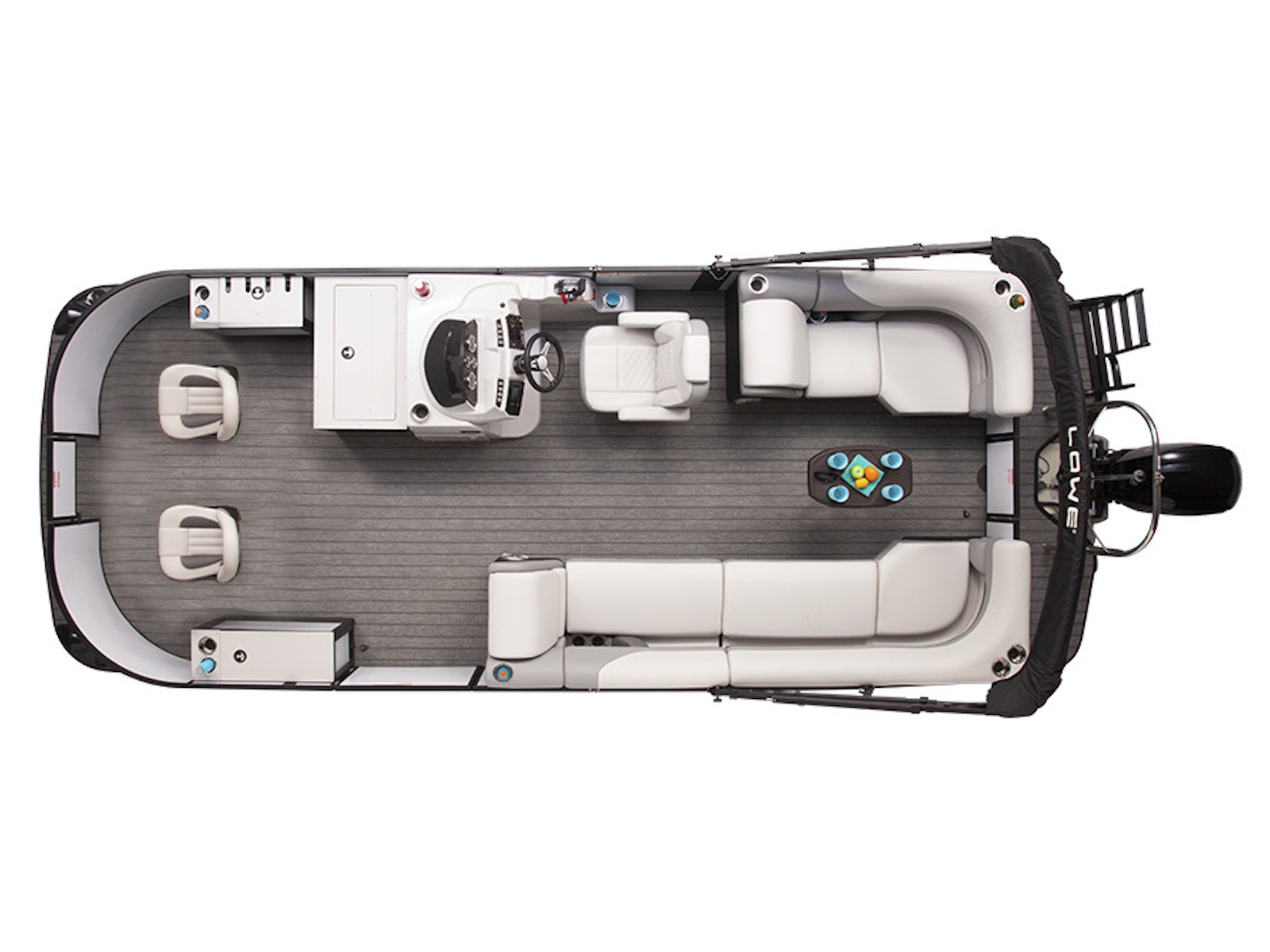 Our SF pontoons feature handsome fiberglass consoles with GPS gauges, a premium chrome steering wheel with a comfortable and confident rubber wheel, and ready access to all the captain's electronics.