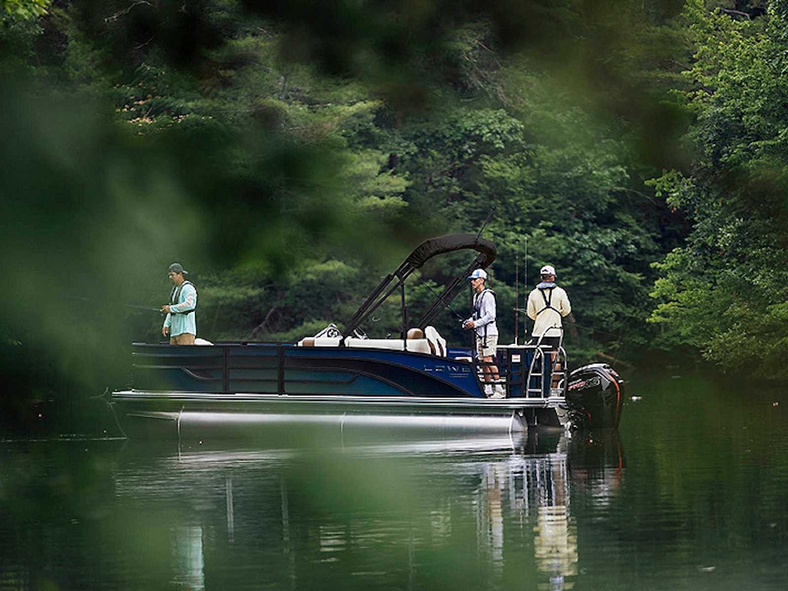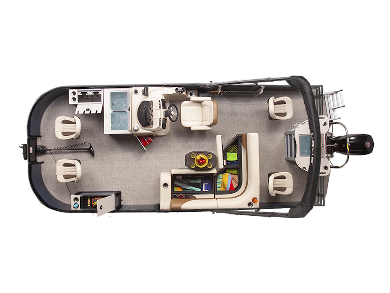 Our SF pontoons feature handsome fiberglass consoles with GPS gauges, a premium chrome steering wheel with a comfortable and confident rubber wheel, and ready access to all the captain's electronics.