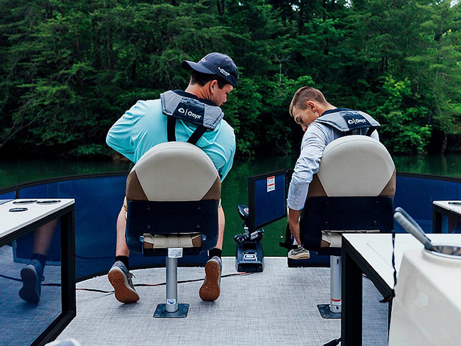 Fish from any corner with livewells, lockable vertical rod holders, tackle storage and swiveling fishing seats.