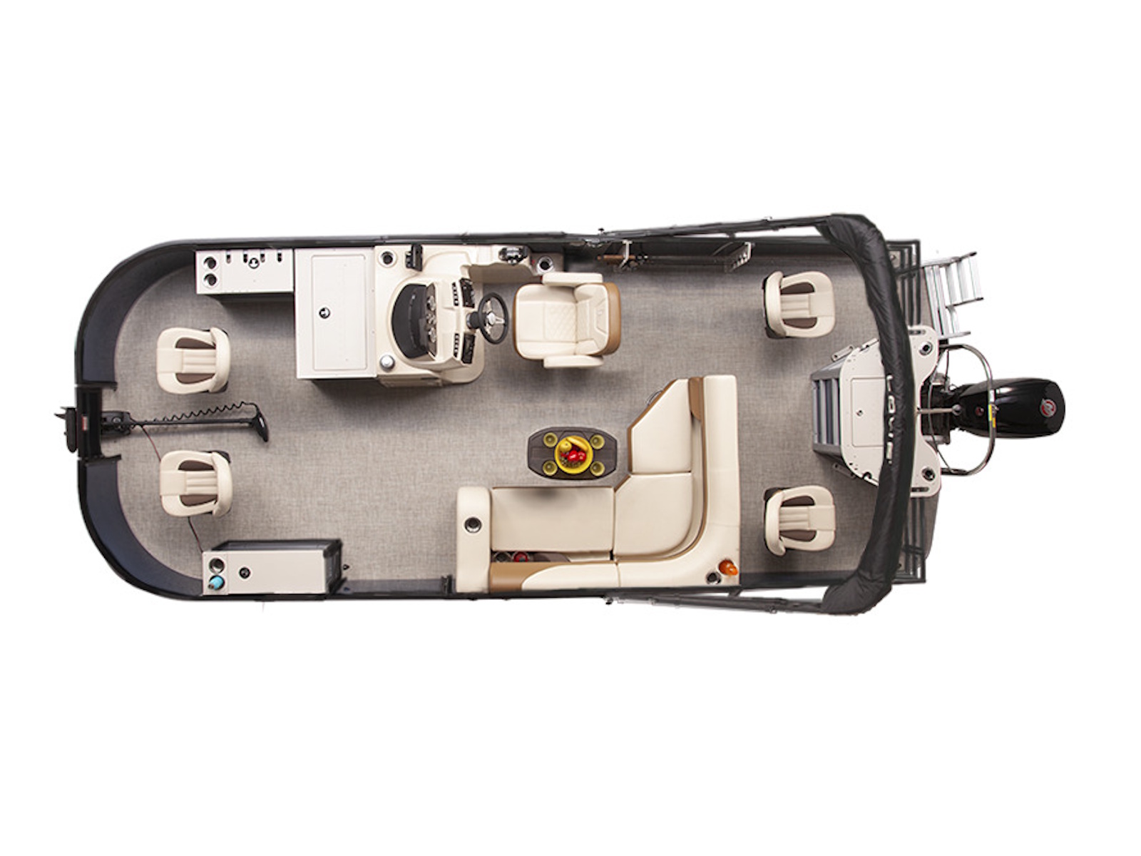 Our SF pontoons feature handsome fiberglass consoles with GPS gauges, a premium chrome steering wheel with a comfortable and confident rubber wheel, and ready access to all the captain's electronics.