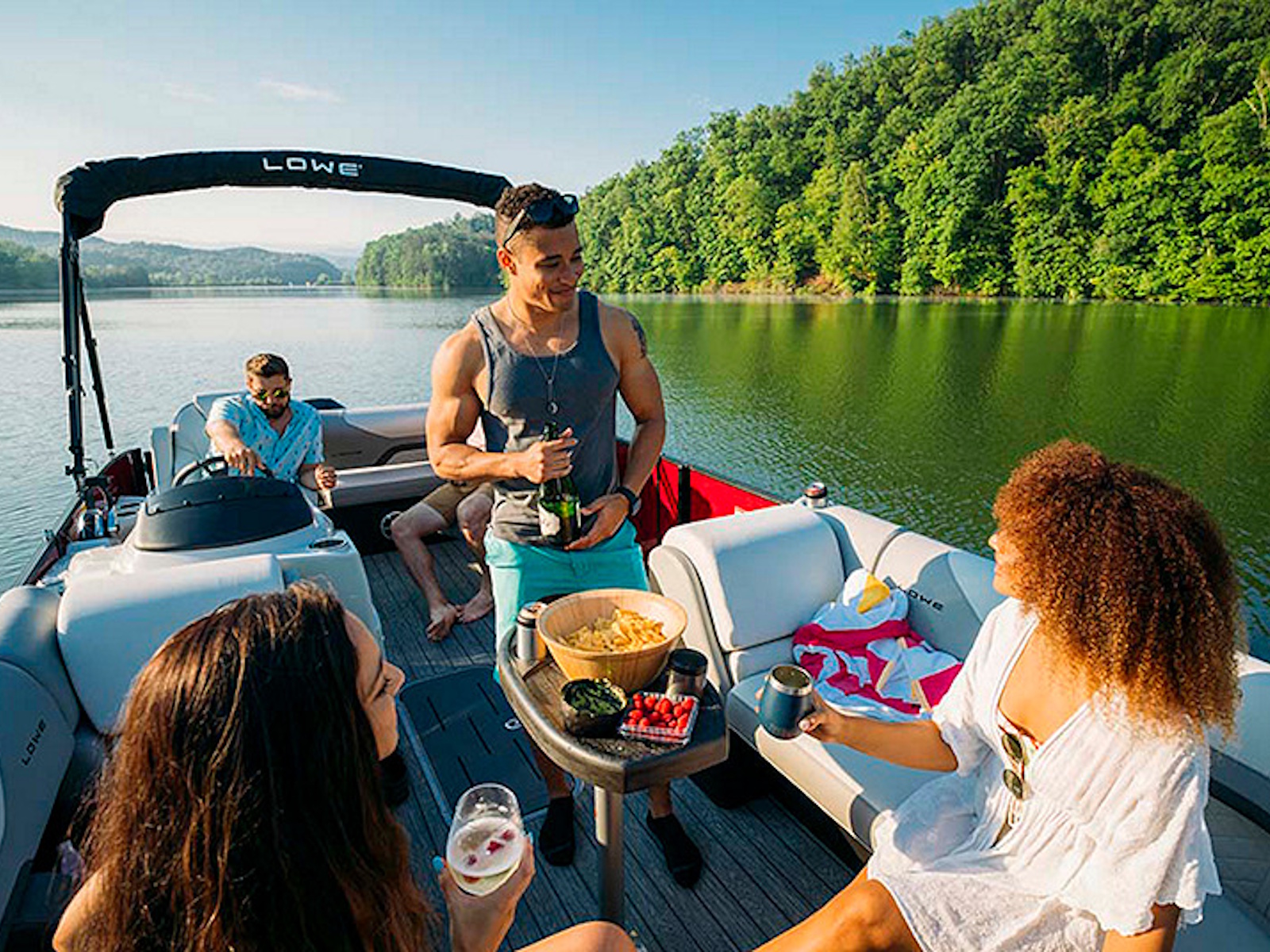 The Lowe® SS 210 Conversion Lounge features an all-new high-fence design with contemporary furniture arranged to maximize relaxation and inspire fun on the water. The aft conversion lounge is the size of a queen mattress, letting more than one sun lover bask in the rays, watch watersports behind the boat, or face forward while underway. Storage under the seats throughout the boat means room for all the gear your crew needs for an enjoyable day on the water, and a Kicker® sound system lets you pump out the tunes for a lake-based dance party. With reliable Mercury® power and Lowe's legendary quality construction, you'll be assured of a lifetime of top performance durability no matter where you cruise.