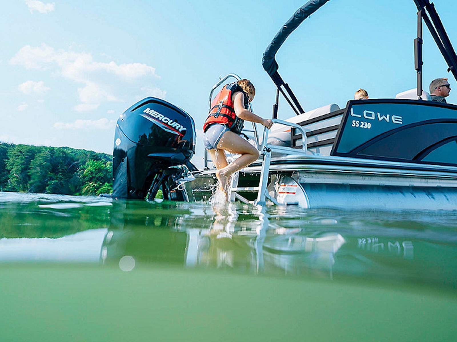 The Lowe® SS 210 Conversion Lounge features an all-new high-fence design with contemporary furniture arranged to maximize relaxation and inspire fun on the water. The aft conversion lounge is the size of a queen mattress, letting more than one sun lover bask in the rays, watch watersports behind the boat, or face forward while underway. Storage under the seats throughout the boat means room for all the gear your crew needs for an enjoyable day on the water, and a Kicker® sound system lets you pump out the tunes for a lake-based dance party. With reliable Mercury® power and Lowe's legendary quality construction, you'll be assured of a lifetime of top performance durability no matter where you cruise.