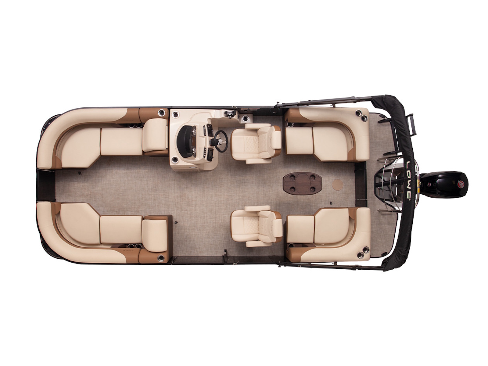 Spacious, walk thru seating allows for easy movement around the pontoon.
