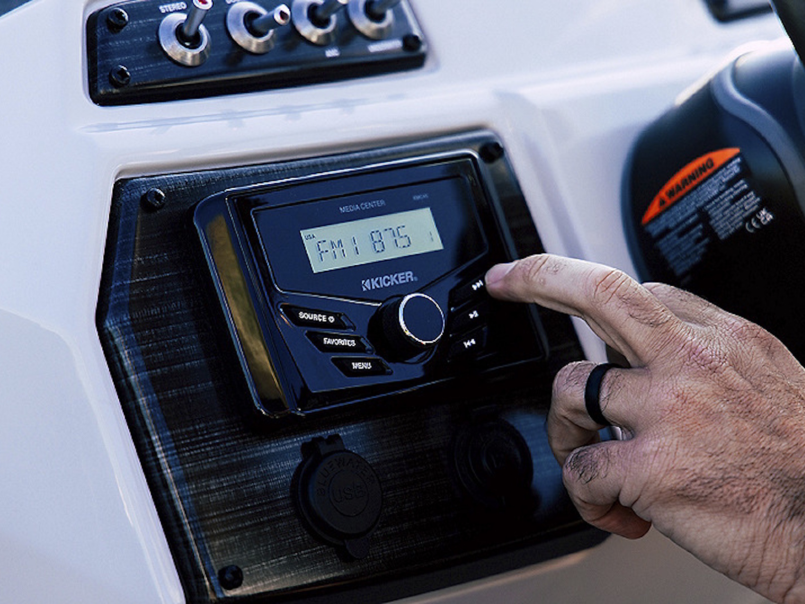 Crank up the tunes with the included Kicker stereo with AM/FM tuner navigating a waterproof LCD display with LED blacklit buttons. Connect your Bluetooth compatiable device and listen through marine grade speakers.