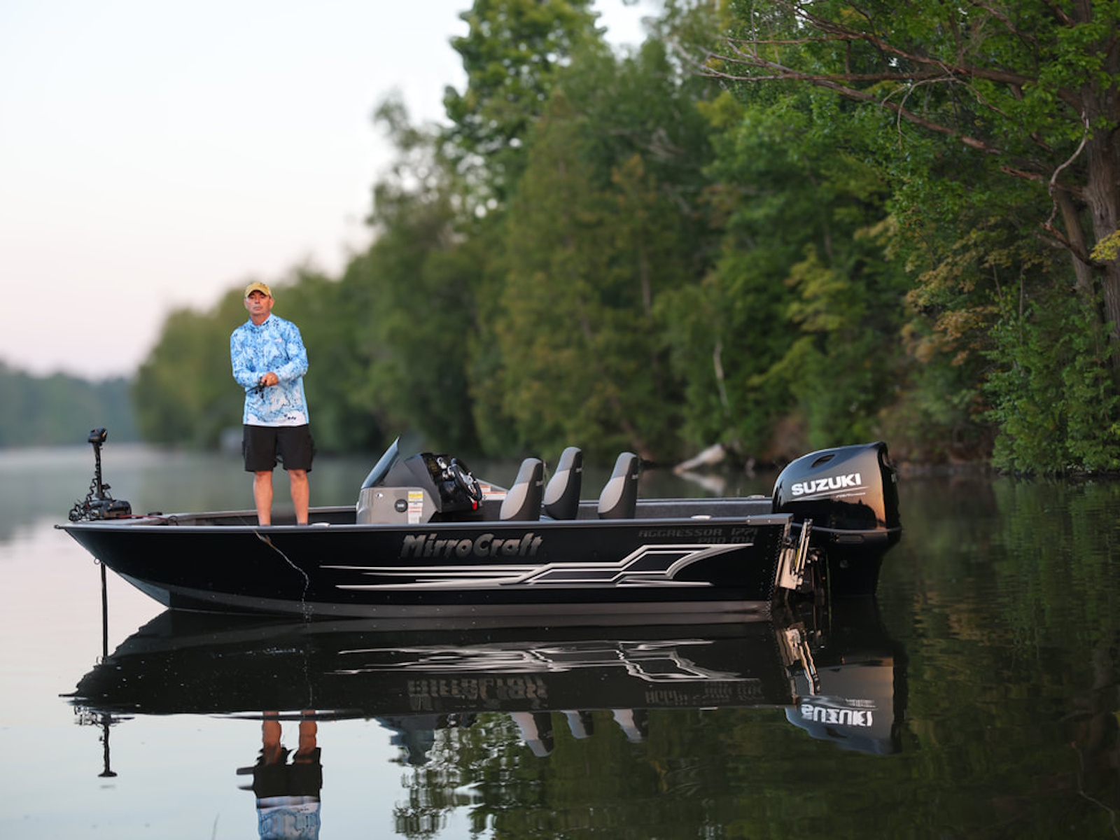 Their one-piece bottoms, double skinned hull and stronger 2" thick composite transoms, allow them to carry increased horsepower ratings as well. Aggressors offer pro-level components and pro-level performance when you power them with Mercury, Honda, Suzuki, Tohatsu or Yamaha outboards.