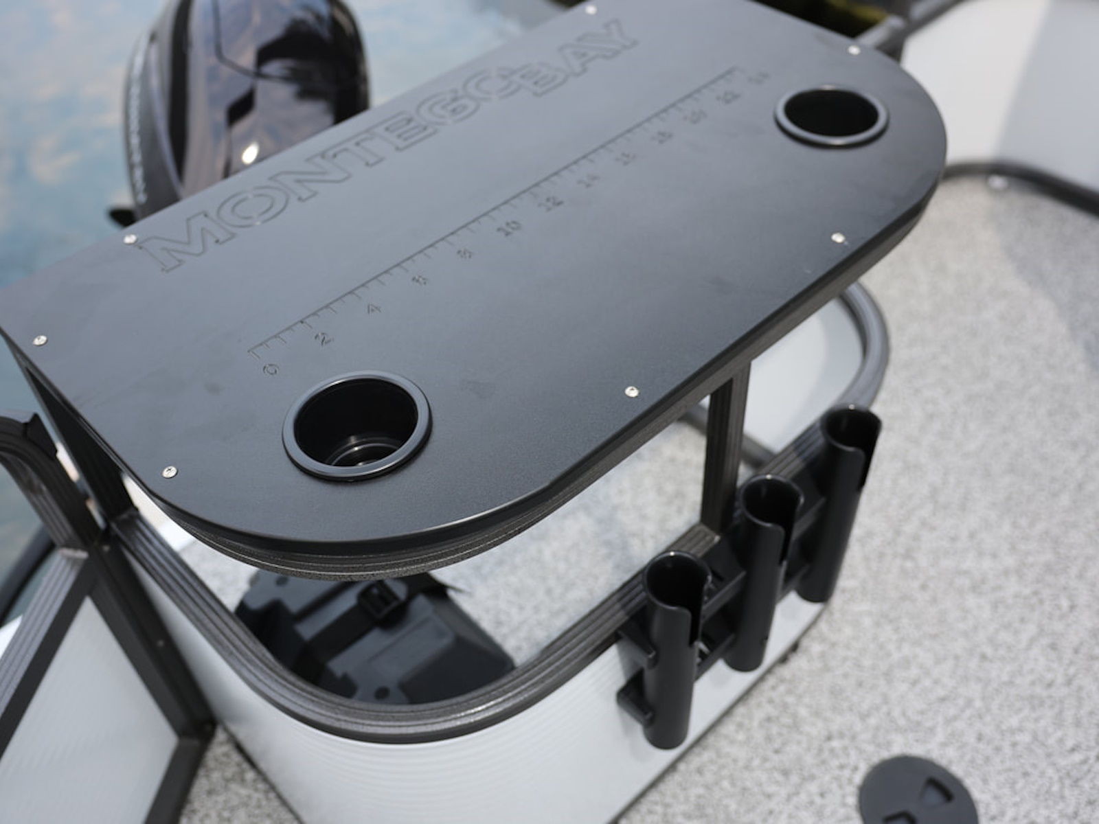 Our 6 models of fishing pontoons range from a highly maneuverable 16 footer and get as large as 22 feet. These fishing machines have the best value in the market. The most discriminating angler will surely find a model to fit his or her needs. All of our fishing pontoons are 8.5' wide and come with 25" tubes.  A 50Qt livewell, rod holders and premium fishing seats are standard features.   Couple that with our rear entry, rear boarding ladder, asiago vinyl and comfortable helm chair and you won't find a nicer fishing pontoon in the market.
