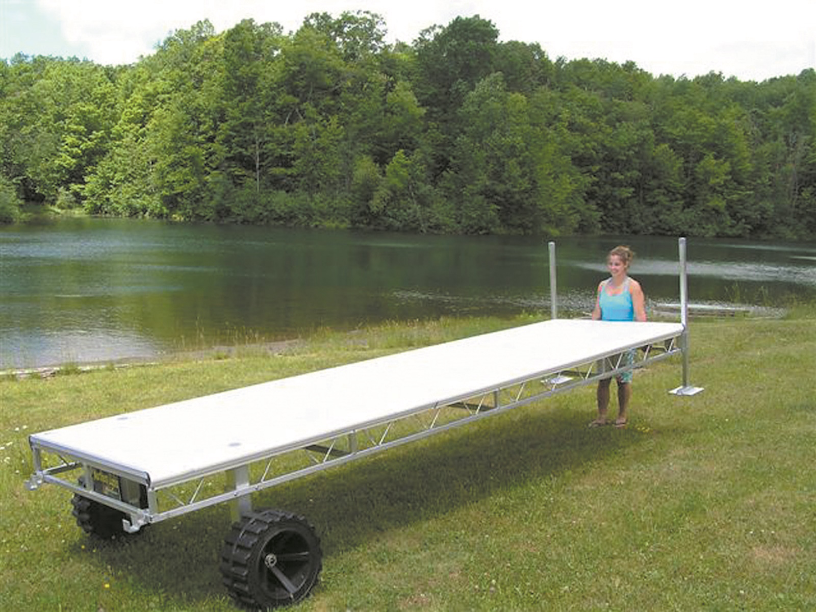 Our premier roll in dock systems are available in up to 16\’ lengths with an extensive offering of sundecks. This system is completely modular and expandable. Adjustments can be made from the top of the dock utilizing independently, telescopic wheel kits.