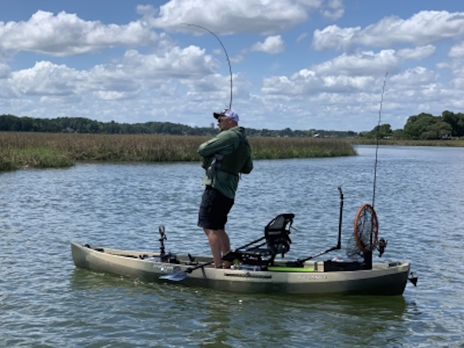 The Frontier 12 is ridiculously stable, so you can stand and fish with confidence on the 20″ wide Cast & Blast Deck. Face the action and easily access your gear with 360 degree mobility.