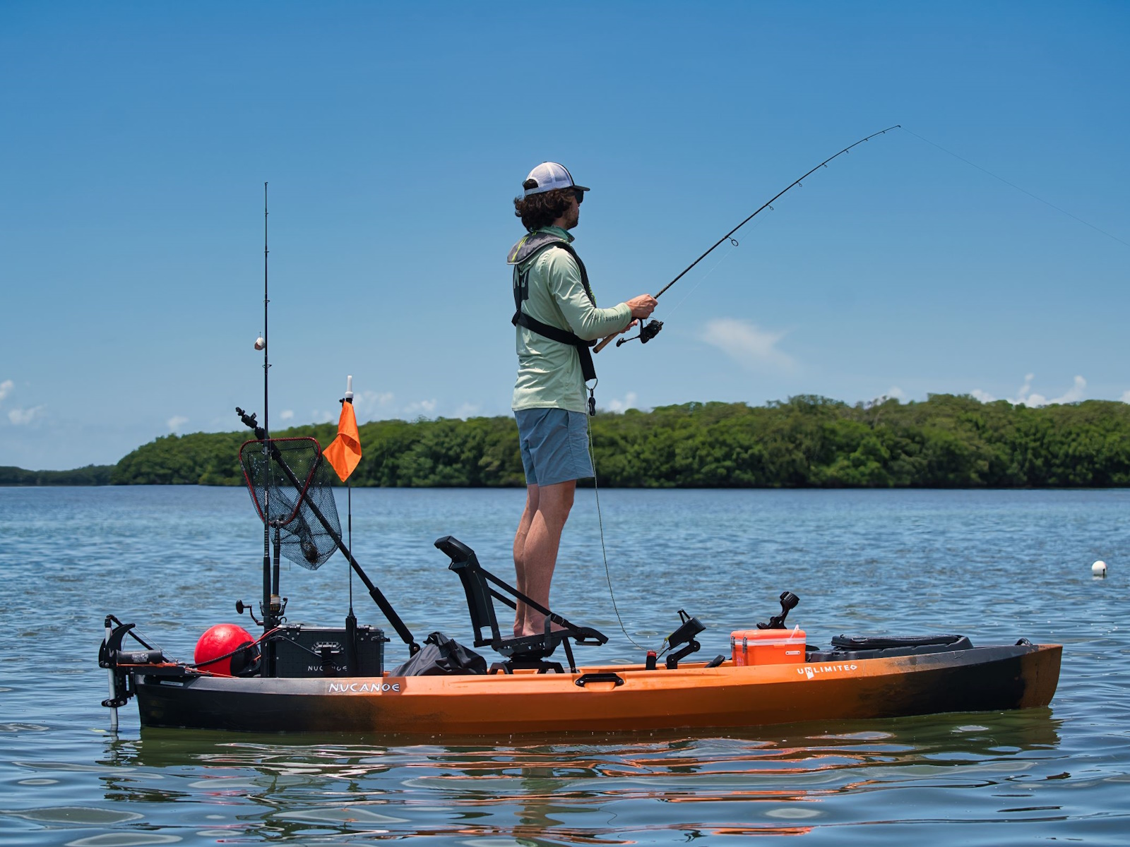 In the UNLIMITED….yes you can. This kayak was designed to blow through obstacles and give you control. A solid open deck with unlimited rig-ability. A remarkable hull design that is fast AND stable, prepared for any waters. Plug & Play ready for pedals, power, and electronics. The UNLIMITED takes you to the future of kayak fishing & hunting.
