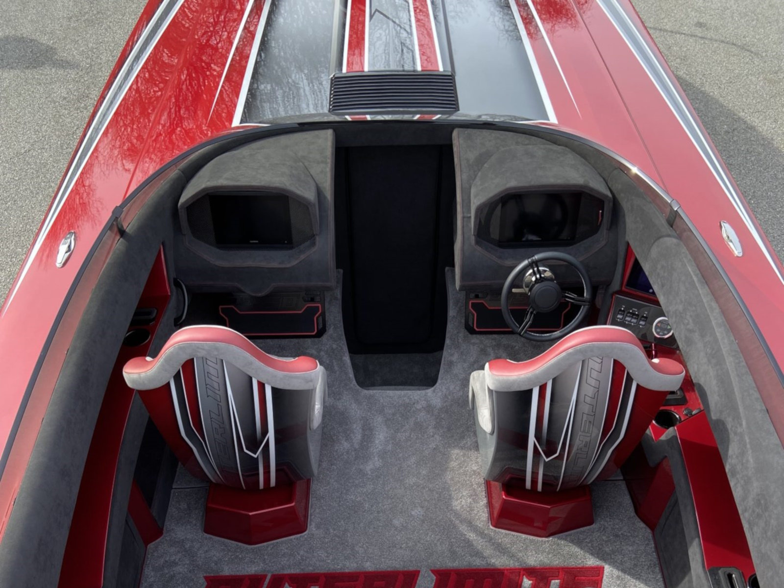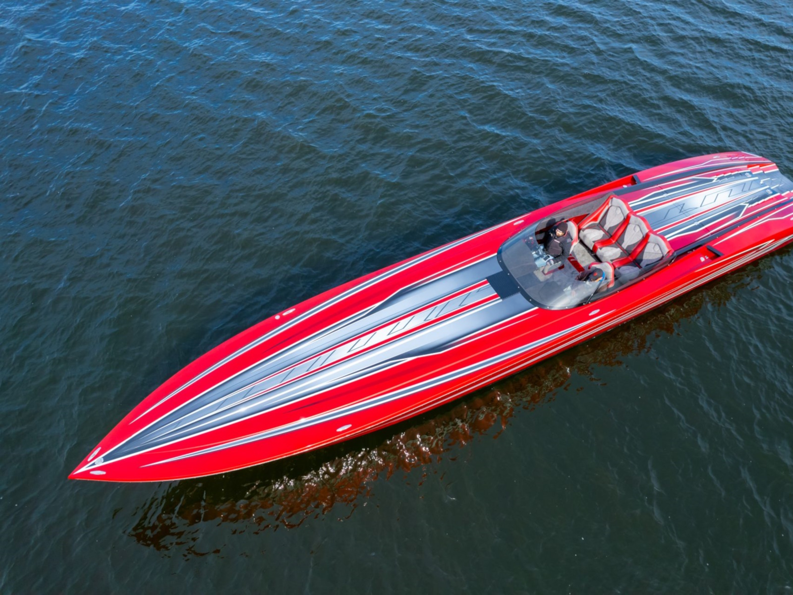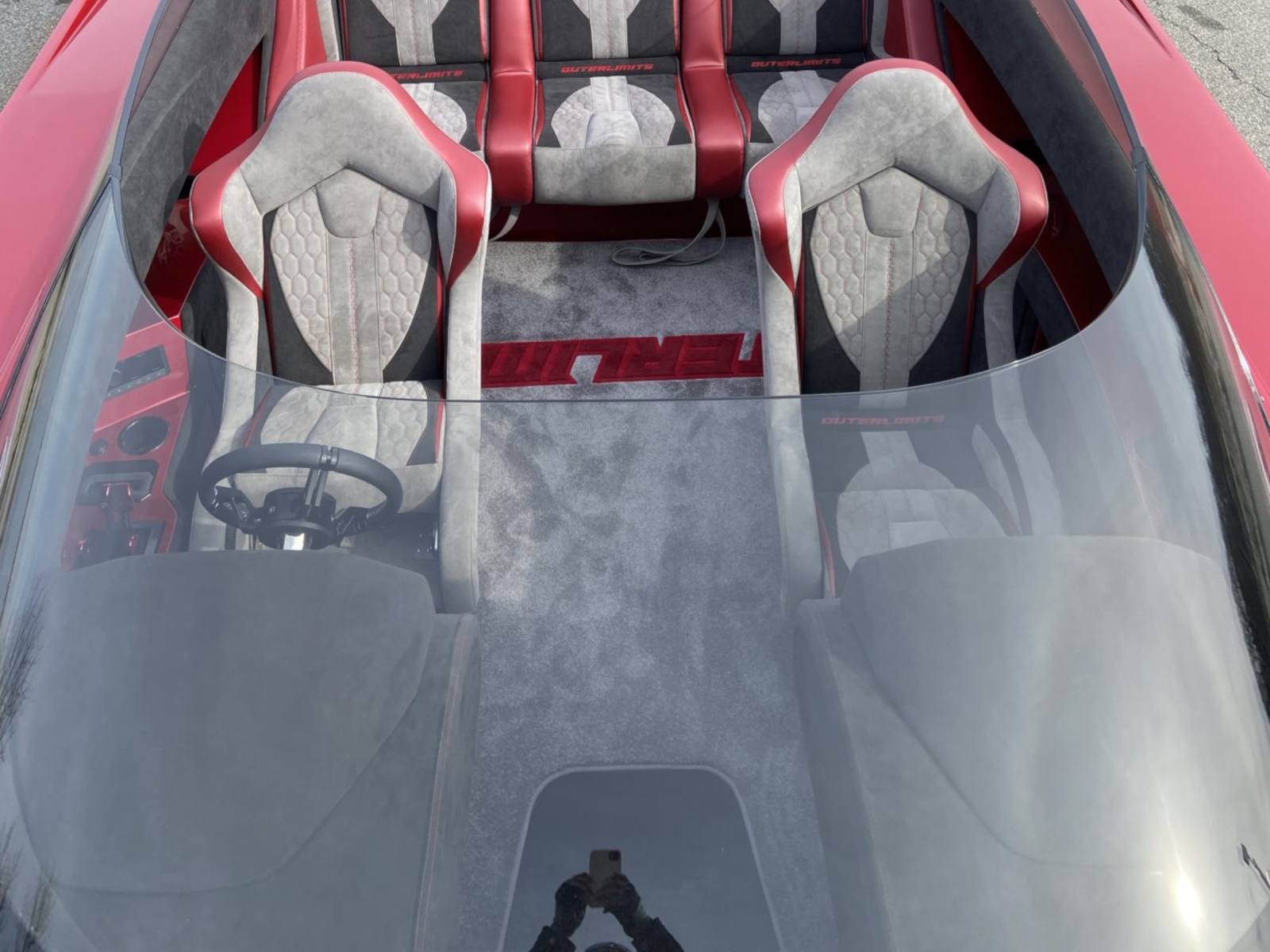 The SV50 is a pure bred sit down Vee Bottom. Utilizing a cut down hull and sharp edgy lines the SV50 is a sight to see. The SV50 utilizes Outerlimits state of the art 5 step hull which provides you unsurpassed performance. Whether going 140+mph or carving turns, the SV50 is the ultimate sit down mono hull. The SV50 comes standard with Outerlimits proven composite core, E-glass/Epoxy Layup with options for full Carbon Fiber. The cockpit, with front bucket seats and a plush rear bench gives you everything you need to safely run fast. A ½ cabin is standard providing ample locker storage and two lounge seats to relax out of the sun. With a full wrap around windshield, occupants are protected from the wind. The bilge is neat and clean providing the best rigging in the industry. If you want the ultimate sit down poker run machine, look no further than the SV50.