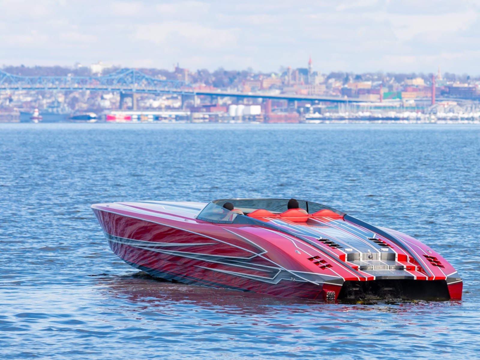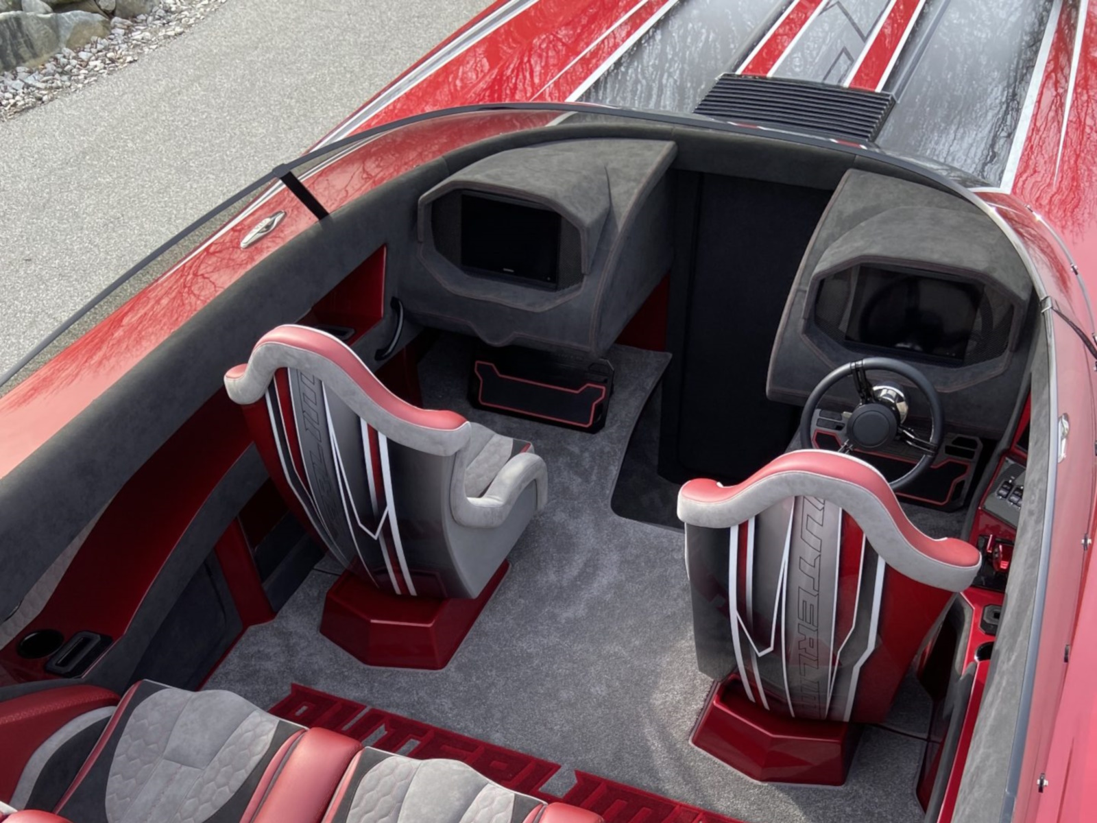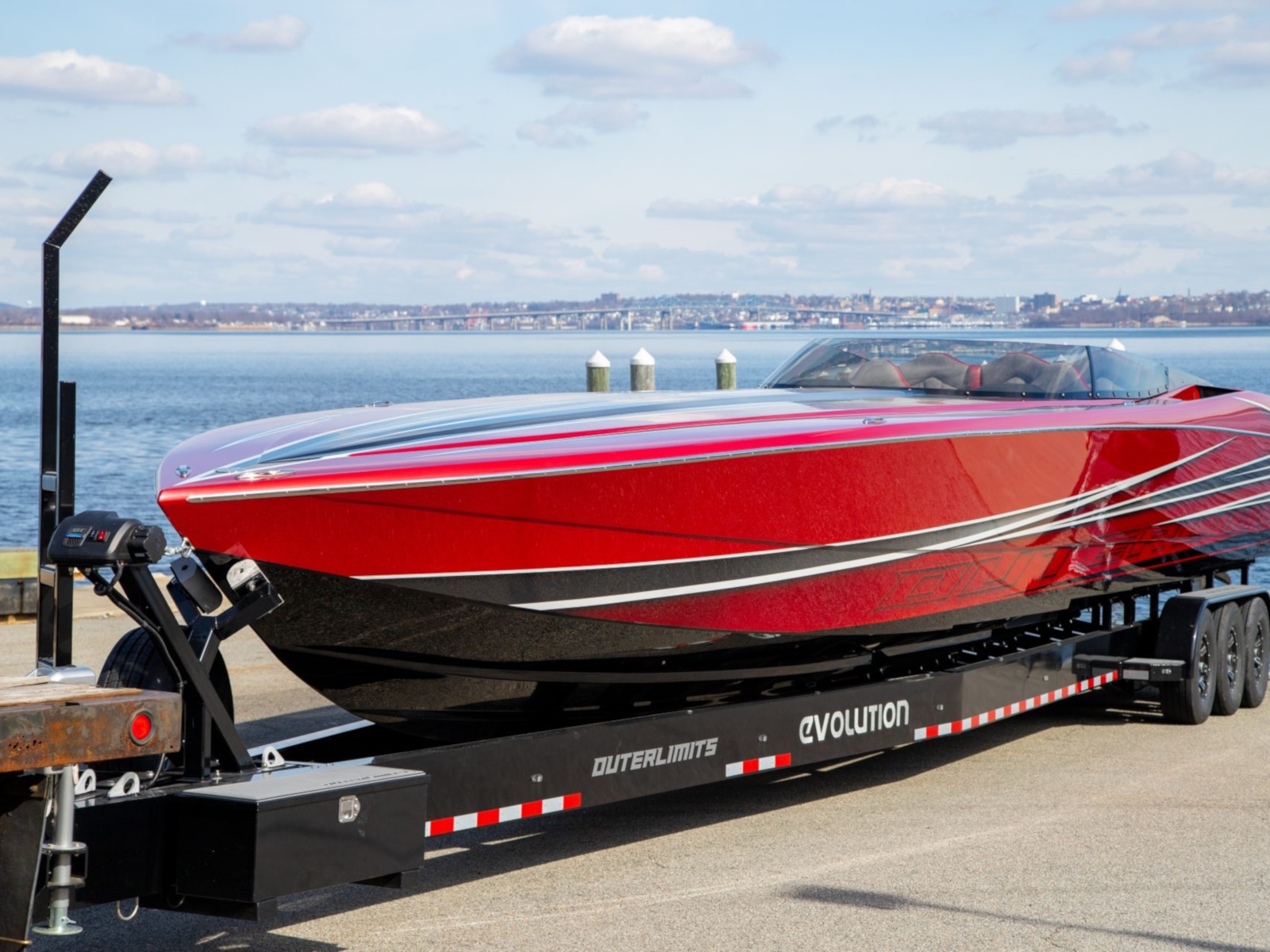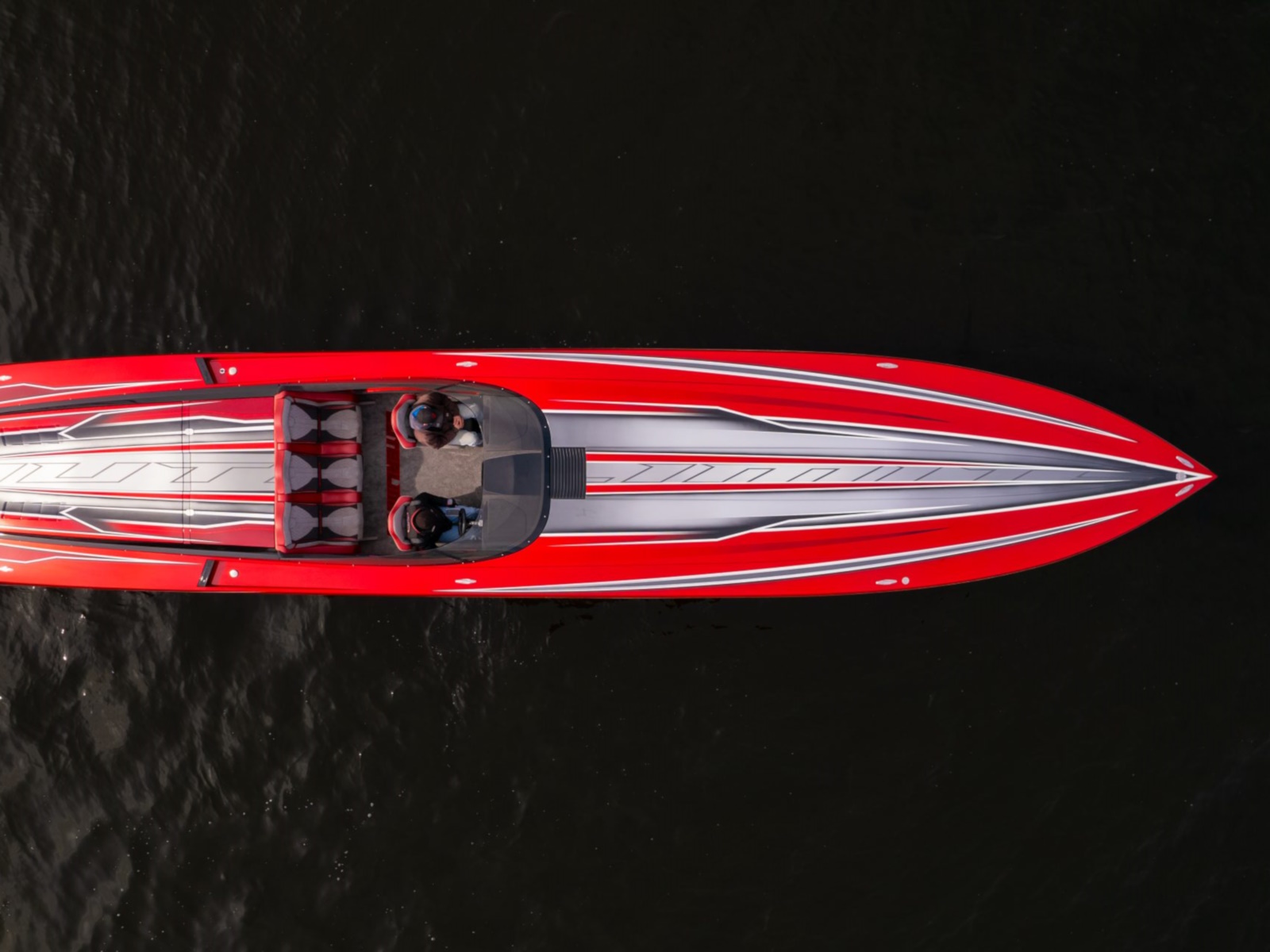 The SV50 is a pure bred sit down Vee Bottom. Utilizing a cut down hull and sharp edgy lines the SV50 is a sight to see. The SV50 utilizes Outerlimits state of the art 5 step hull which provides you unsurpassed performance. Whether going 140+mph or carving turns, the SV50 is the ultimate sit down mono hull. The SV50 comes standard with Outerlimits proven composite core, E-glass/Epoxy Layup with options for full Carbon Fiber. The cockpit, with front bucket seats and a plush rear bench gives you everything you need to safely run fast. A ½ cabin is standard providing ample locker storage and two lounge seats to relax out of the sun. With a full wrap around windshield, occupants are protected from the wind. The bilge is neat and clean providing the best rigging in the industry. If you want the ultimate sit down poker run machine, look no further than the SV50.