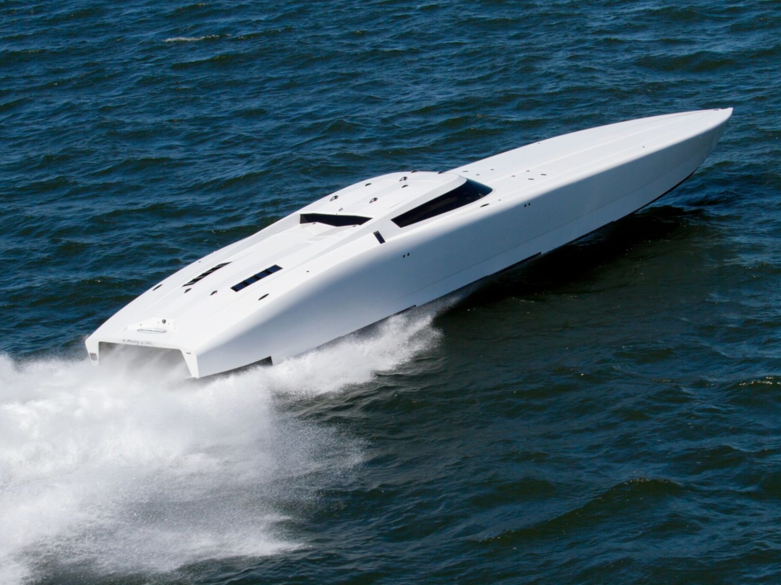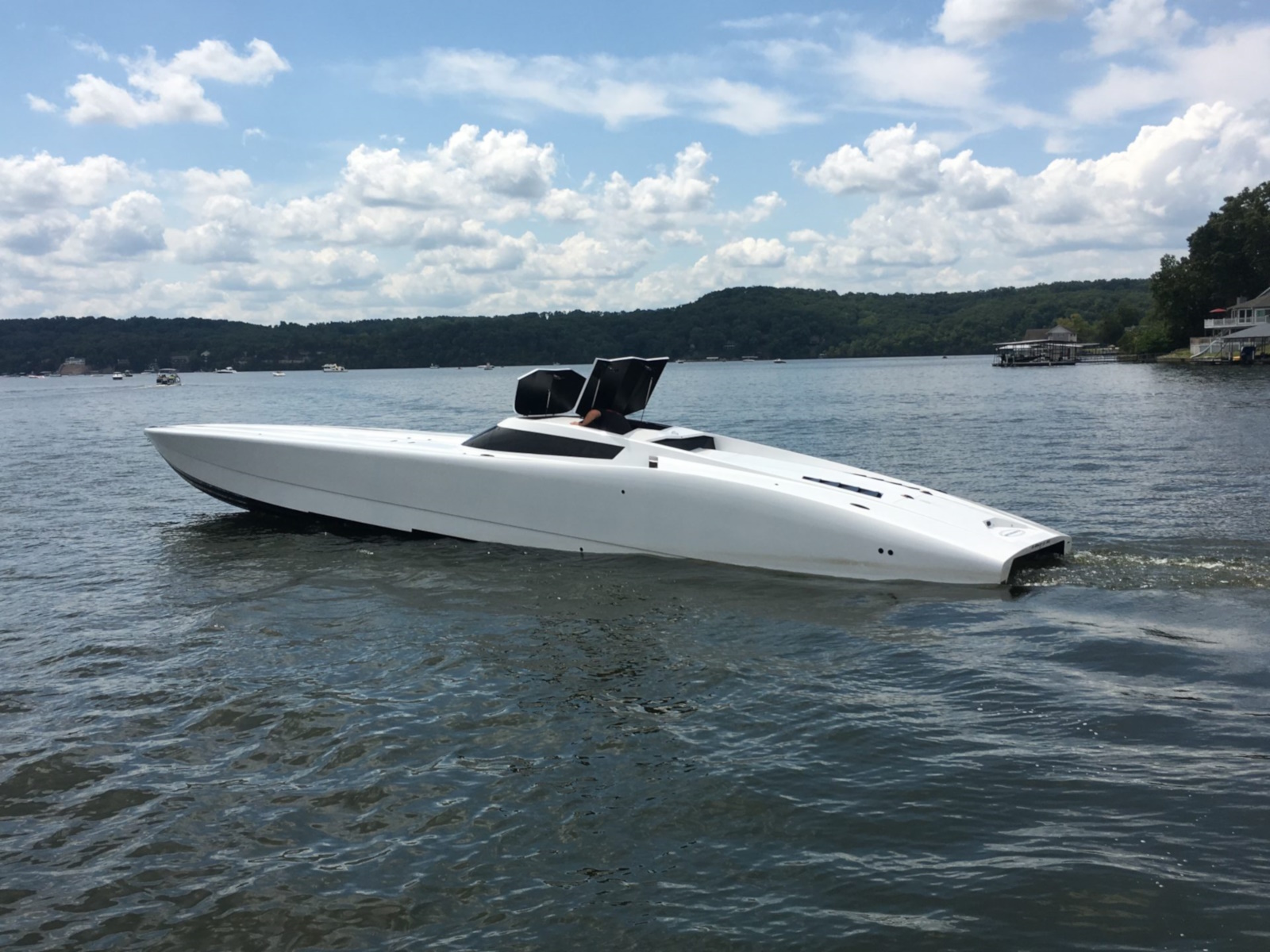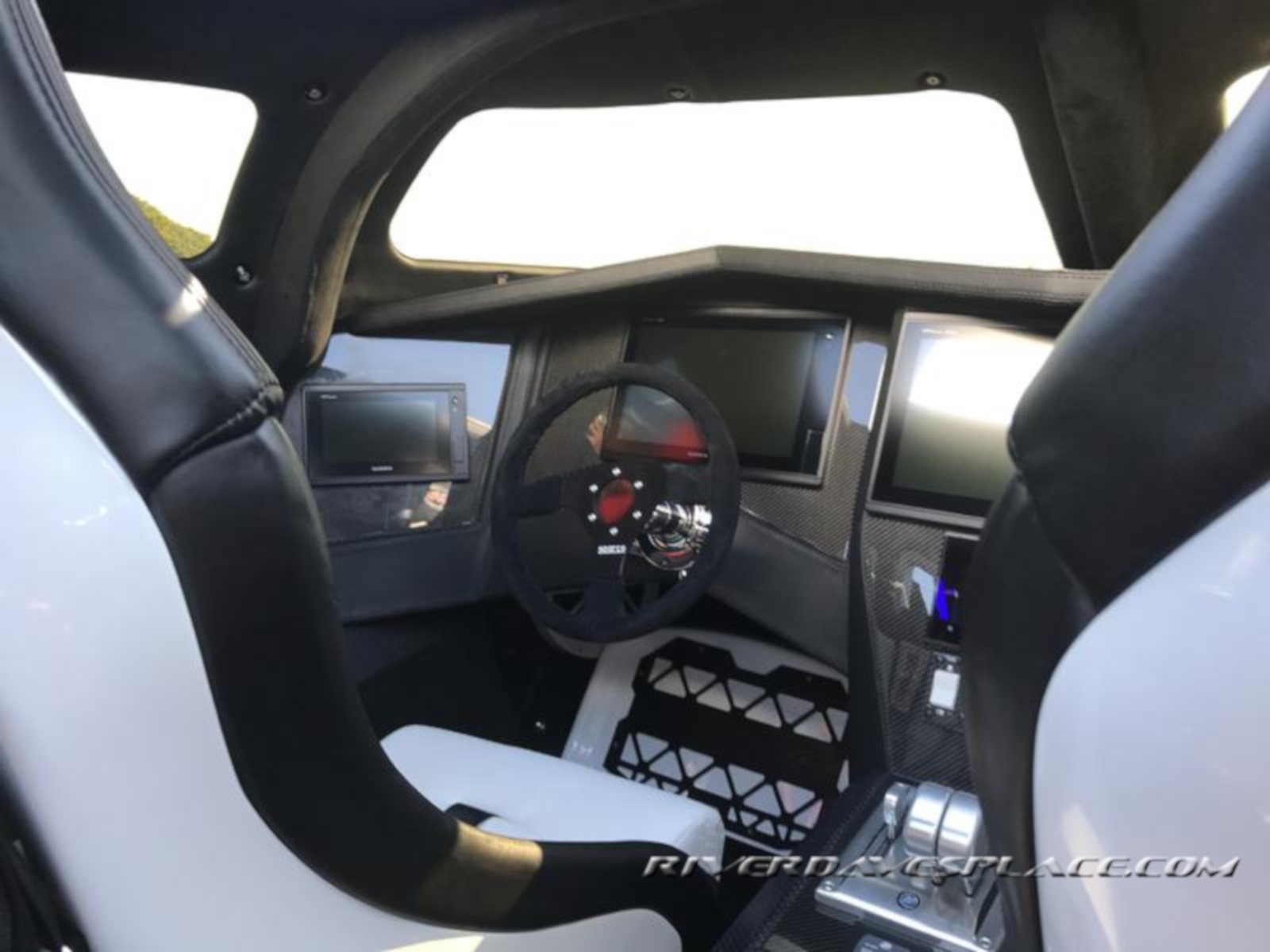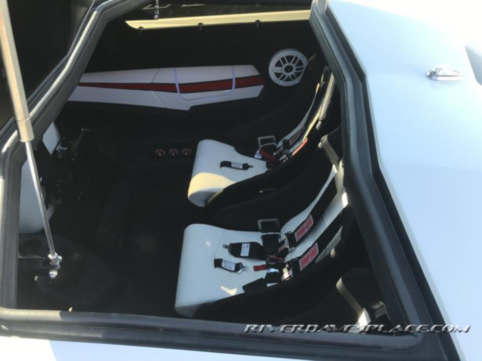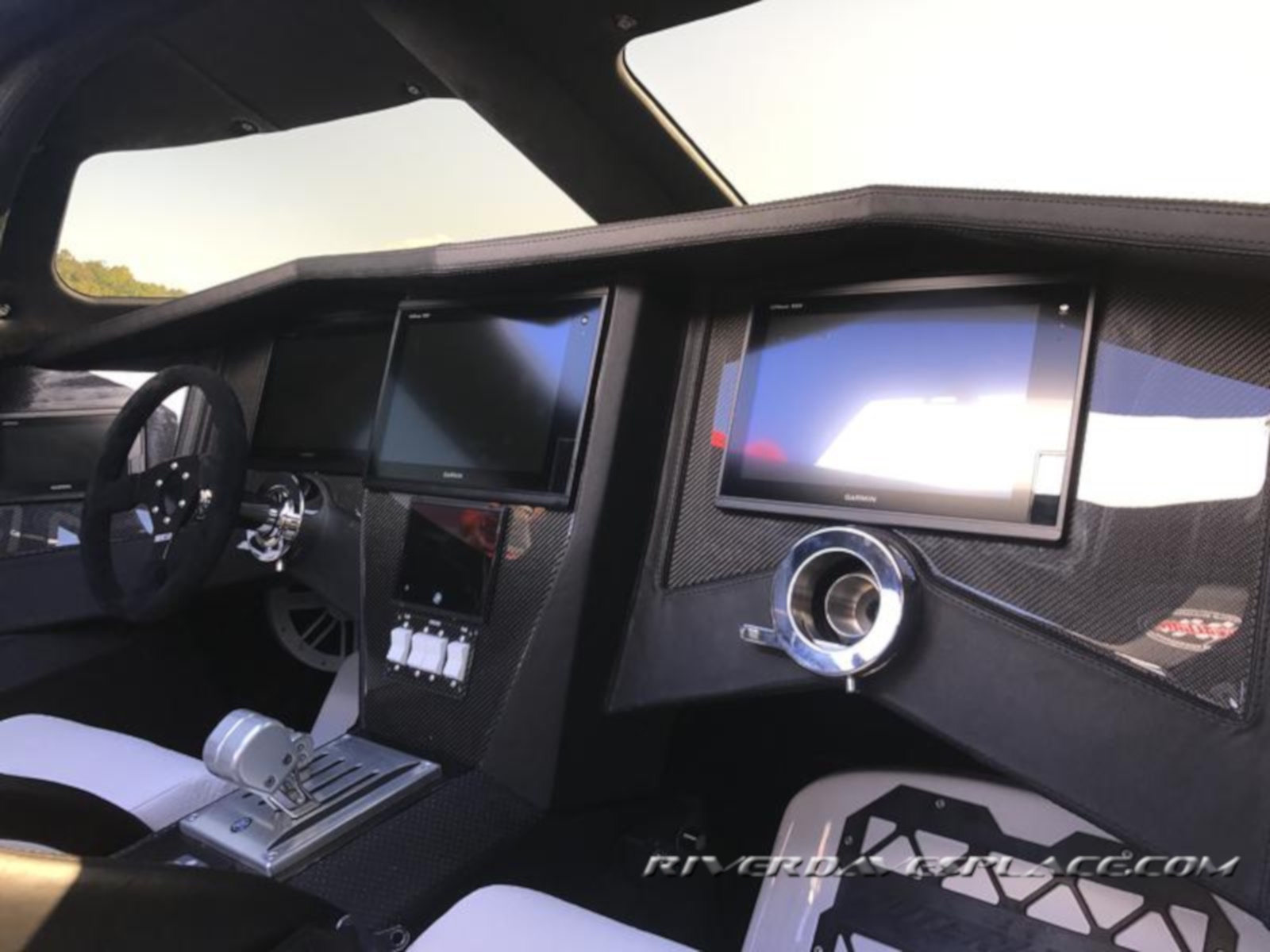 The SVX-50 is a purebred sit down, Canopy beast. The SVX-50 utilizes the same 5-step bottom design as the SV50 but with a full Carbon Fiber Canopy. The SVX-50 incorporates a 5 person fully air-conditioned cockpit and while maintaining sleek lines and unsurpassed performance. The cockpit incorporates adjustable front buckets, a plush rear seat, Leather Wrapped Dash, multiple Garmin GPS, Electric battery Switches, Billet Footrests and more. The SVX has unmatched styling to make you stand out wherever you go. If you want the best, we build the best. Dominate the next poker run in the SVX50!!