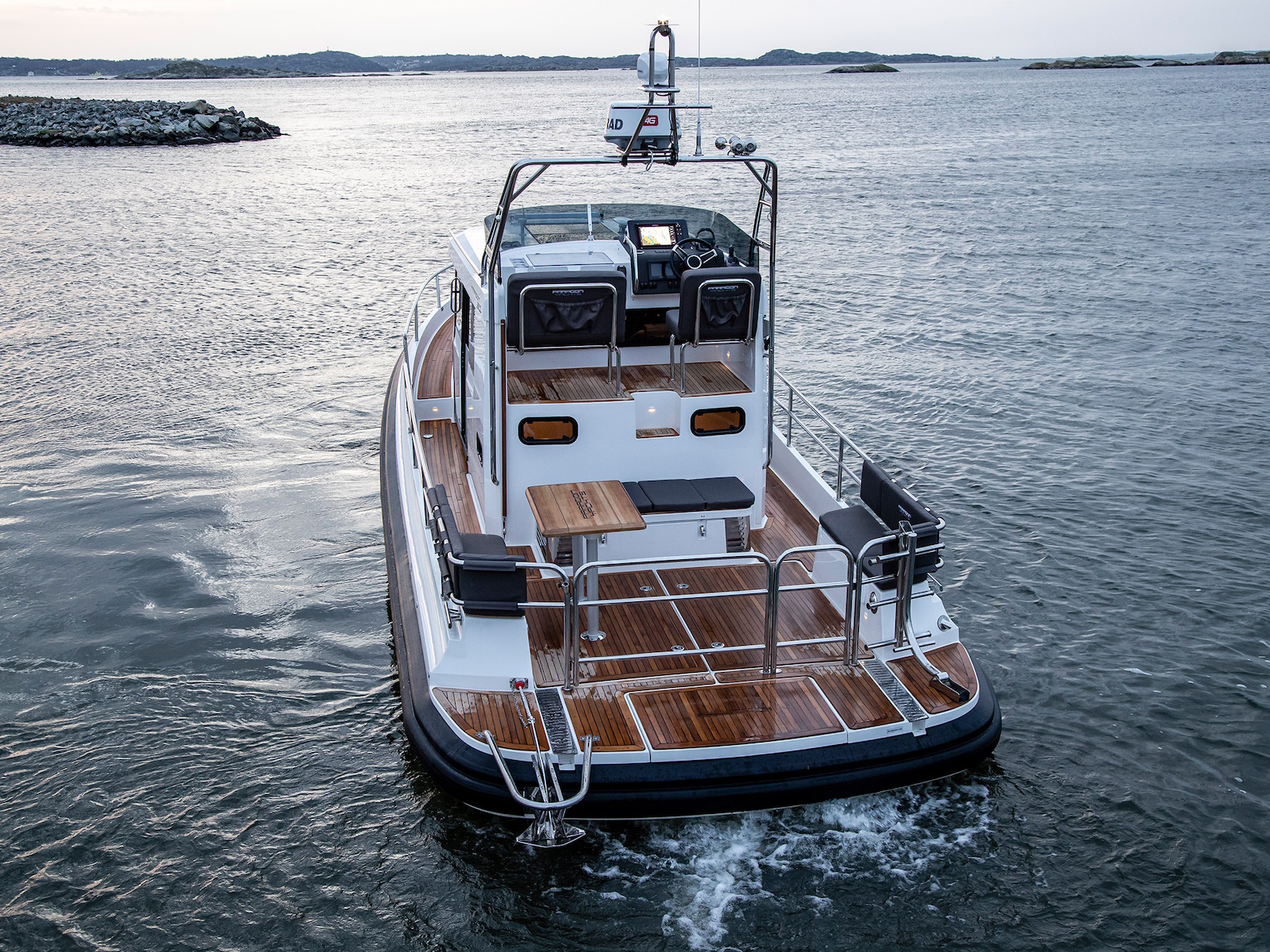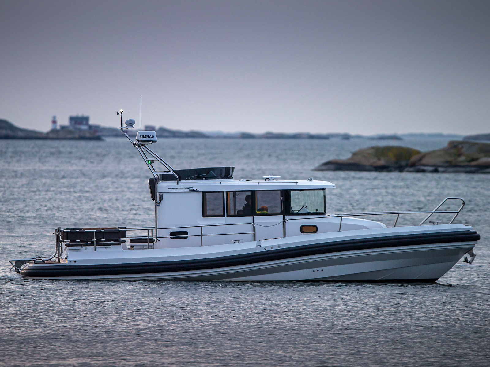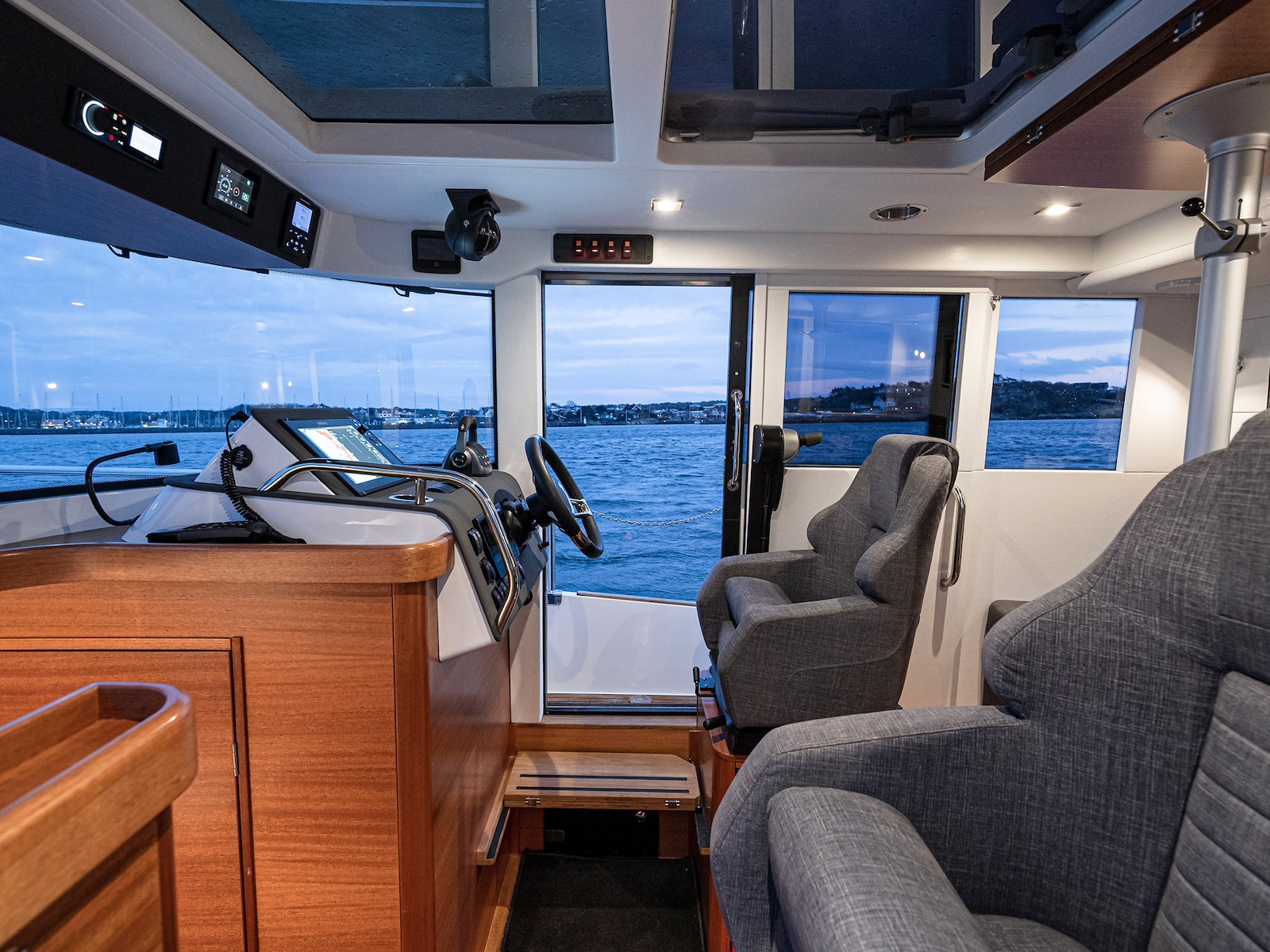 Longer, stronger and more hard wearing. The new 31 Flybridge has been remodelled into a super solid all year round commuter built to withstand the toughest conditions. The Paragon 31 Flybridge is intended for the serious boater who seek an uncompromising boat for all year-round use. It can be seen by her capacity to carry more powerful engines, has more room for tools, system installations and safety equipment. The most noticeable external difference is the heavy-duty rubber fender list which now runs along the entire boat and the extra length.