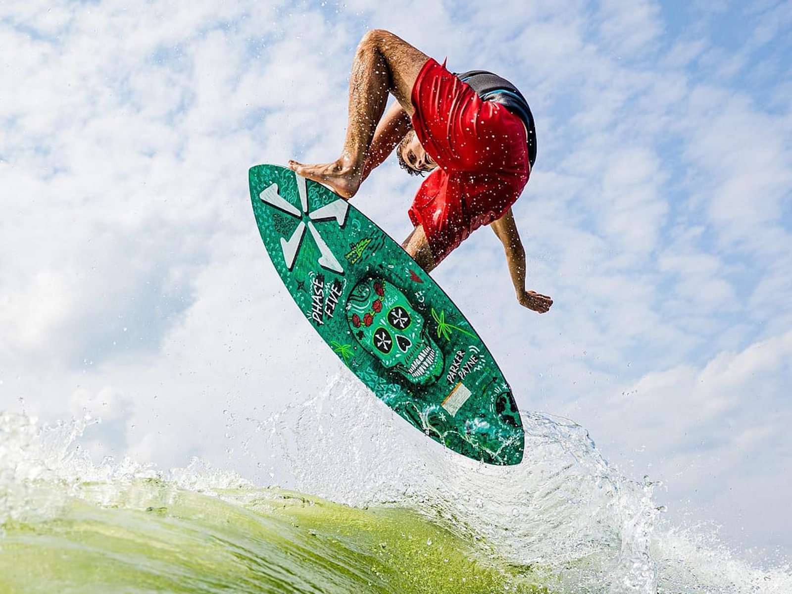 The Phase Five Matrix Wakesurfer is an advanced board delivering unrivaled performance. Adopted by many professional riders on the team, the Matrix is sealed and approved to meet the highest expectations. The Matrix is made with a thinner core and boxy rails for ultimate POP and responsiveness. The symmetrical outline rides incredibly well backwards while the subtle V-Spline bottom contours generate trick demanding speed and sensitivity. It includes an added carbon stringer for next level pop, and is constructed with Hybrid Carbon™ material to take a beating.. The Matrix is built with a single fin setup and loaded with our 1” Skim Fin. The Matrix Payne Pro features a unique bottom graphic that Parker Payne dreamed up. No specific design or construction features differentiate the Payne Pro from the Matrix.