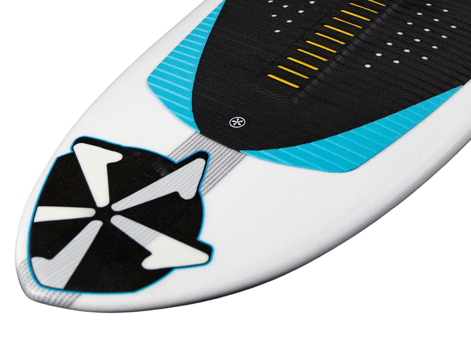Flightlite V2 Pro Select is our surf style construction for ultimate performance. It is now our lightest build with a 20% weight reduction. This is a PERFORMANCE build designed to get the most out of the surf shape and provide riders with ultimate “feel”. The layup schedule features a full Innegra bottom sheet with a carbon stringer along with a full Innegra top sheet with carbon tape reinforcing the tail.
