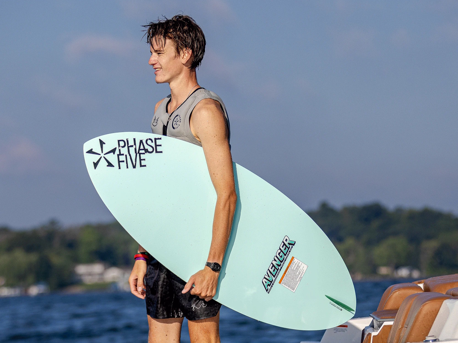 The Phase Five Avenger brings pro-level performance to riders ready to push their limits. Designed with a symmetrical outline for riding in both directions, it’s perfect for mastering tricks and advancing your skills. Featuring full deck EVA traction, the Avenger ensures unbeatable grip without compromise. Its single fin setup paired with a 2” Skim Fin delivers sharp control and responsiveness. Step up your game and take the next step in your wakesurfing journey with the Avenger.