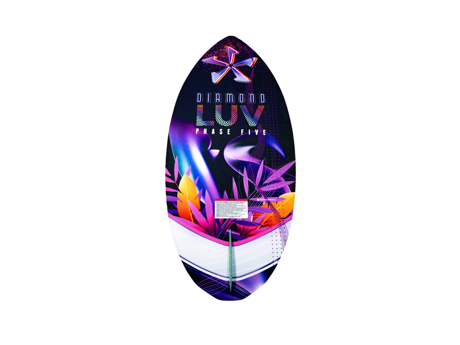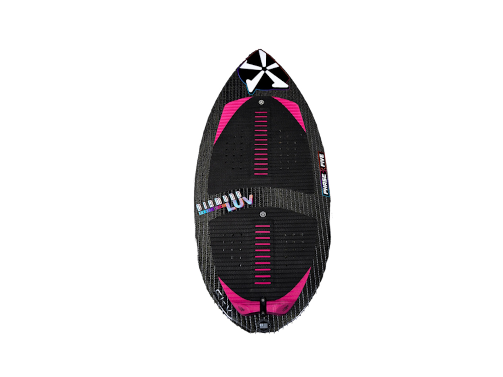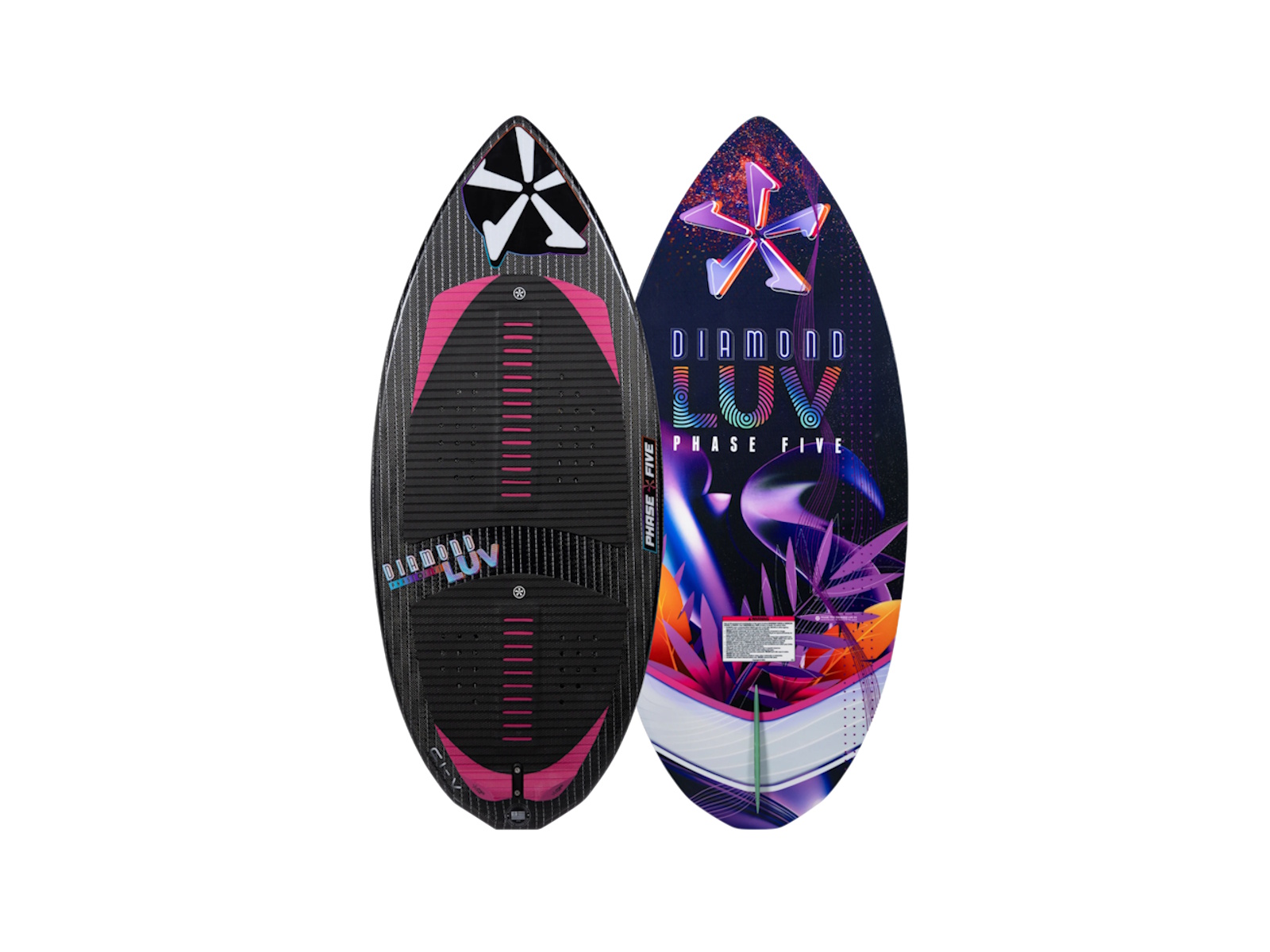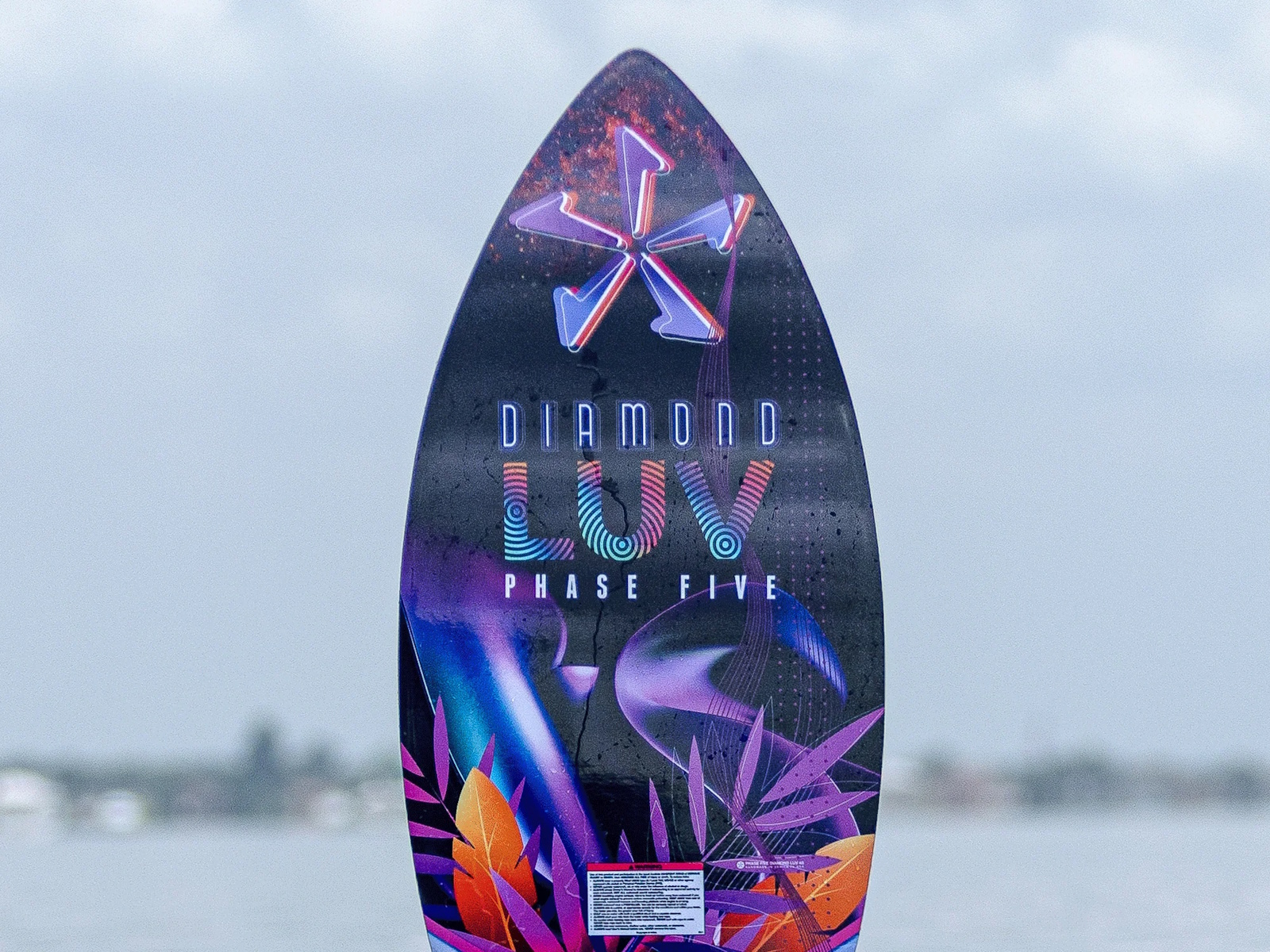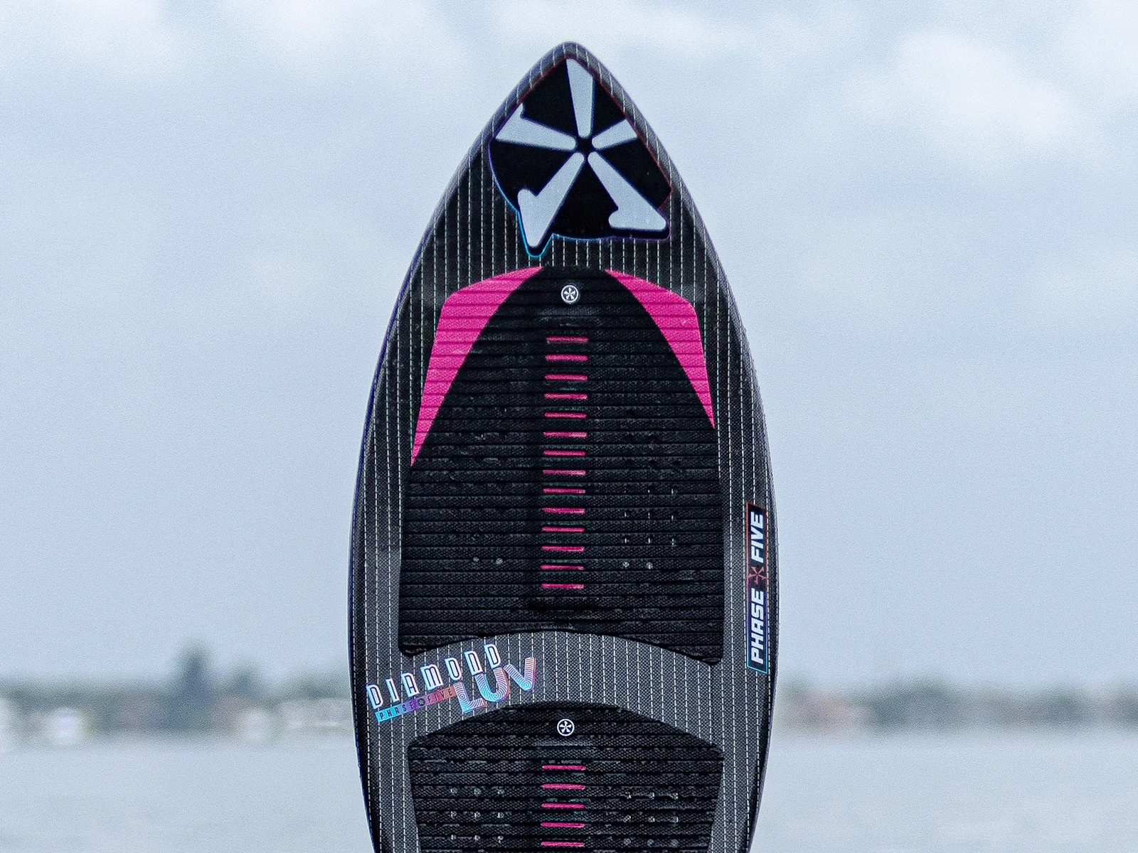 The Phase Five Diamond Luv Wakesurfer is the high-end answer to the ladies pushing their limits. The Luv is the same shape as the Diamond CL in a scaled down version made with the best materials. The diamond shaped tail maintains speed and generates tons of pop for boosting airs. The pulled in nose is forgiving and won't sink under water easily while carving or landing tricks. The Luv is built with our eye-catching CI-V™ (Carbon/Innegra Vertical Weave) material, and a single fin setup loaded with our 1” Skim Fin. This is tough LUV.