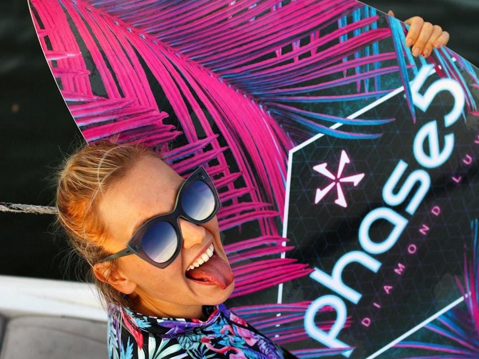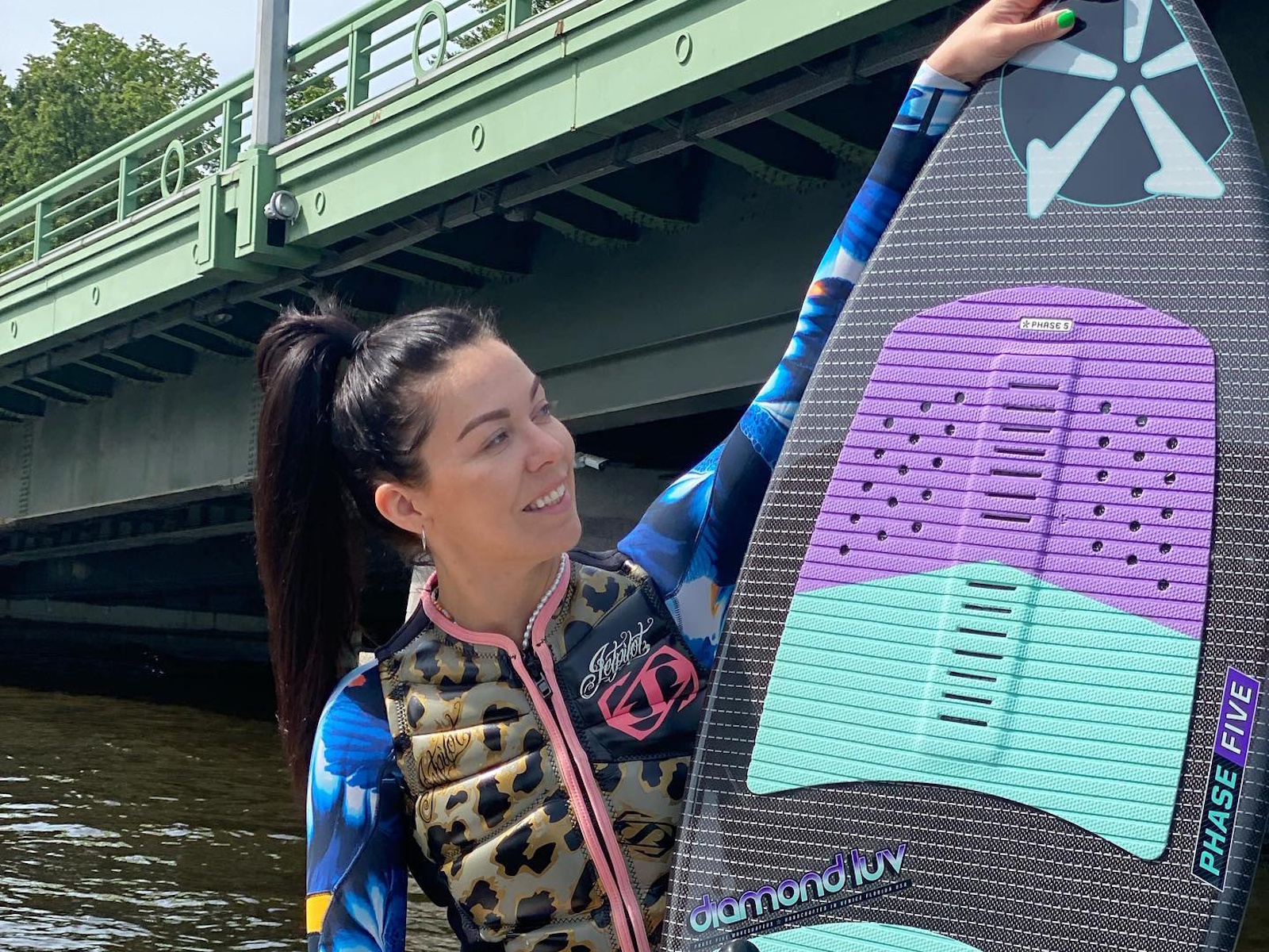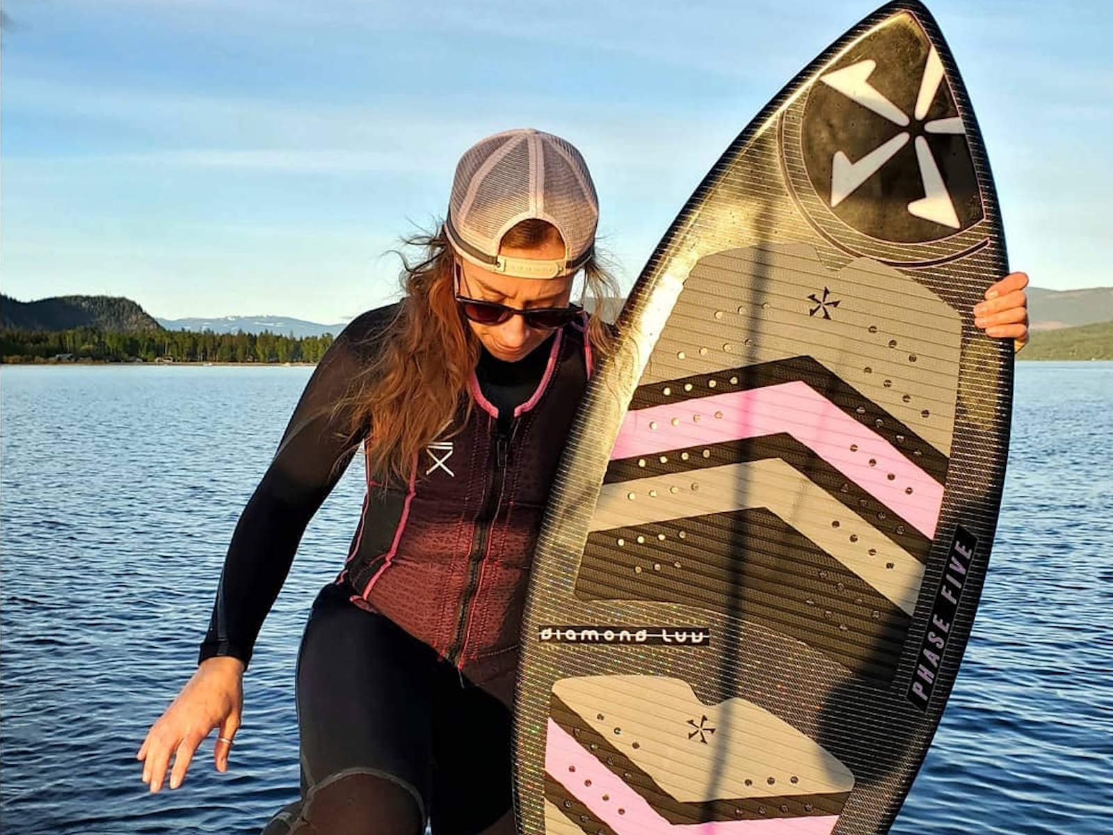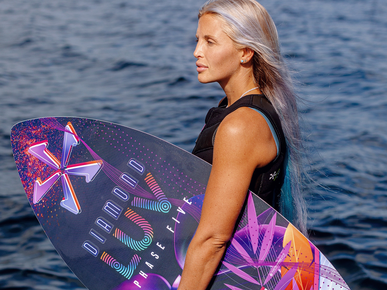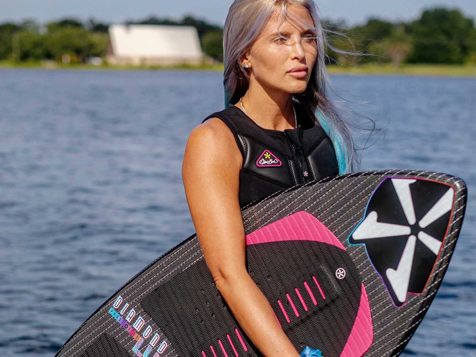 The Phase Five Diamond Luv Wakesurfer is the high-end answer to the ladies pushing their limits. The Luv is the same shape as the Diamond CL in a scaled down version made with the best materials. The diamond shaped tail maintains speed and generates tons of pop for boosting airs. The pulled in nose is forgiving and won't sink under water easily while carving or landing tricks. The Luv is built with our eye-catching CI-V™ (Carbon/Innegra Vertical Weave) material, and a single fin setup loaded with our 1” Skim Fin. This is tough LUV.