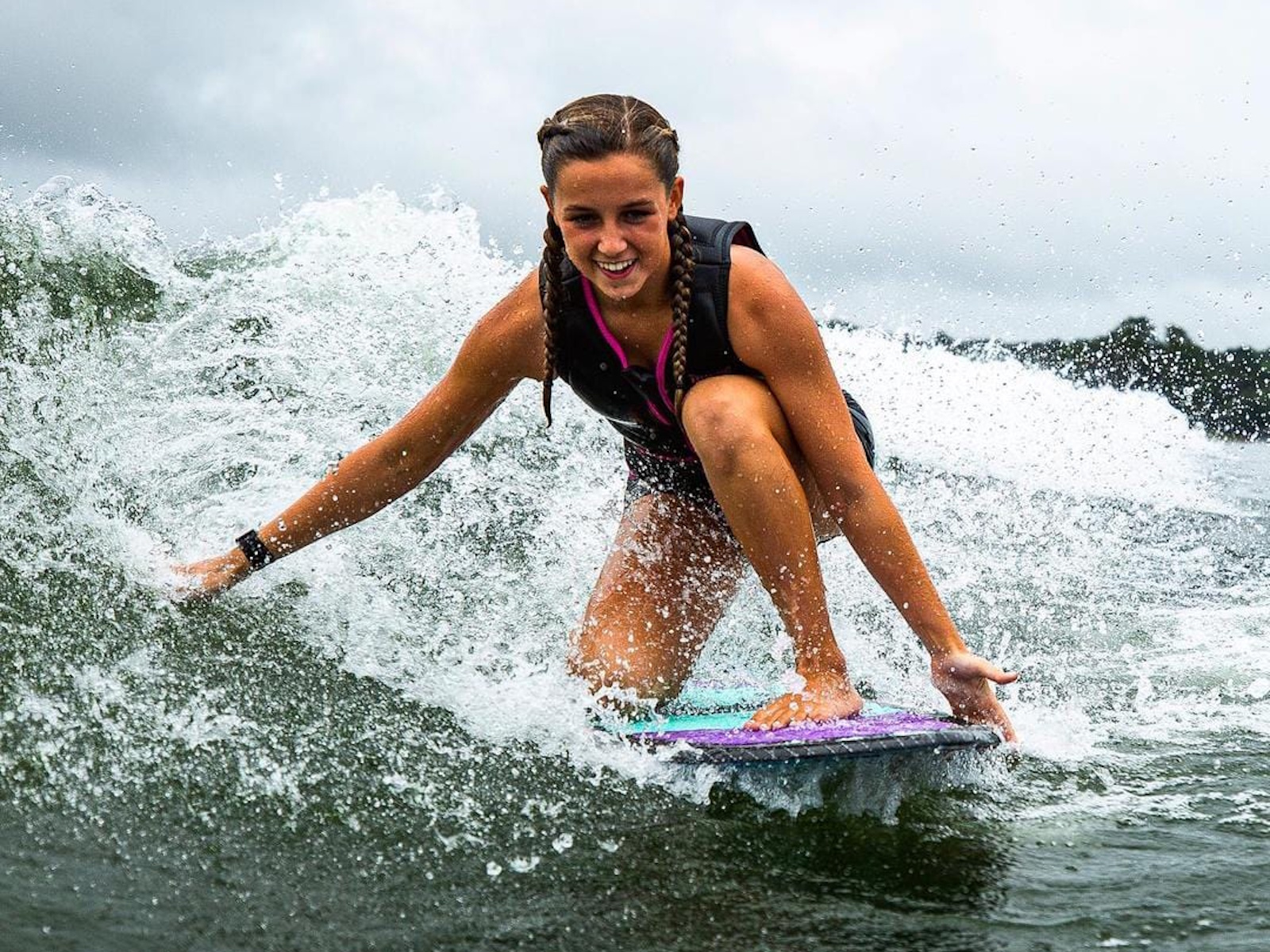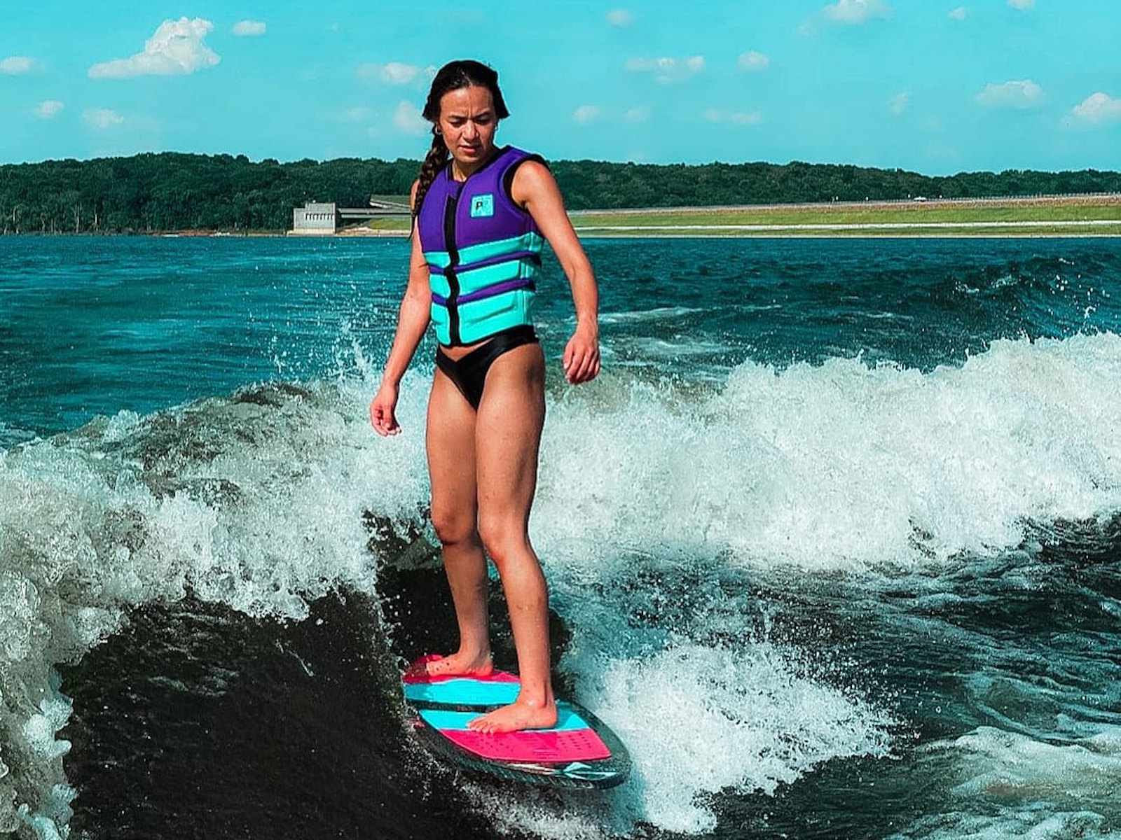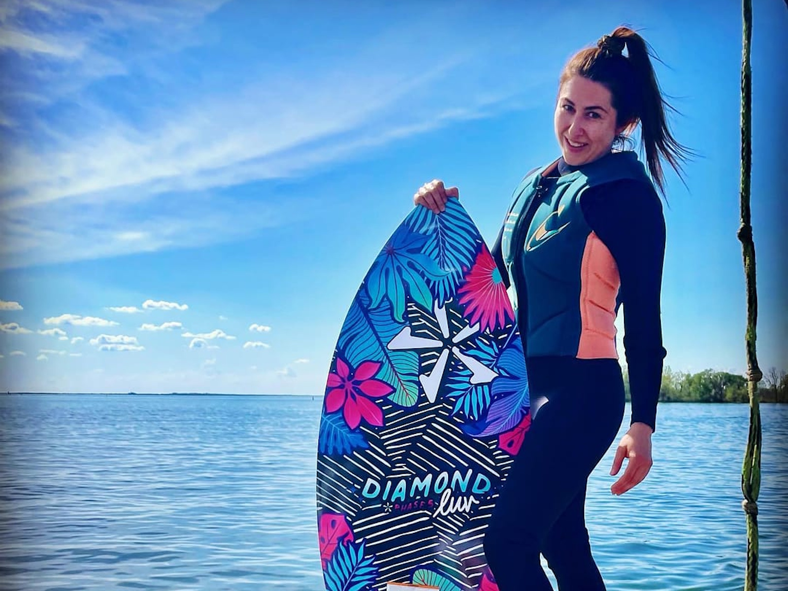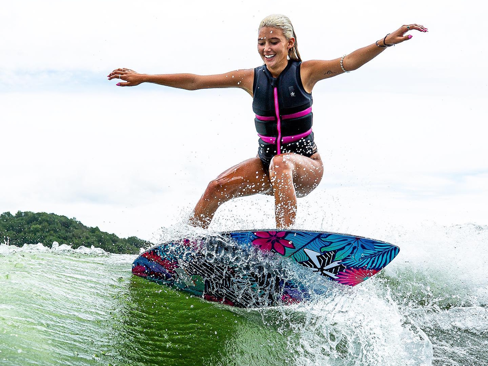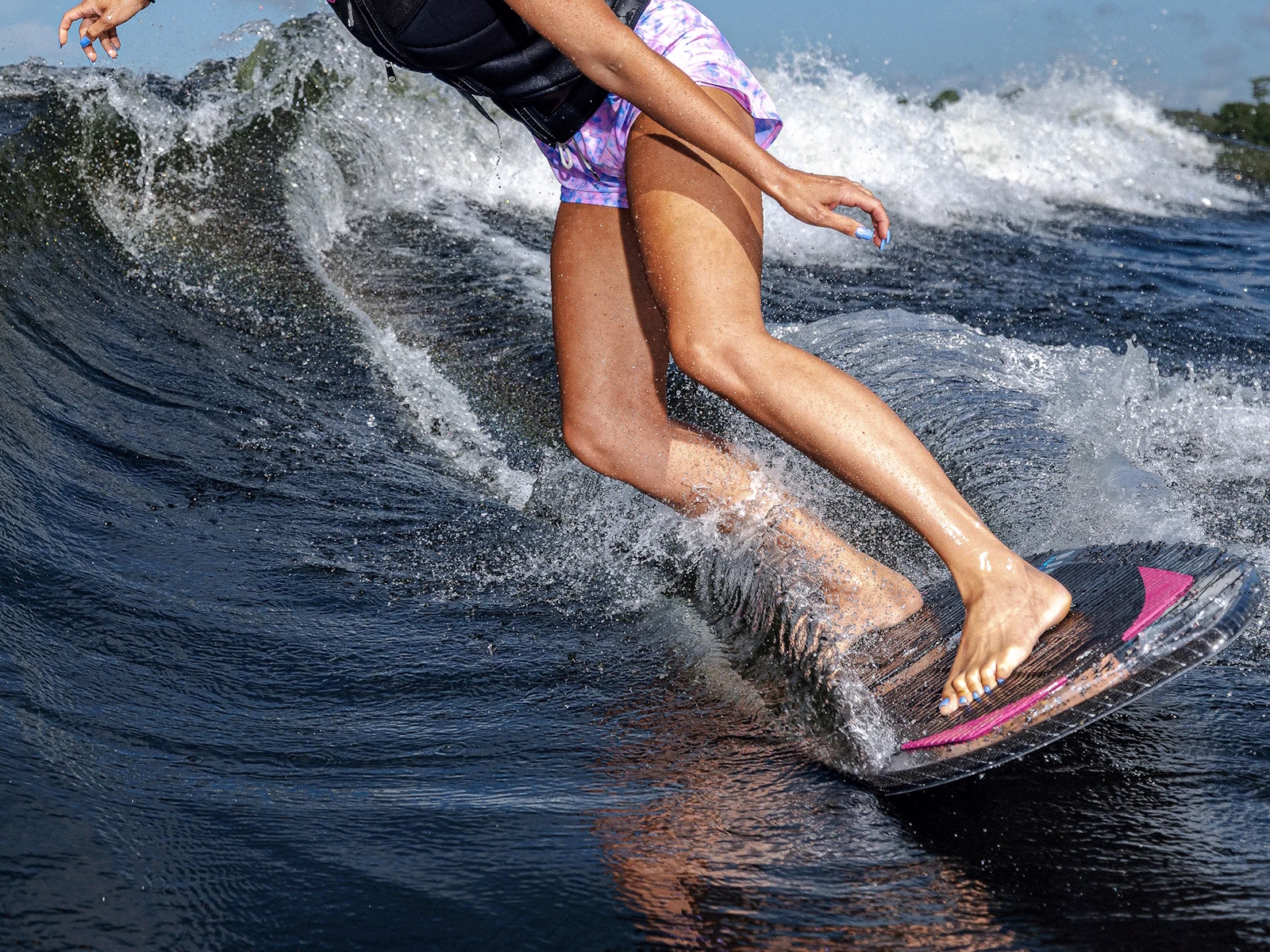 The Phase Five Diamond Luv Wakesurfer is the high-end answer to the ladies pushing their limits. The Luv is the same shape as the Diamond CL in a scaled down version made with the best materials. The diamond shaped tail maintains speed and generates tons of pop for boosting airs. The pulled in nose is forgiving and won't sink under water easily while carving or landing tricks. The Luv is built with our eye-catching CI-V™ (Carbon/Innegra Vertical Weave) material, and a single fin setup loaded with our 1” Skim Fin. This is tough LUV.