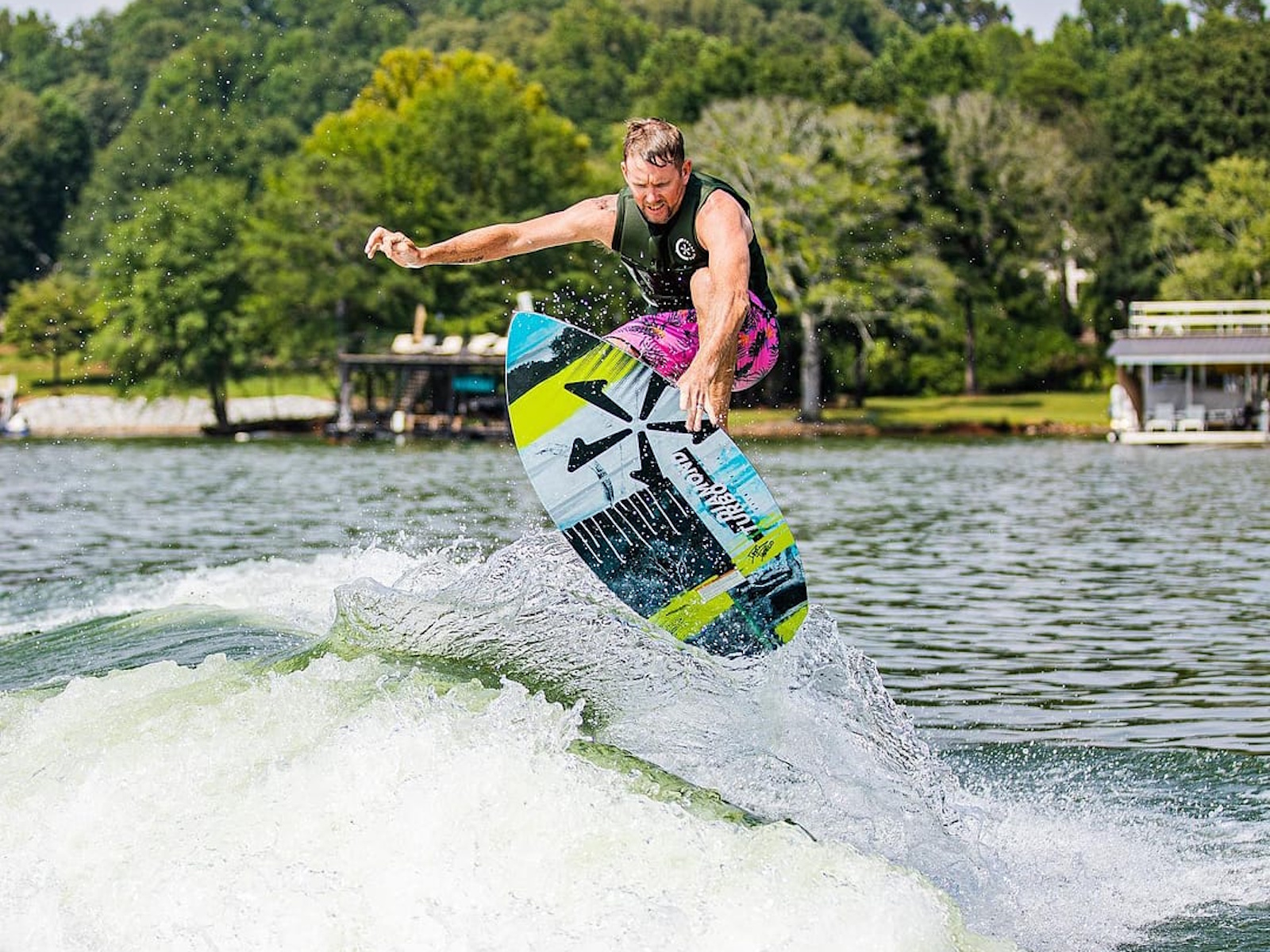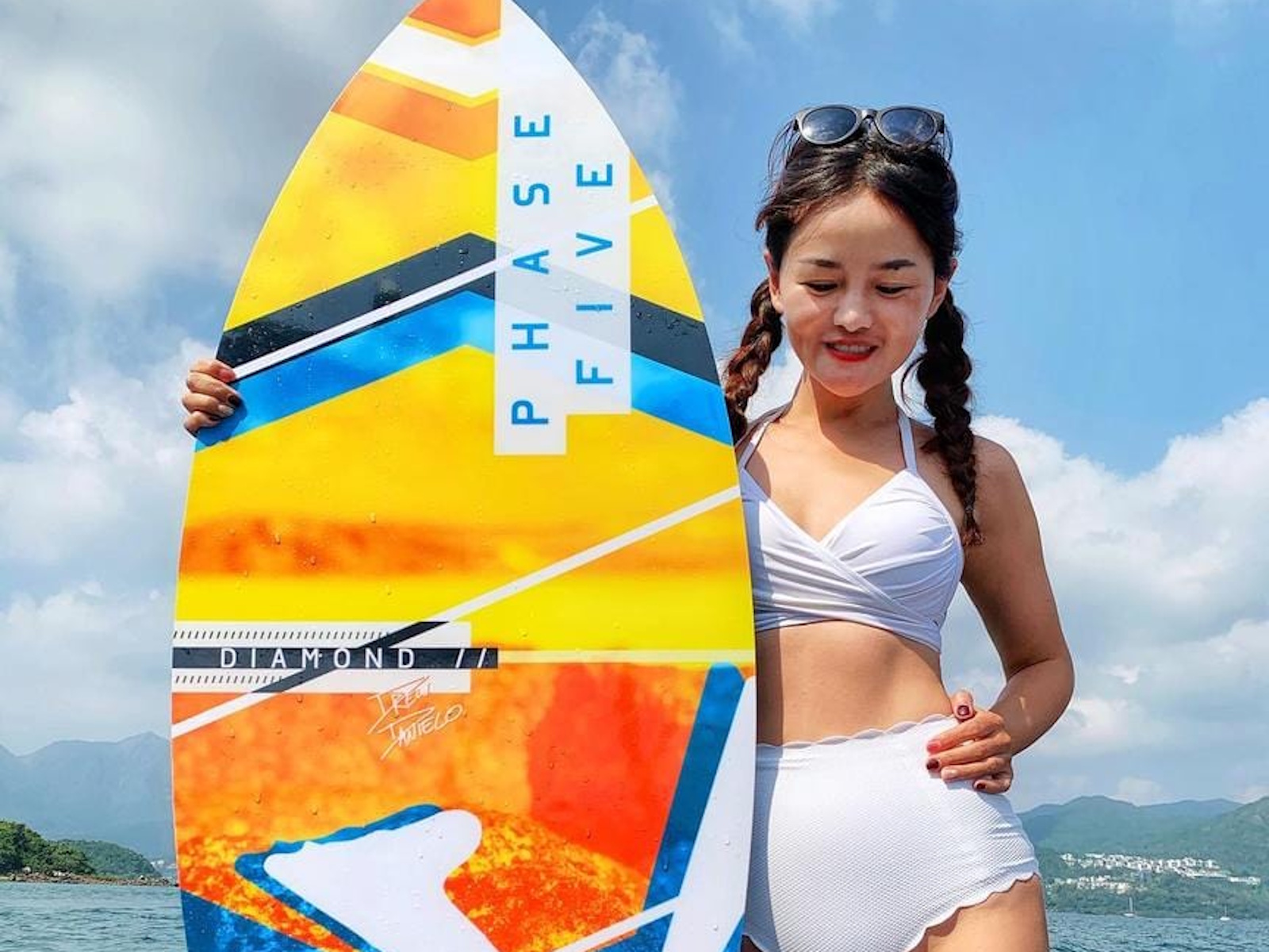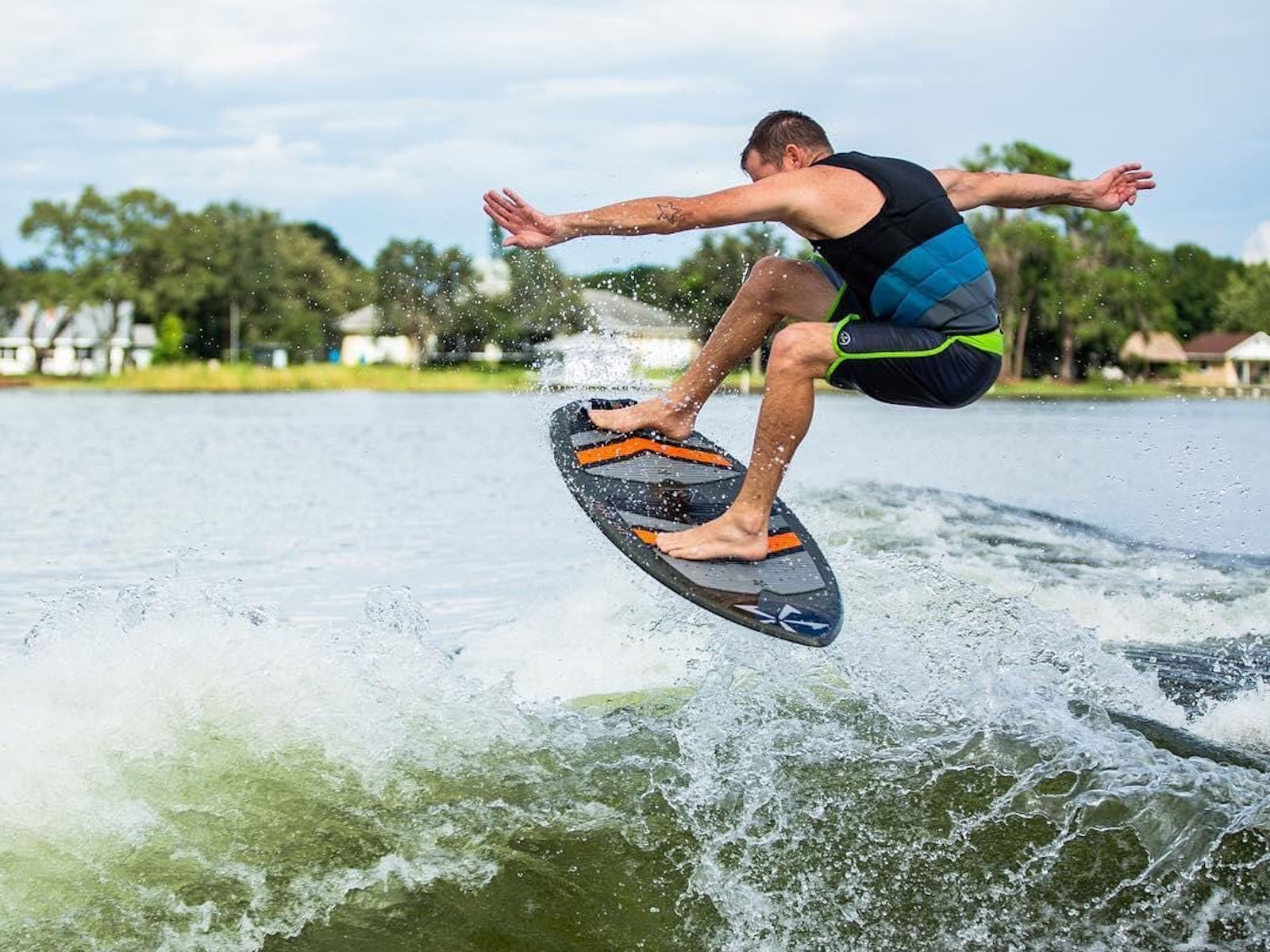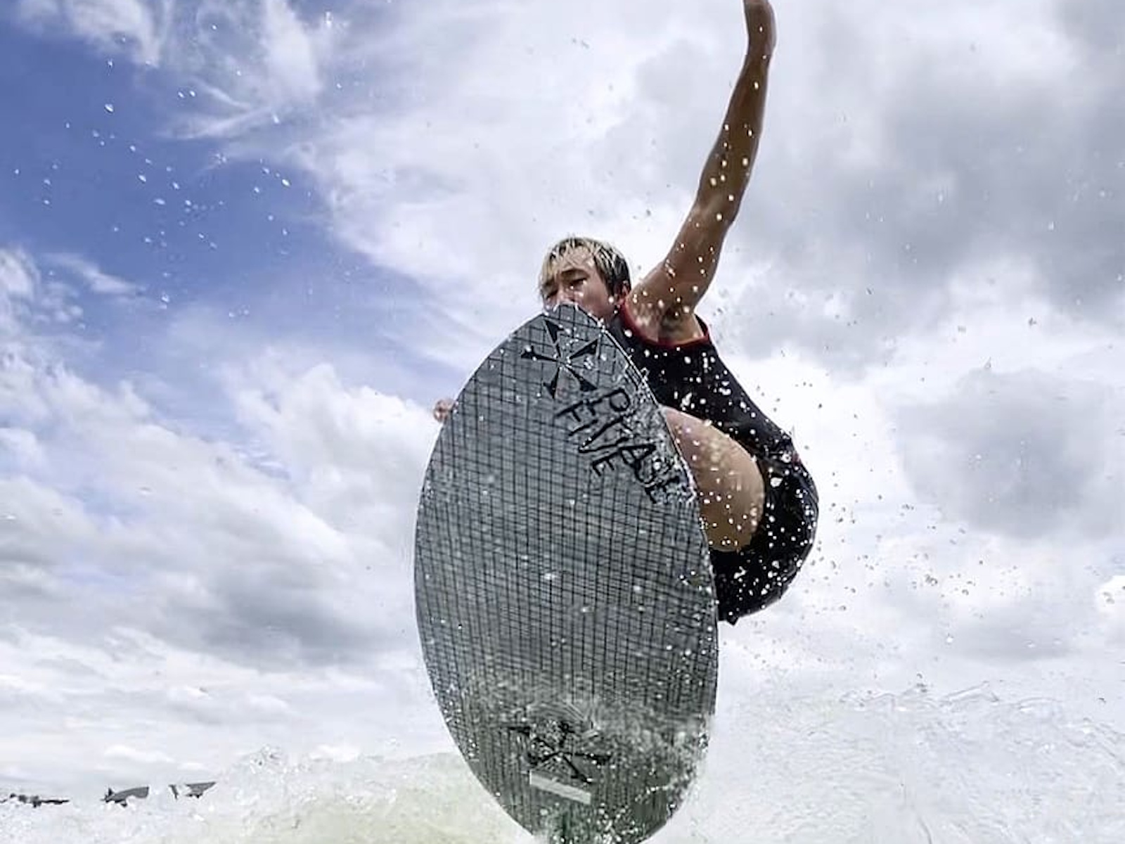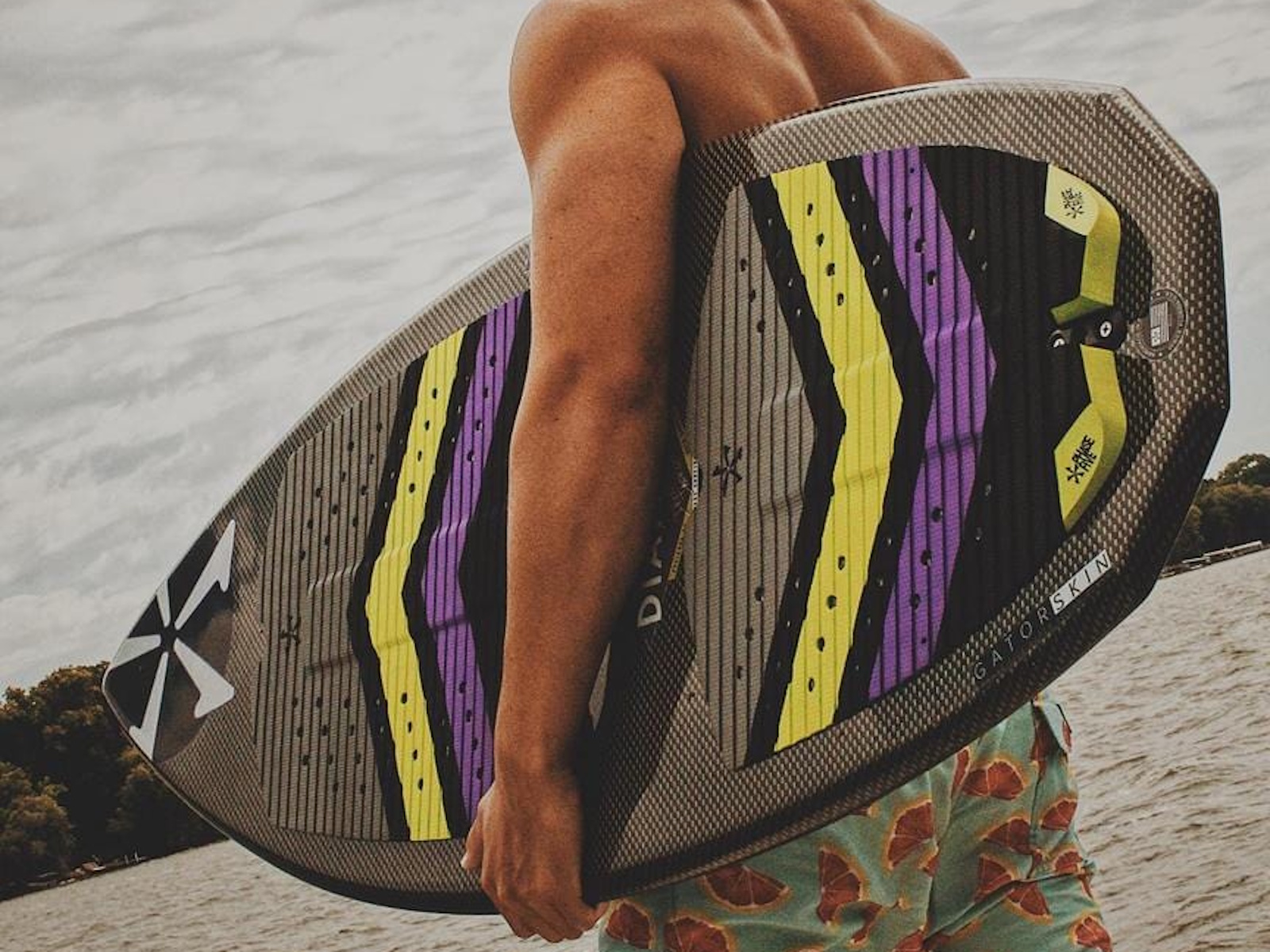 Drew Danielo wanted more pop and speed, and that is exactly what we created with the Phase Five Diamond Turbo Wakesurfer. We enhanced the original Diamond tail shape with a wider, more boxed out design. This upgraded design feature delivers experienced riders the opportunity to go big. The Turbo tail design is also the solution for large riders who need more push and surfers using smaller, less powerful waves. The Diamond Turbo is built using our unique Hybrid Carbon™ material for ultimate strength. We configured the Diamond Turbo with a three fin setup installed with our 1” Skim Fin (2” on the 57”) in the center accompanied by 1” Fakie Skim fins on the outside.