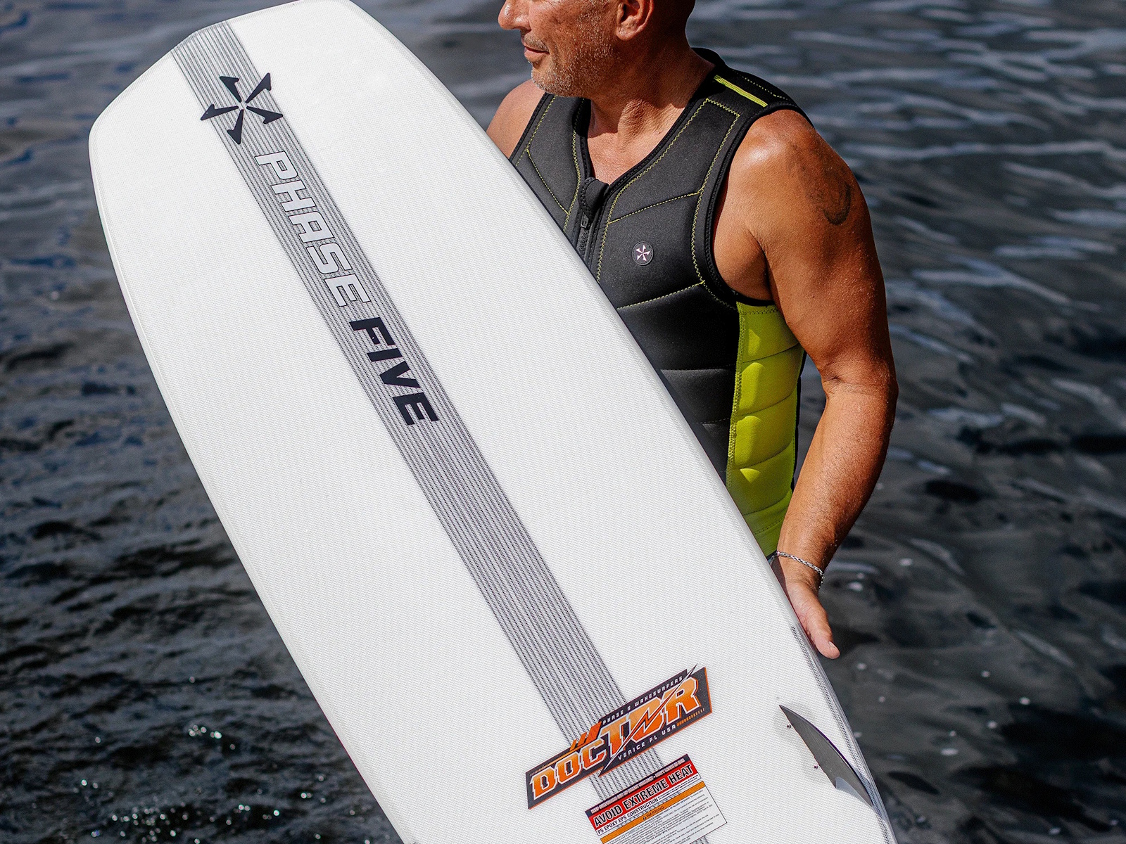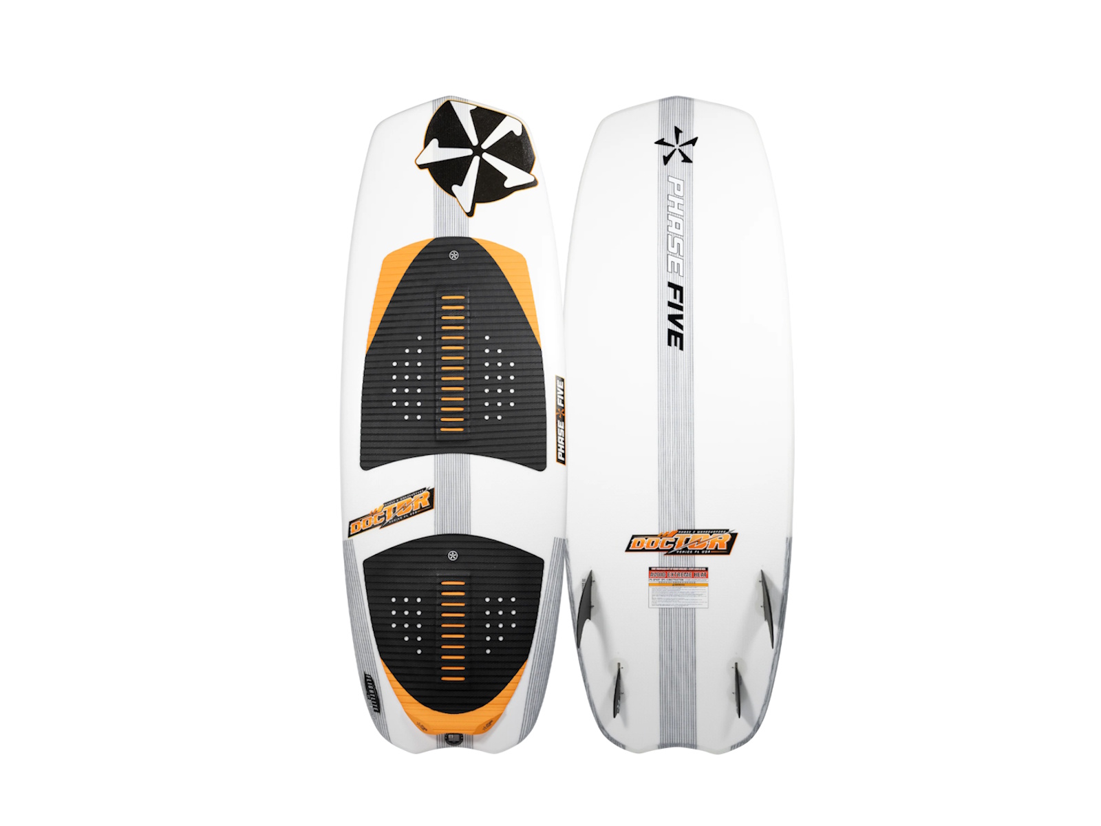 The Phase Five Doctor offers ultimate stability and board control for experienced riders. Its clean single concave bottom and rocker profile charge down the line for those who know how to generate speed and momentum to stay in the wave. The wide parallel shape offers a solid platform to learn advanced tricks quickly. The Doctor harnesses the ideal set of design features delivering ultimate forgiveness to the progressing rider. Big experienced riders will not want to miss out on the 57” and 59” options while the 200 lb. and under club will enjoy the 55” option. The Phase Five Doctor Wakesurfer is glassed with our Flightlite V2™ Pro Select layup for ultimate lightweight performance and is equipped with a Quad FCS Fusion fin setup.