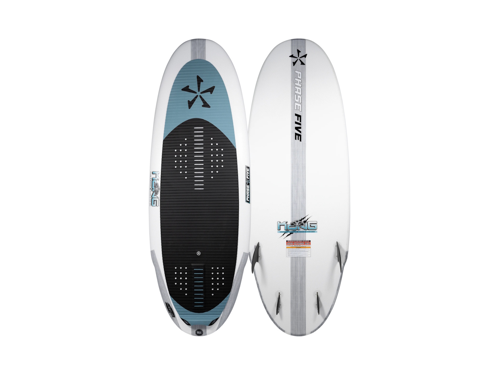 The Phase Five Kong Wakesurfer is a fun shape inspired board that accommodates a wide range of riders. Gripped with a full deck of our V2 Techno Traction the Kong is ready to surf tandem with your kids or shred solo. With tons of volume, full nose outline and a high performance rounded sting pintail do not mistake the Kong for a lame cruiser. This bad boy is built to shred and super easy to stay in the wave thanks to its speedy rocker. The Kong is glassed with our Flightlite V2™ Pro Select layup for ultimate lightweight performance. It is built with a quad FCS Fusion fin setup for optimal speed and drive.