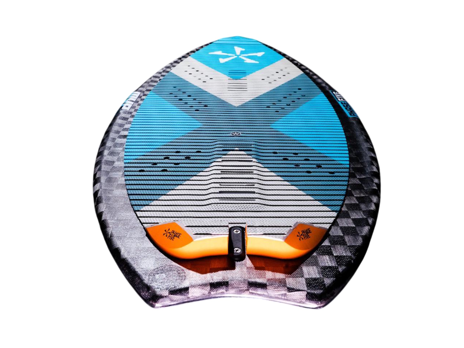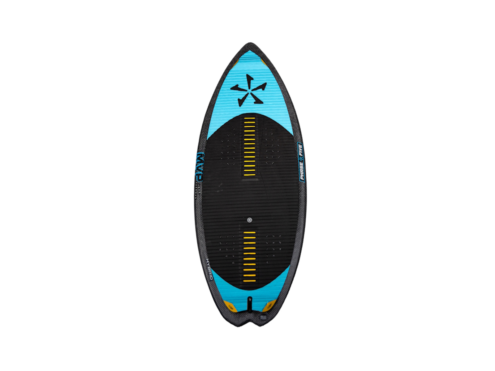 Supporting aggressive skim style riding, the Phase Five MVP Wakesurfer harnesses unique features that make it stand out! First you will notice a full deck Techno Traction V2 EVA grip setup with nose kick tail support for superior foot control. John’s idea for a kick tail in the nose was to gain more leverage to execute tricks while riding revert. The MVP has seen a re-design in 2026 to feature a full ¾” tapered core and a more aggressive skimboard outline. John felt like he needed more control due to larger waves with his MVP and the tapered core is unique in the Phase 5 lineup offering more sensitivity in the nose and tail section of the board. The bat tail design, pulled in pin nose, and V-Spline bottom contours deliver maximum speed and handling. It is made with Hybrid Carbon™ material to take a beating and built with a single fin setup loaded with our 1” Skim Fin.