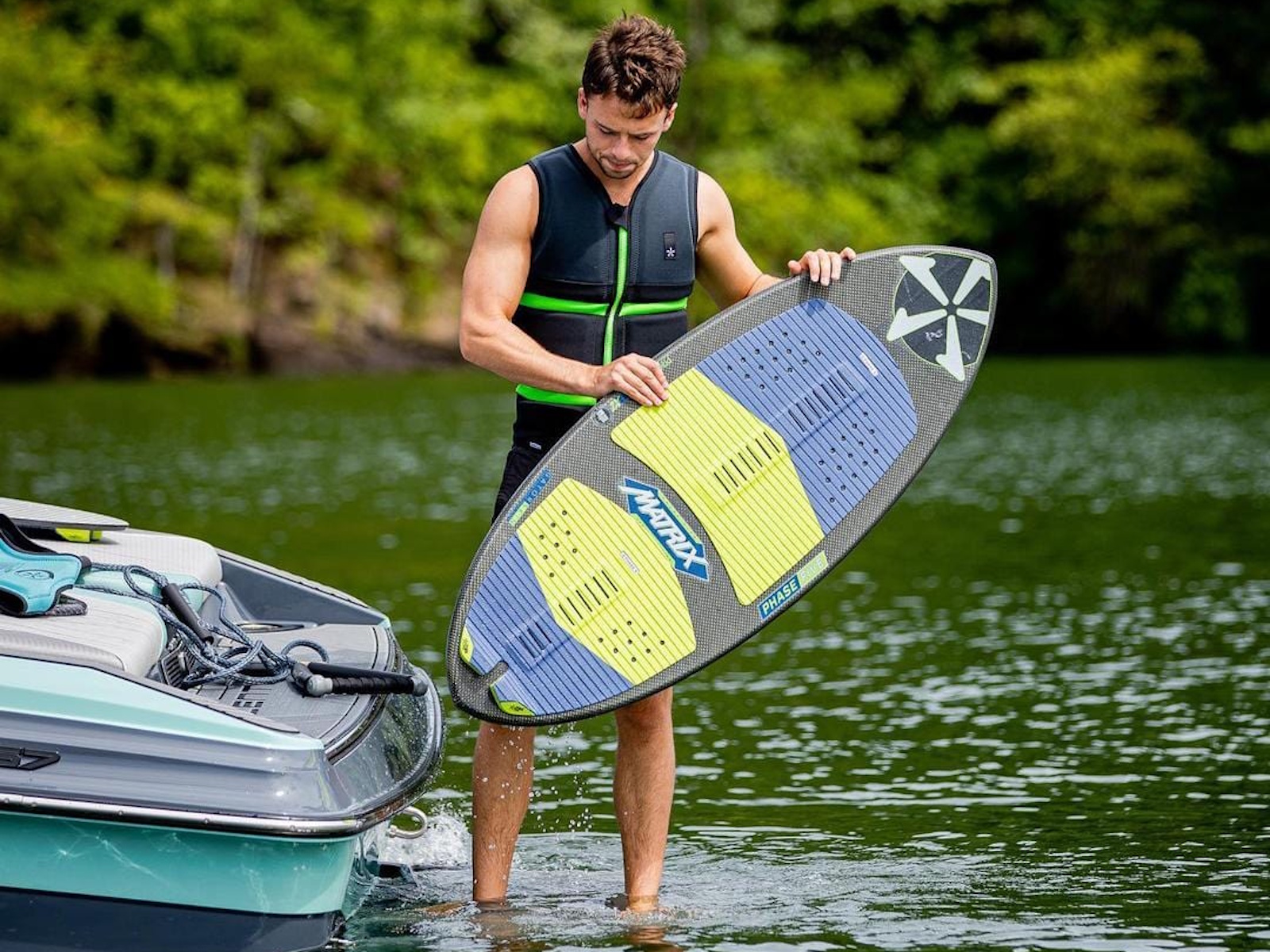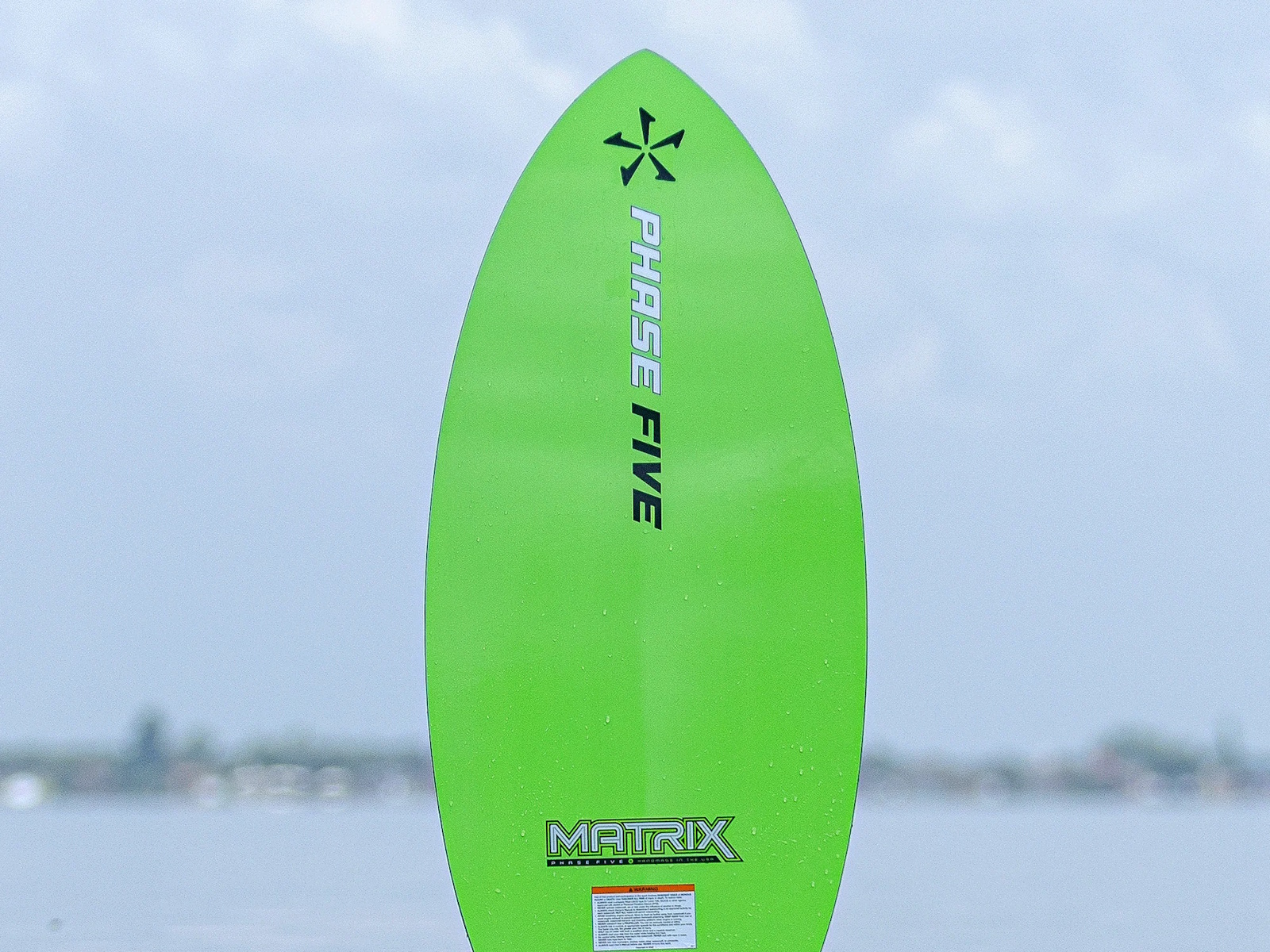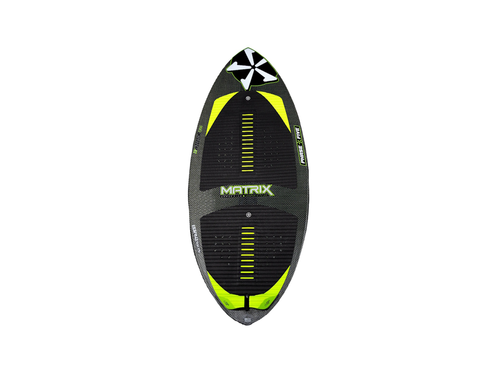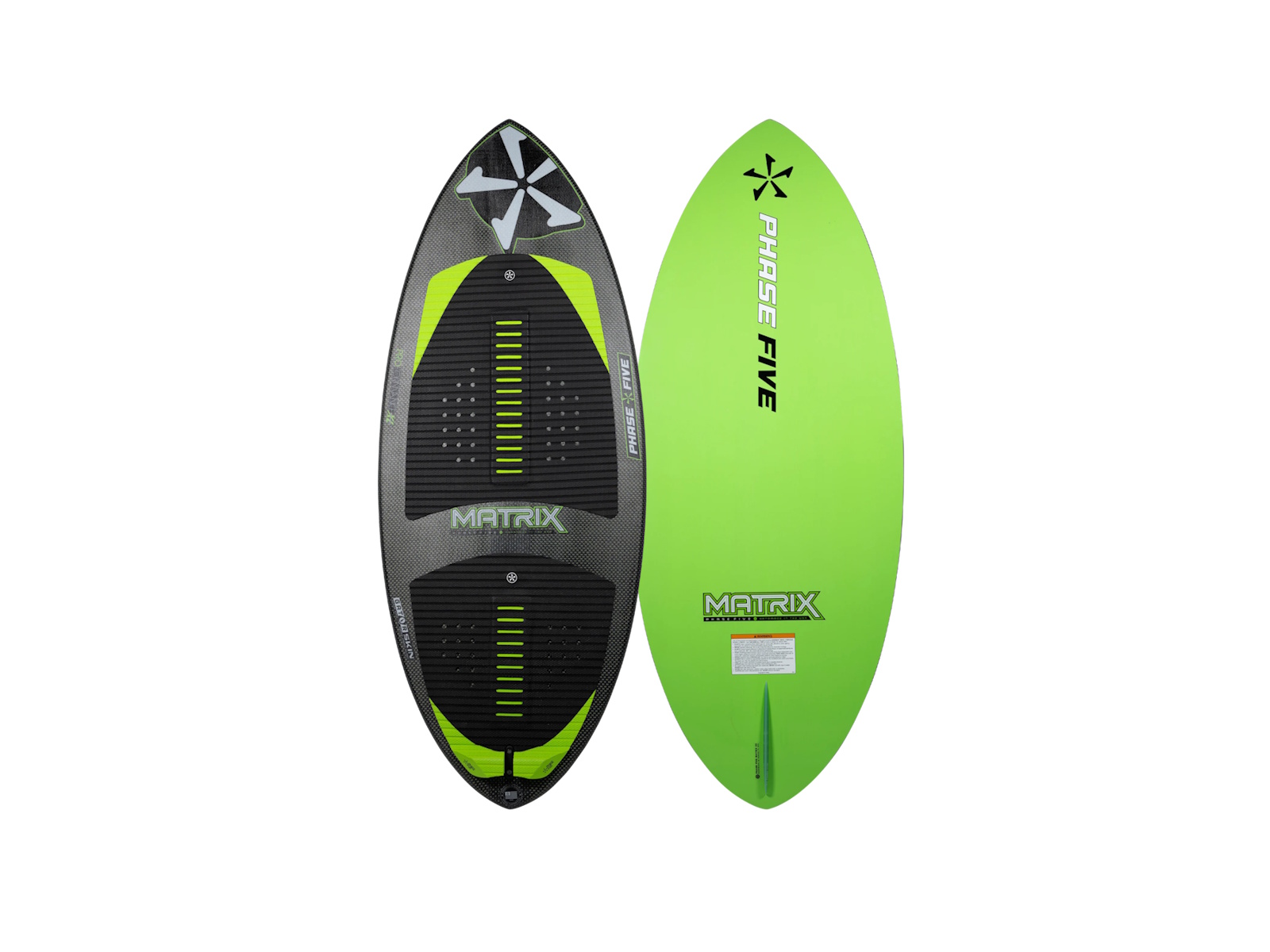 The Phase Five Matrix Wakesurfer is an advanced board delivering unrivaled performance. Adopted by many professional riders on the Phase Five Team, the Matrix is sealed and approved to meet the highest expectations. The Matrix is made with a thinner core and boxy rails for ultimate POP and responsiveness. The symmetrical outline rides incredibly well backwards while the subtle V-Spline bottom contours generate trick demanding speed and sensitivity. The Matrix includes an added carbon stringer for next level pop, and is constructed with Hybrid Carbon™ material to take a beating. The Matrix is built with a single fin setup and loaded with our 1” Skim Fin.