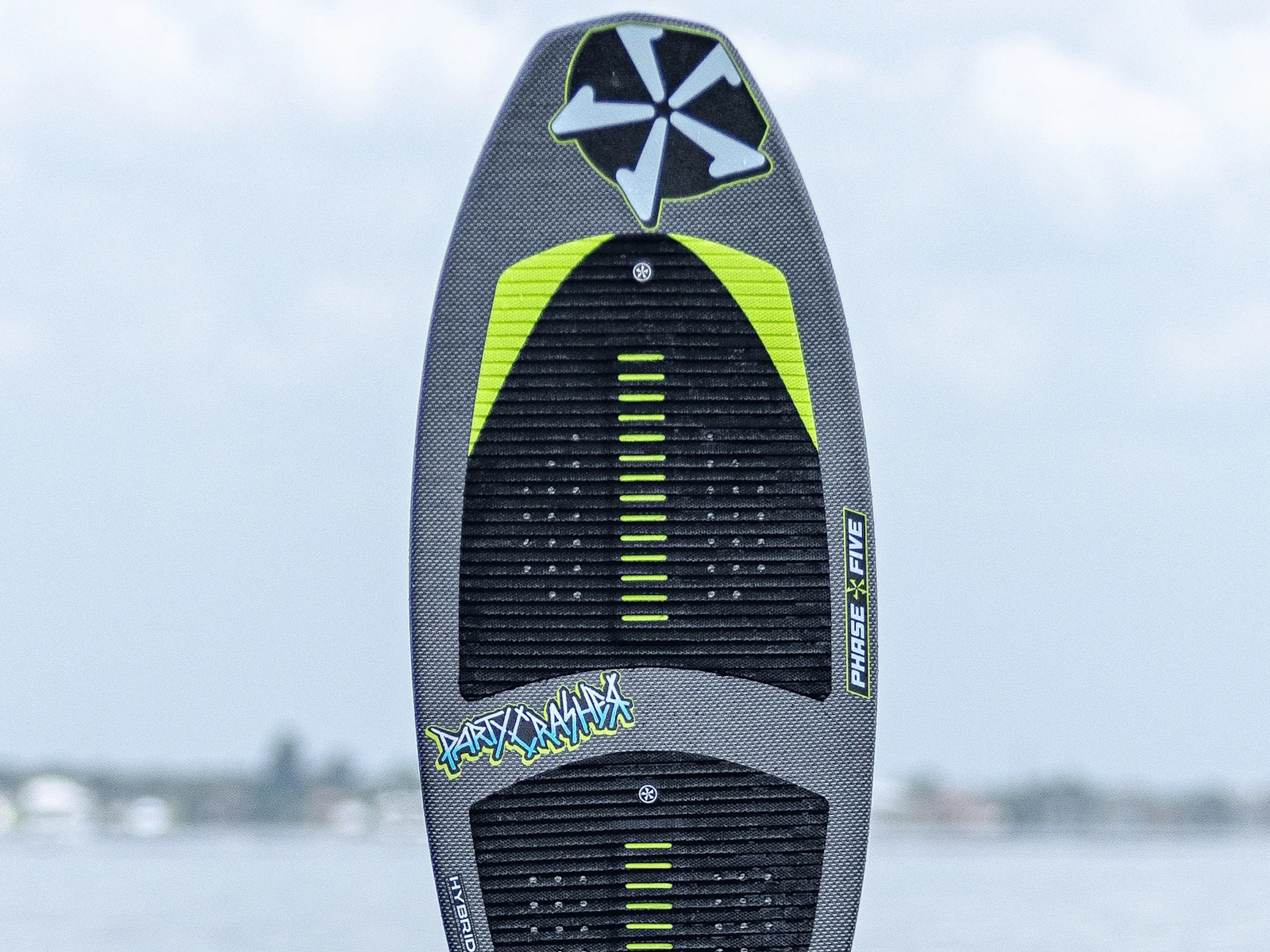 Built for maximum FUN, the P5 Party Crasher is here! It has the workings of longtime P5 board designer, Steve Boomhower, that brought this board to fruition. At first glance, our thoughts were that it could be a replacement for the Hypsta, filling the need of the “all-around” board for anyone in the boat. After riding it, we quickly realized that it was more of a high performance machine. The quickest description that comes to mind is that it feels like a skate deck under your feet. You can ride a much smaller board and still get all the characteristics of your “normal” sized board. Featuring a symmetrical outline that has the same nose and tail shape, this board is fast and responsive. It is made with Hybrid Carbon™ material to take a beating and built with a single fin setup loaded with our 1” Skim Fin.