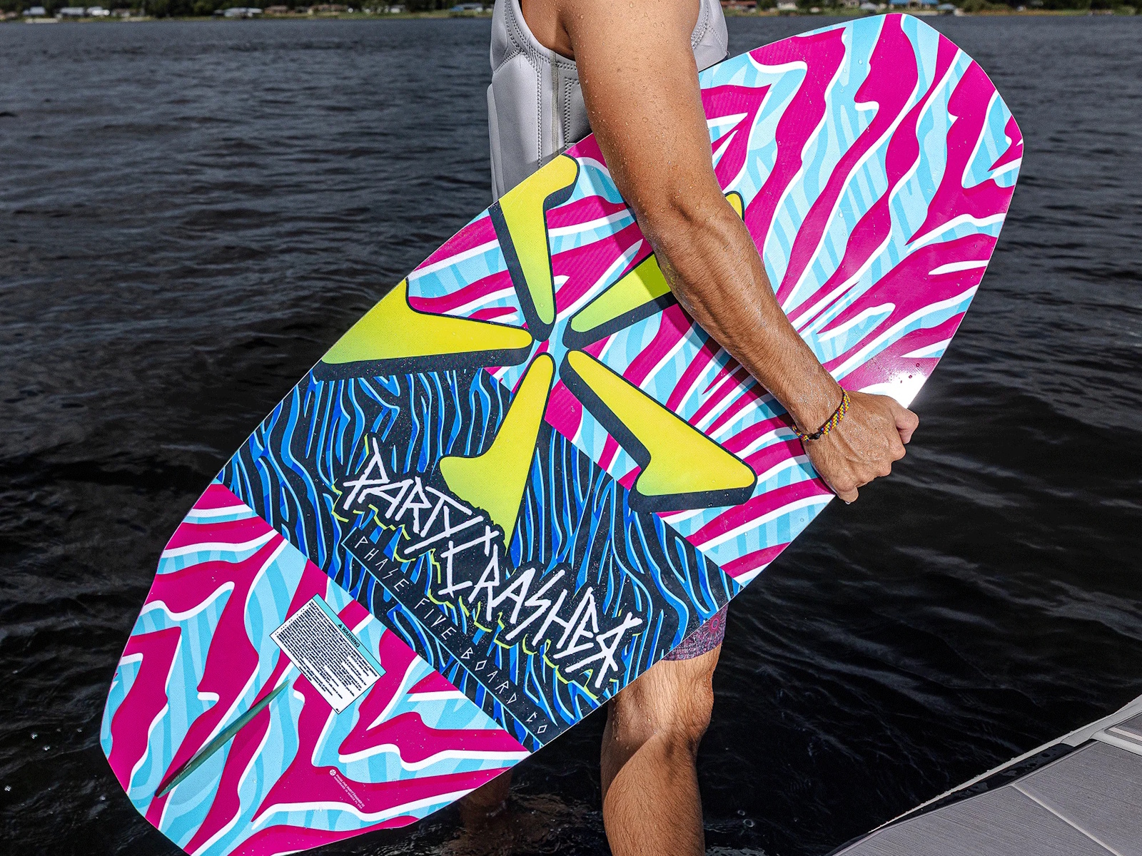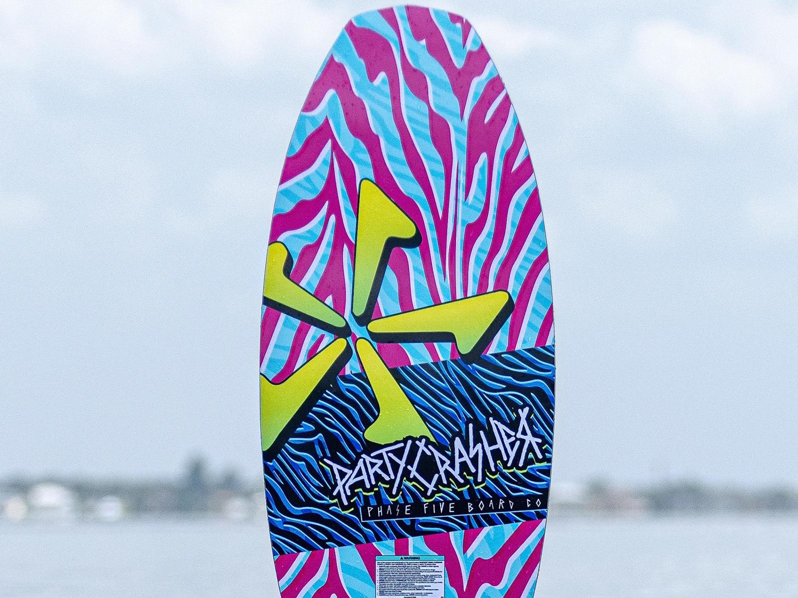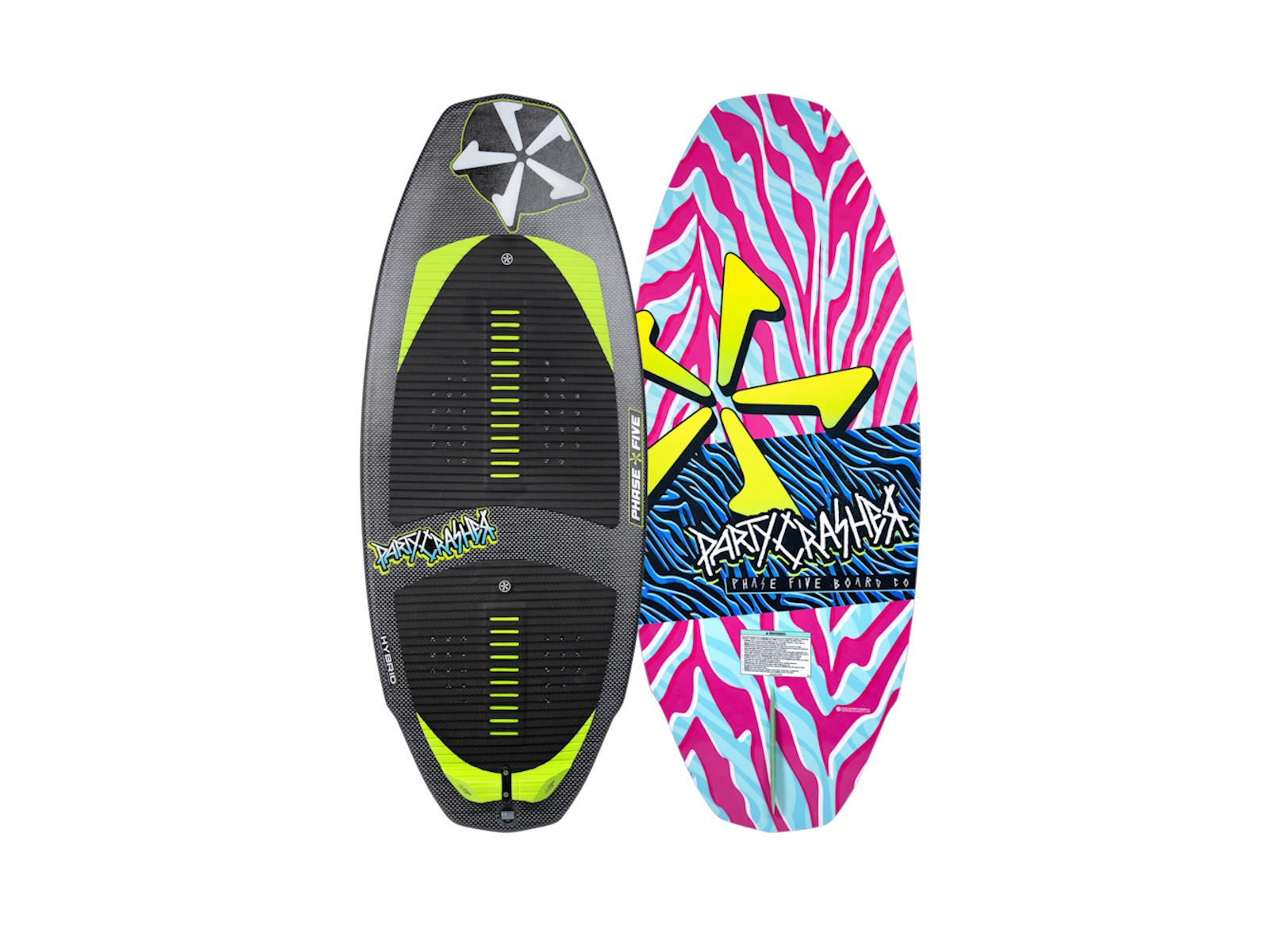 Built for maximum FUN, the P5 Party Crasher is here! It has the workings of longtime P5 board designer, Steve Boomhower, that brought this board to fruition. At first glance, our thoughts were that it could be a replacement for the Hypsta, filling the need of the “all-around” board for anyone in the boat. After riding it, we quickly realized that it was more of a high performance machine. The quickest description that comes to mind is that it feels like a skate deck under your feet. You can ride a much smaller board and still get all the characteristics of your “normal” sized board. Featuring a symmetrical outline that has the same nose and tail shape, this board is fast and responsive. It is made with Hybrid Carbon™ material to take a beating and built with a single fin setup loaded with our 1” Skim Fin.