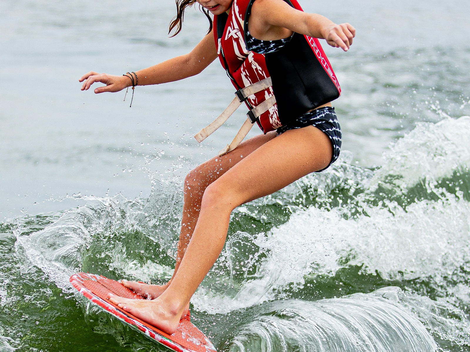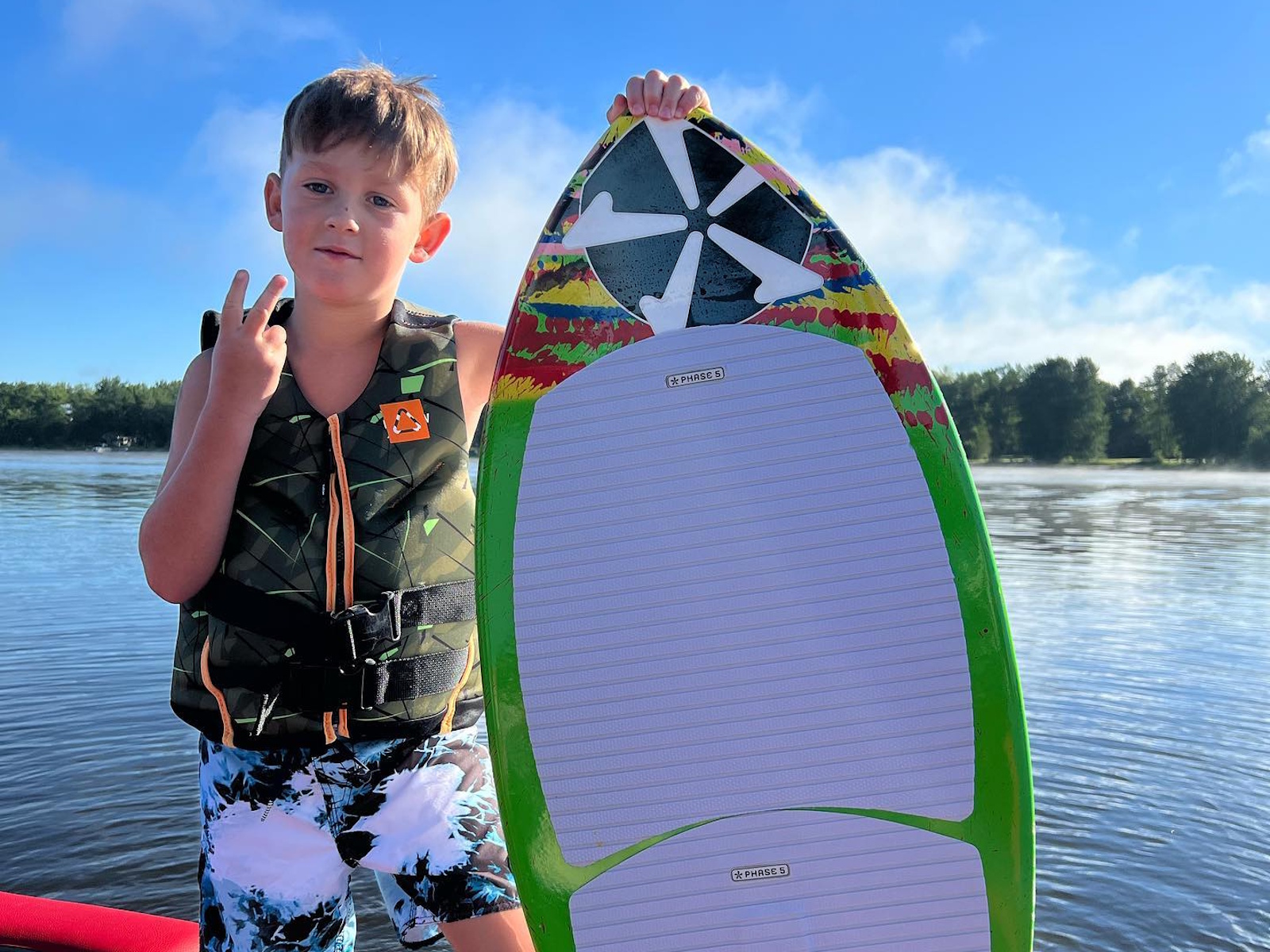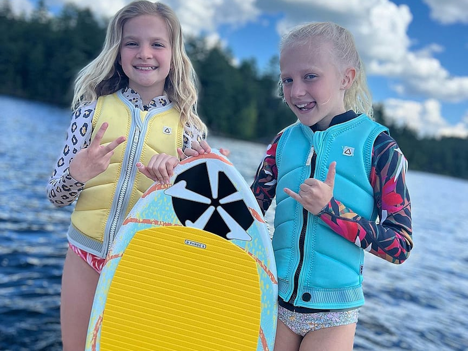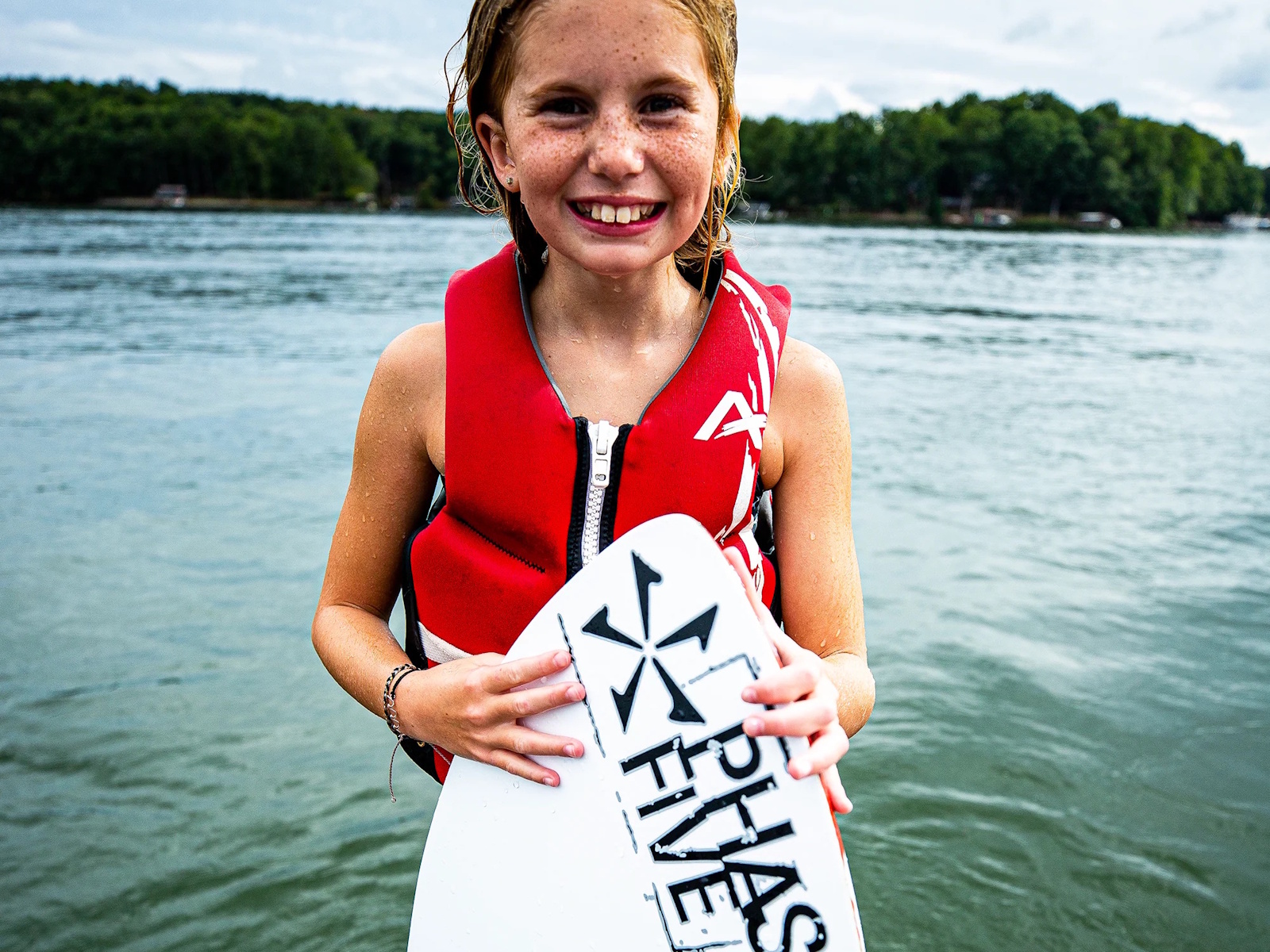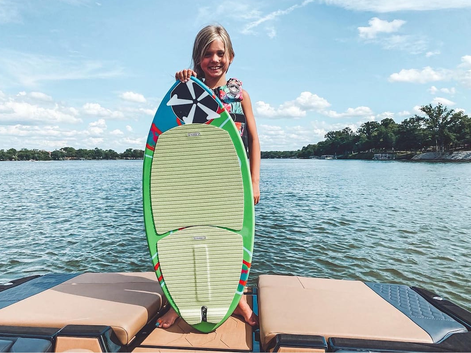 The kids Phase Five Shrimp Wakesurfer is designed for the young guns looking to step their game up on a proven performance shape. The Shrimp is very maneuverable and easy to control for kids who are learning how to drop the rope for the first time. The Shrimp has a thin ½” skim style core that is easy to sink under water, making it ideal for beginners who want to learn quickly. Built with a single fin setup and loaded with our 2” Skim Fin for great control, the Shrimp will help kids learn the wakesurf basics while advancing their skills until they have outgrown it.