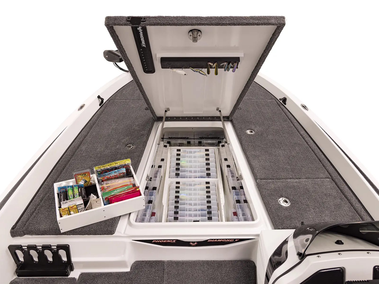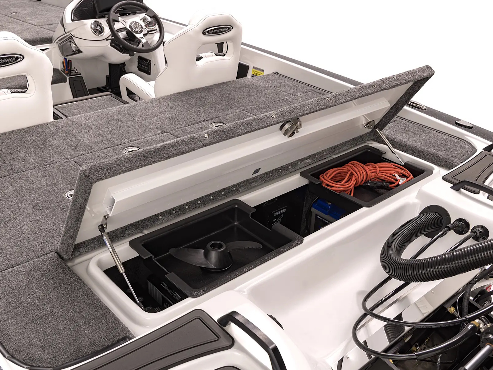 The 21 XE is a cumulation of design and art. We have combined the ever-popular PHX hull with the Elite style bow, to create the finest fishing platform available. This model now brings all new features such as the E-style console with quick access panels, ProForm fiberglass seat base with EdgeForce performance seats, quick access cockpit drawer and black billet grab handles while still offering full fiberglass rod boxes and backlit analog push button switches to raise the bar for our anglers. The 21 XE also comes standard with an array of features to help you stay at the top of your fishing game such as a Phoenix E2 Electronics Wiring System and a fully padded front deck and front deck lids. All of these combine to help make you the most competitive angler on the water.