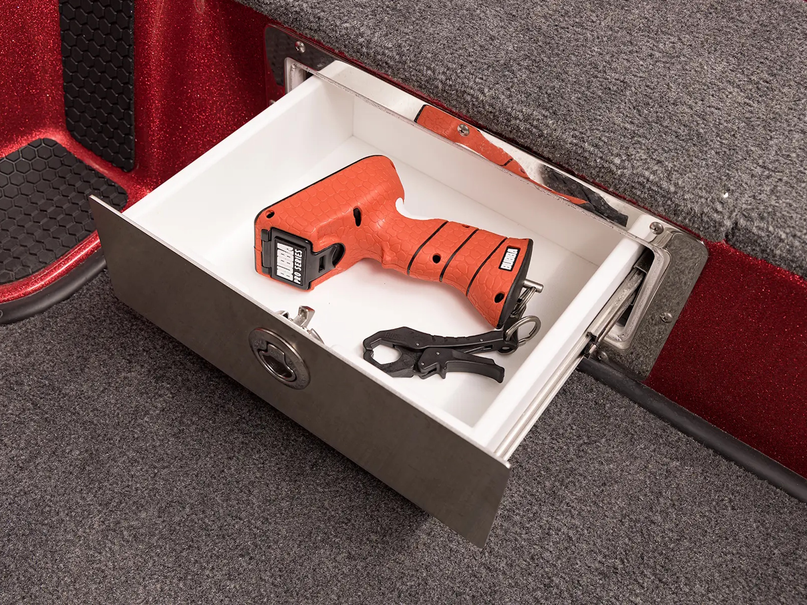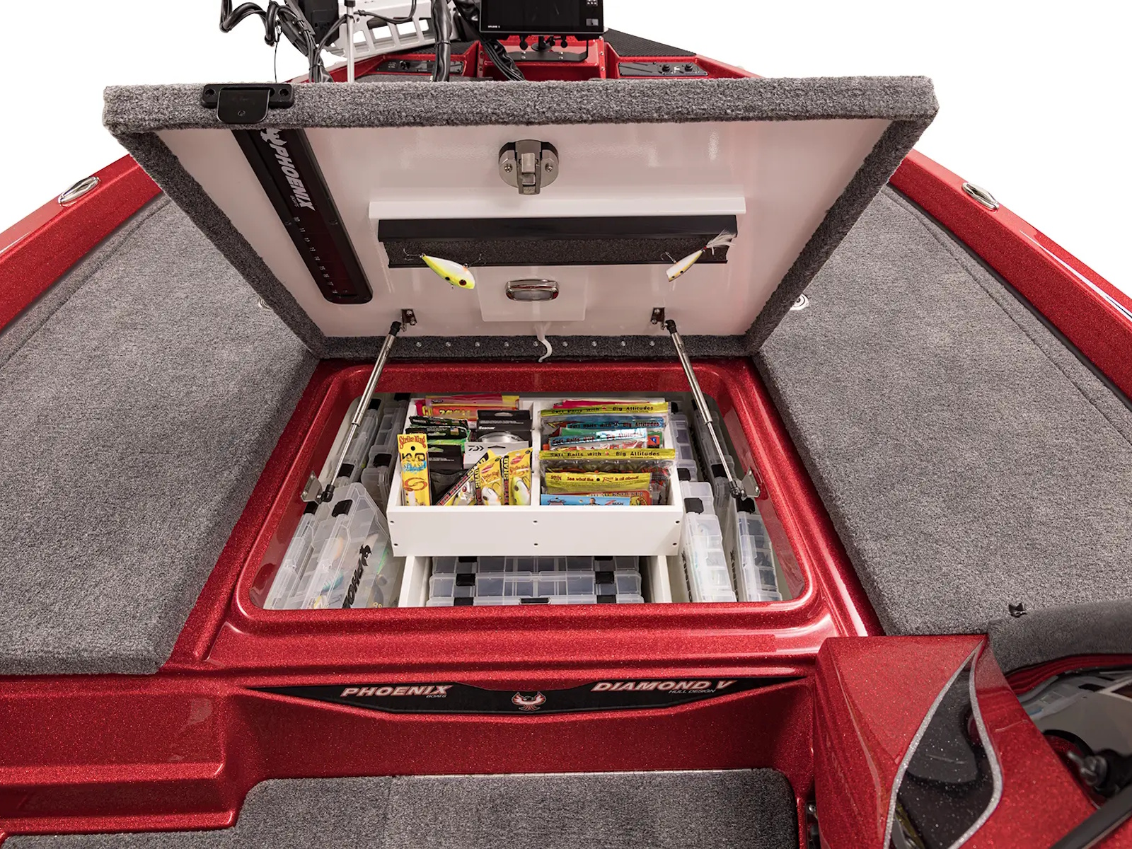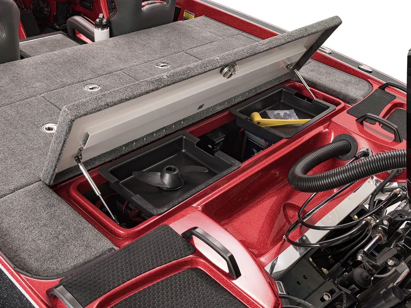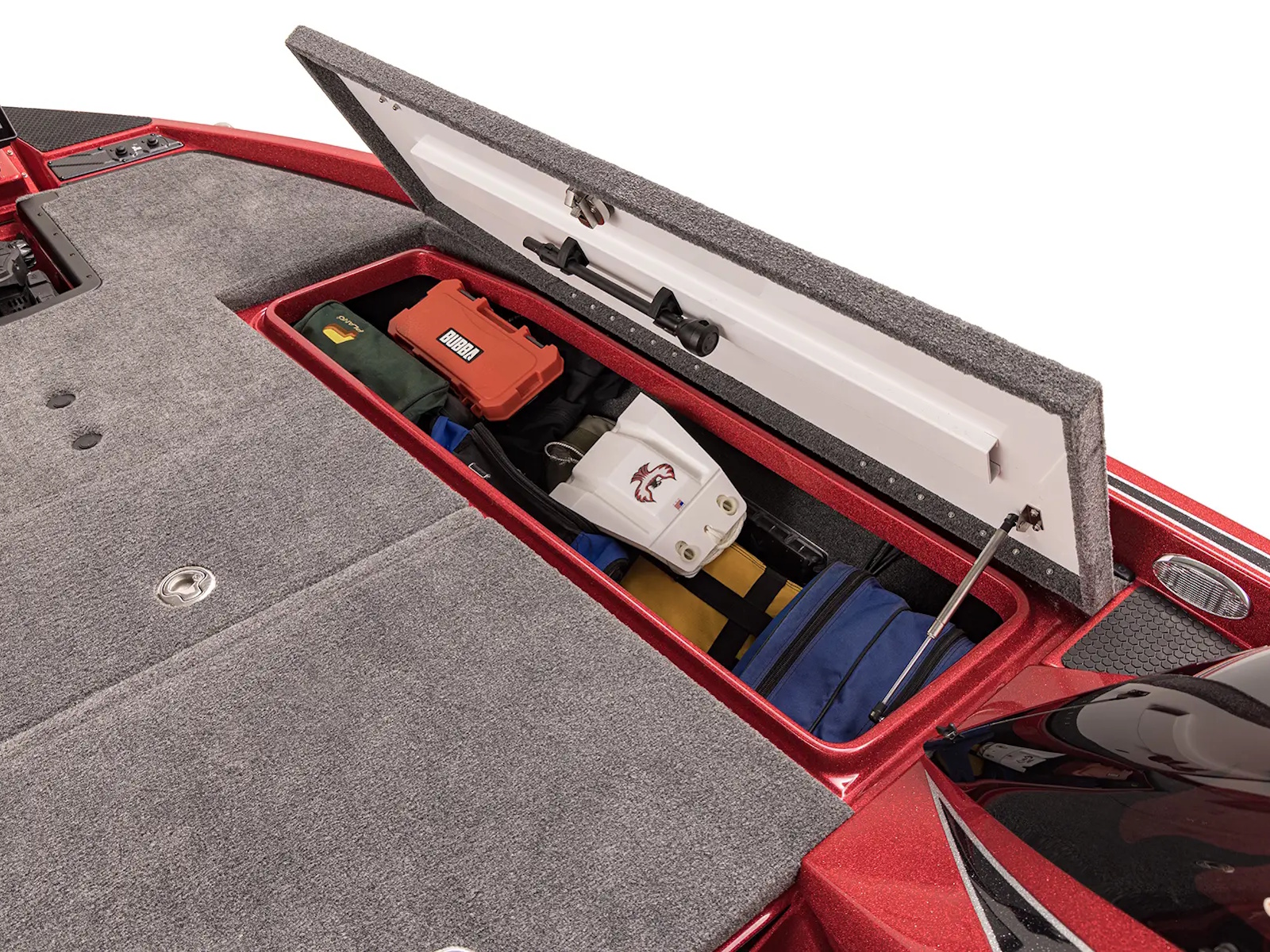 The 920 ELITE X2 brings all the built-in advantages of the 920 ELITE X including, unmatched speed, responsive handling, and premium comfort and adds even more tournament-ready functionality. At the heart of the upgrade is our proven center two-lid front deck layout, designed to enhance gear access and maximize storage organization. This configuration keeps your tackle, tools, and essentials right where you need them, fast, efficient, and always within reach. Whether you’re running hard across open water or picking apart shallow structure, the 920 ELITE X2 gives you the confidence, control, and competitive edge to stay one step ahead.