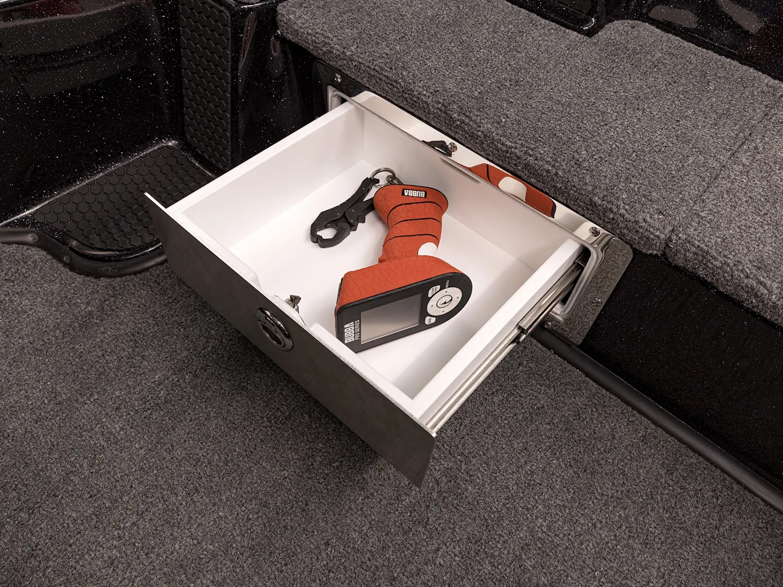 The 920 ELITE X comes from the same relentless pursuit of excellence as its big brother, the 921 ELITE X. Built with a wide front deck and an intuitive layout, it delivers the space, storage, and organization needed to stay dialed in on tournament day. The advanced bow design supports large or stacked electronics, while the ProForm Fiberglass Seat Base and EdgeForce Performance Seating ensure lasting comfort through long runs and long days. From its sharp, responsive handling to its angler-focused features, the 920 ELITE X is made to elevate your performance and keep you one cast ahead of the competition.